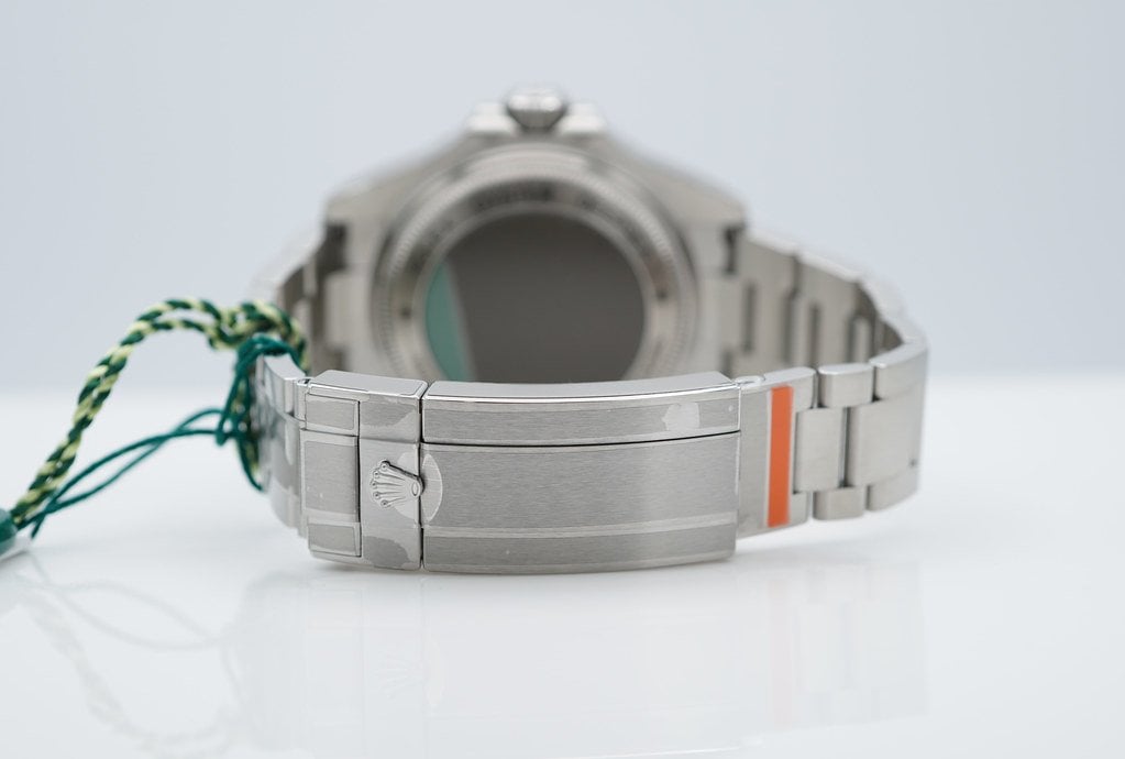 Complete Packages/Set (double boxes with sleeve, bezel protector, Rolex Green Tag, White Serial Numbers Tag), & Complete Manuals/Papers with Warranty Card has Rolex USA AD’s Name Stamped, Named & Dated 06.2018.