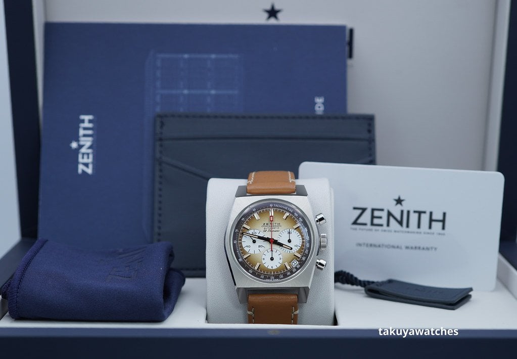 Complete Packages/Set (Triple Boxes, hangtag, polishing cloth), & Complete Manual/Papers with Zenith Warranty Card has Zenith USA AD’s Name Printed & Dated 12.2023. The Watch is Under Factory Warranty.