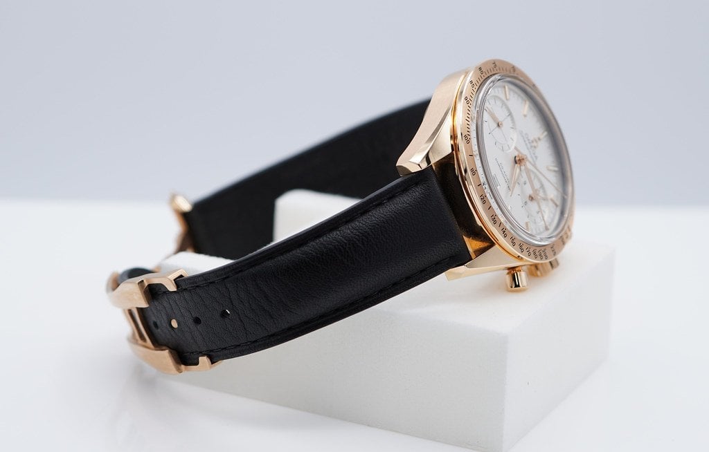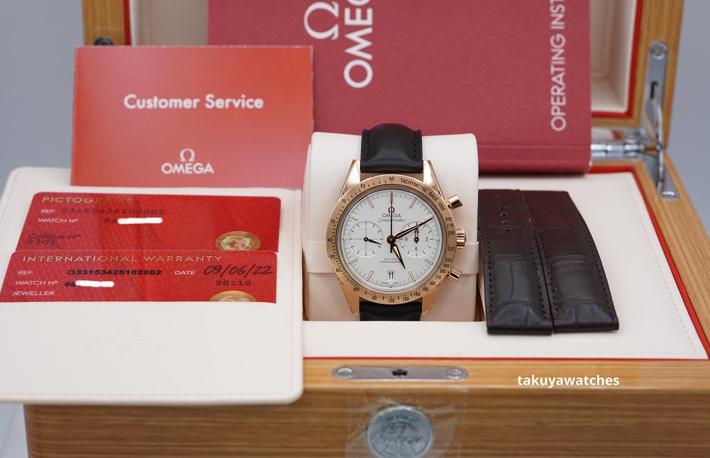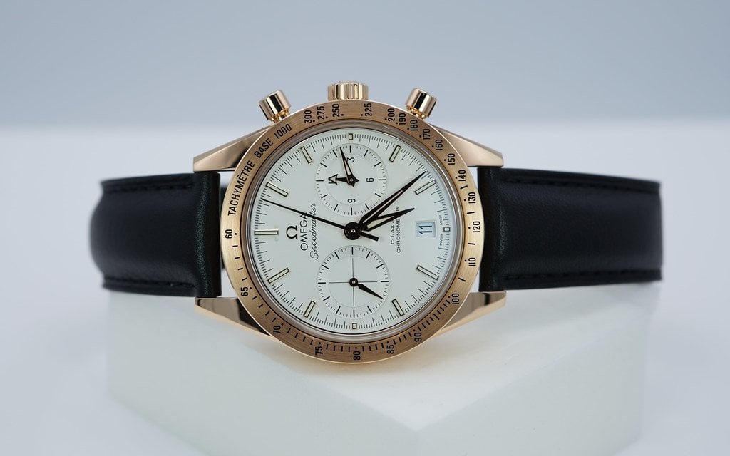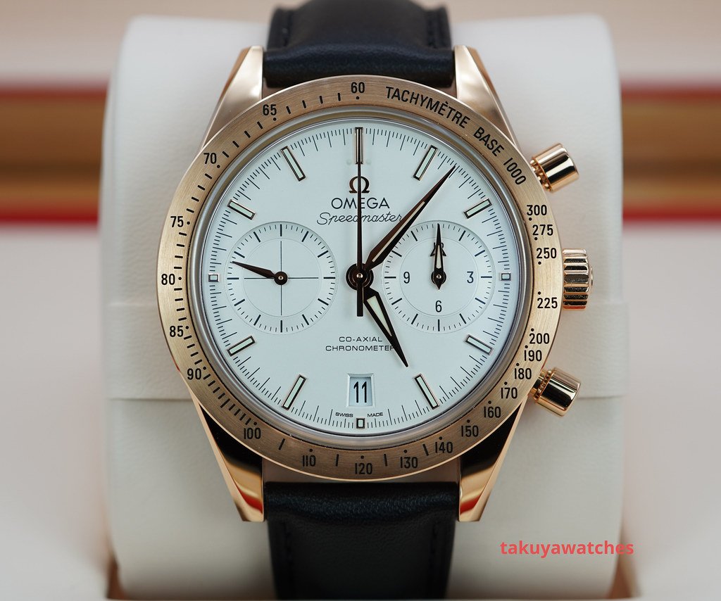 A Mint, Unpolished Condition & Very Beautiful 2022 40.5mm Omega Speedmaster ’57 Co‑Axial Master Chronometer Chronograph 18K Rose Gold with Silvery White Dial. Omega Co-Axial Master Chronometer Calibre 9301 with 60 hours Power Reserve. Its on Brown Leather Strap with Rose Gold deployant clasp. Purchased from Omega USA Authorized Dealer in 09.2022. Watch Running Perfect with Non Issues. Full Set with An Extra Omega Black Leather Strap. Under 5 Years Factory Warranty.