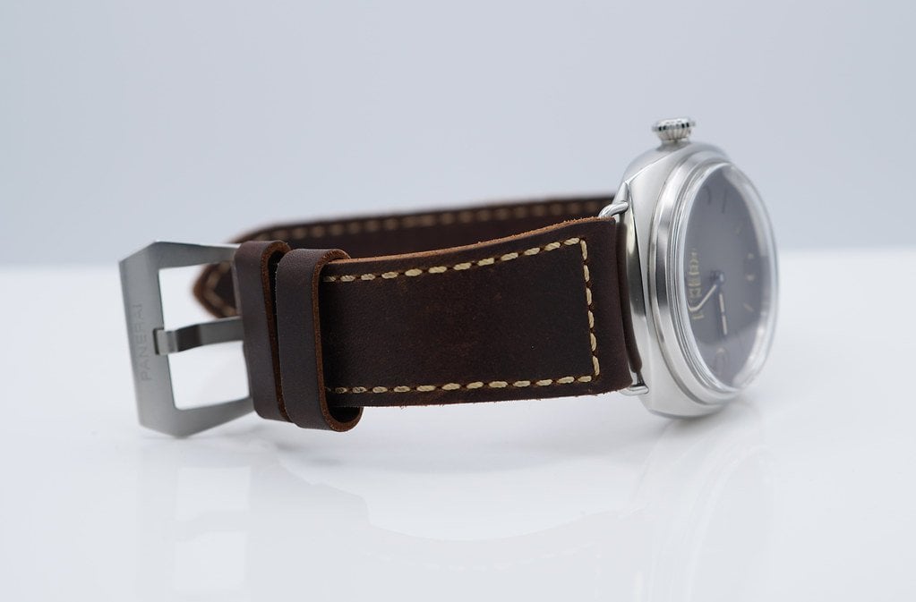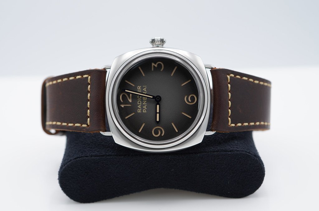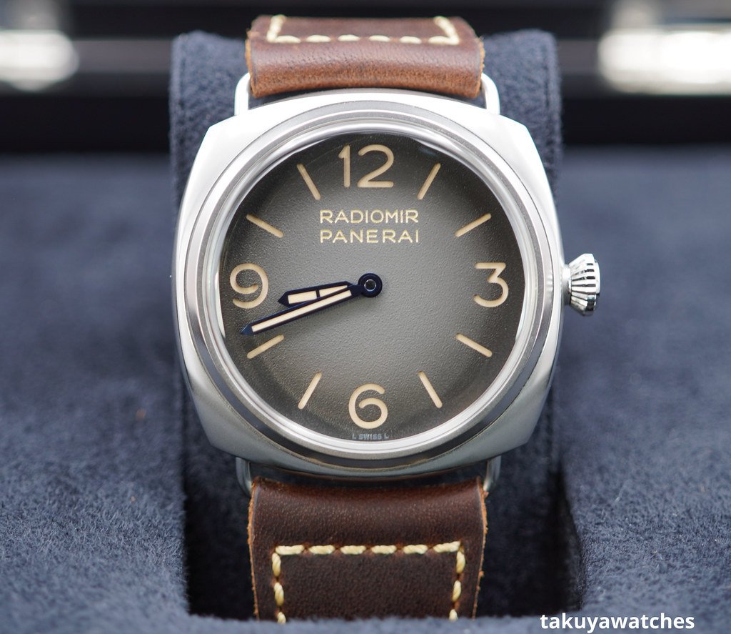 An Excellent, Unpolished Condition & Very Beautiful 2022 45mm Panerai PAM01334 Radiomir Tre Giorni or Radiomir Origine Patina Steel Case with Grey Black Dial. Manual-winding P.6000 Calibre with 3 Days Power Reserve. Its on Calf Brown Leather Strap with Tang Buckle. Purchased from Officine Panerai USA Boutique in 10.2022. Watch running perfect with Non Issues. Full Set. Under 8 Years Factory Warranty.
