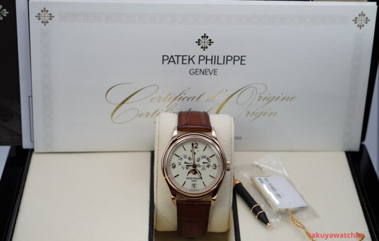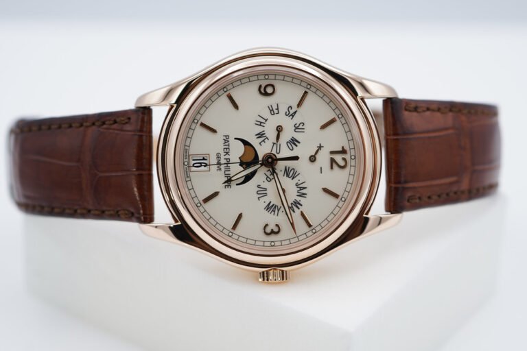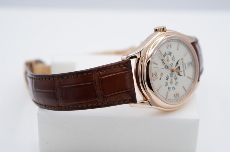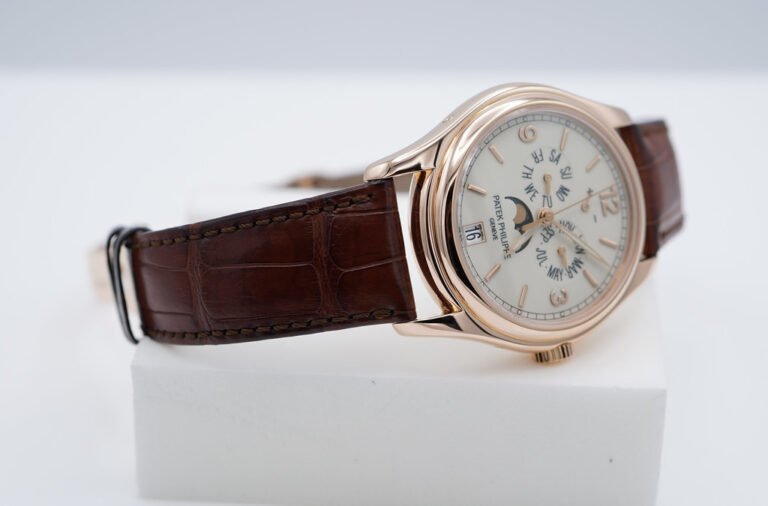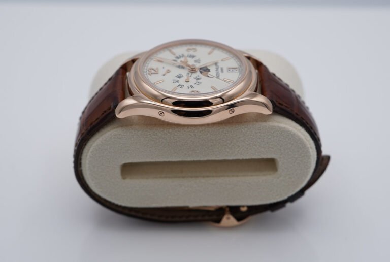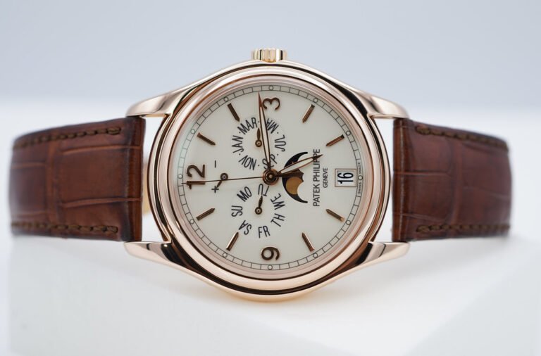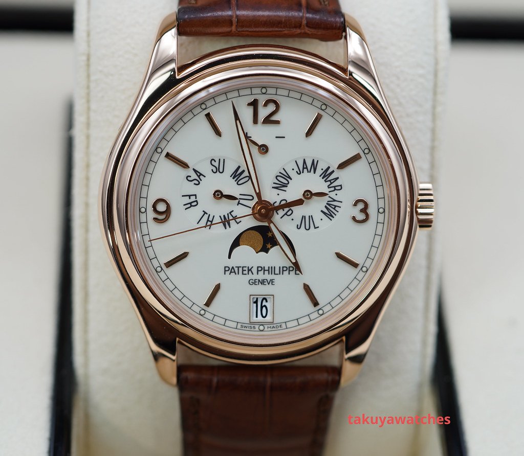 An Excellent Condition & Very Beautiful 2021 39mm Patek Philippe Complications 5146 Annual Calendar, MoonPhases. 18K Rose Gold Case with Cream Lacquered Dial. Its on Patek Philippe Dark Brown Alligator Leather Strap with 18K Rose Gold Patek Philippe Deployant Clasp. Purchased from Patek Philippe USA Authorized Dealer in 05.2021. Watch running perfect with Non Issues. Complete Set.
