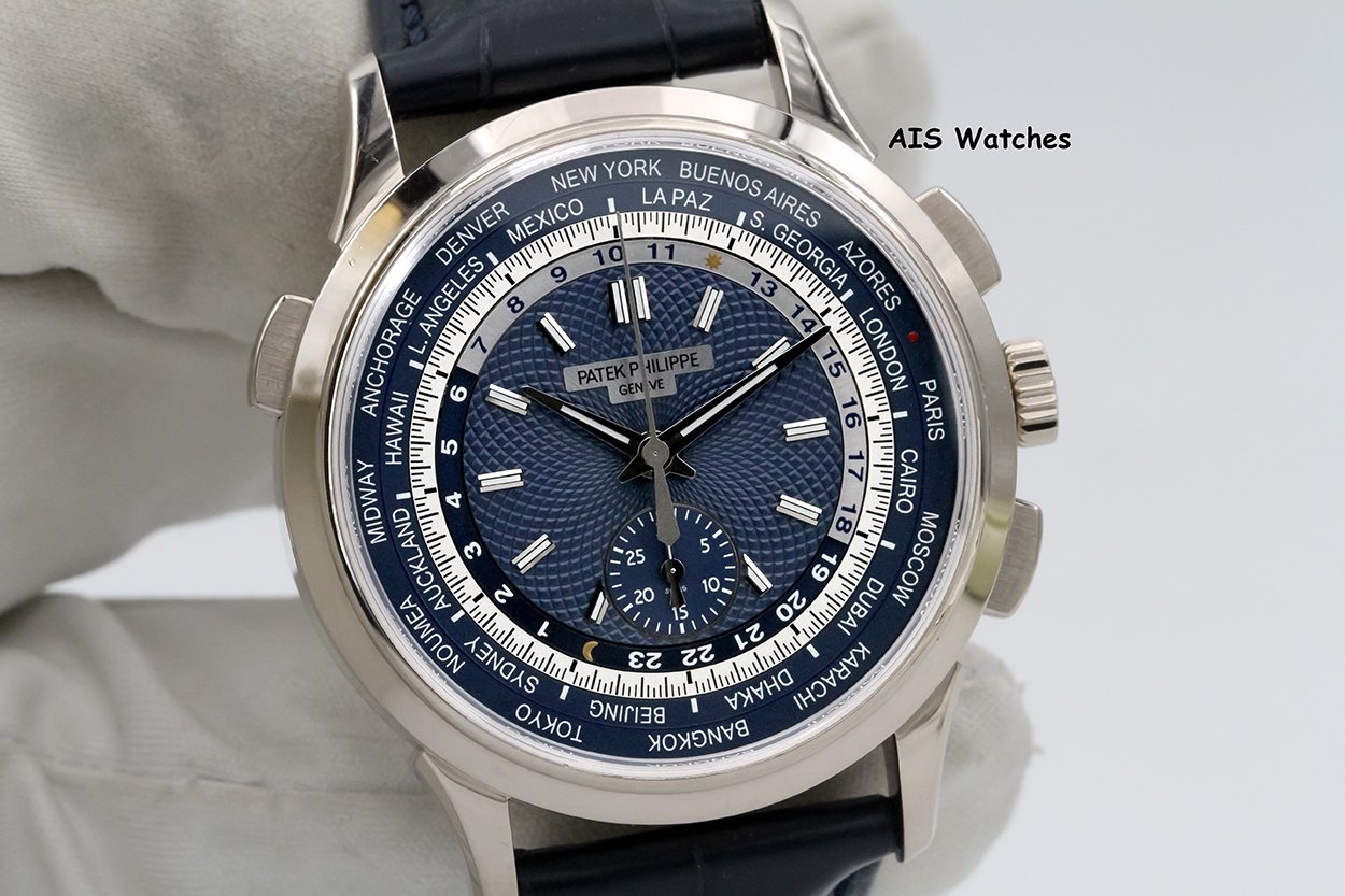 FSOT: Patek Philippe 5930G World Time Chronograph White Gold Blue Dial Box & Papers