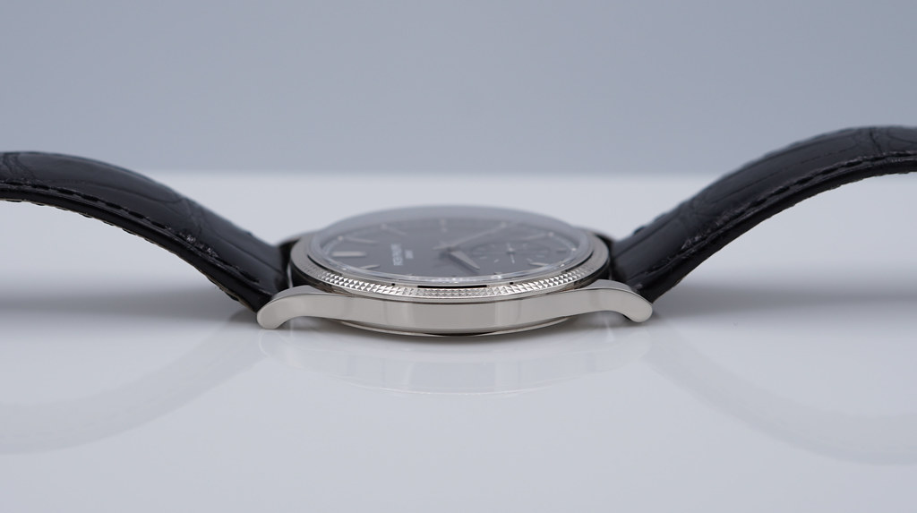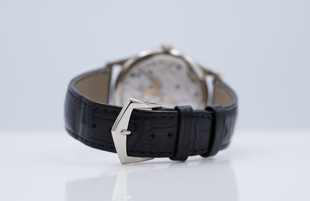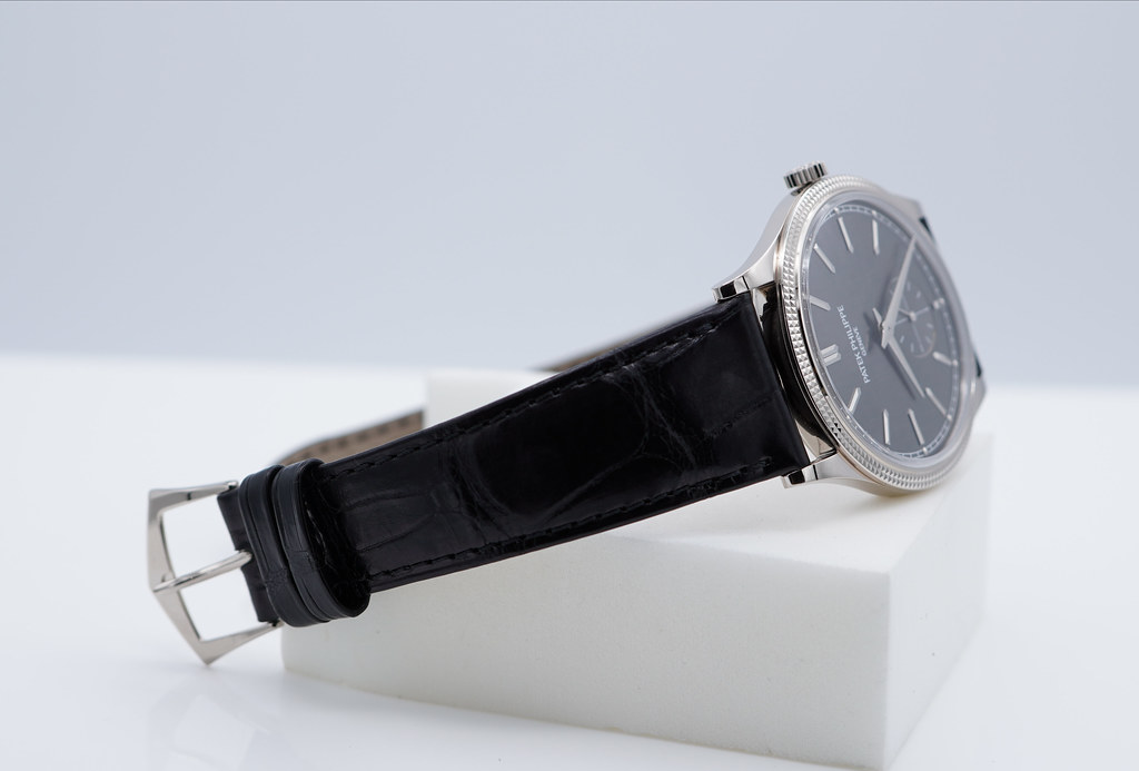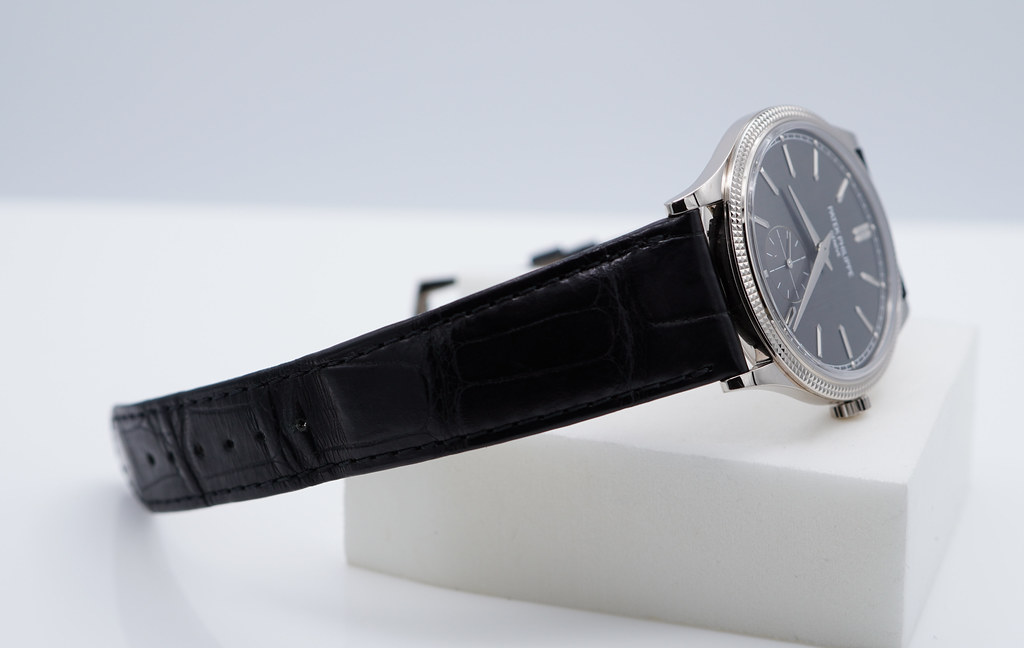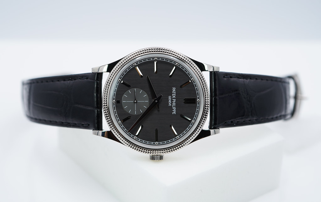 An Excellent, Unpolished Condition & Very Beautiful 2024 39mm Patek Philippe 6119 Calatrava White Gold Manual Winding Movement with Charcoal Gray Vertical Satin Finish Dial. Its on Black Leather Strap with Patek Tang Buckle. Purchased from Patek Philippe USA Authorized Dealer in 03.2024.