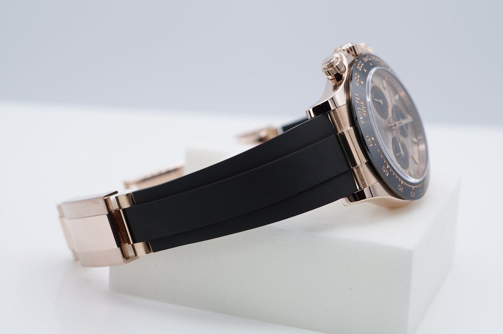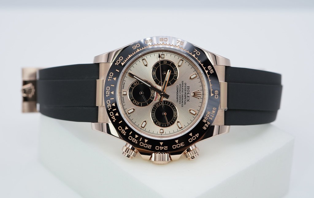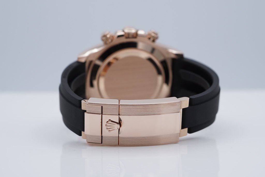 An Excellent Condition & Very Beautiful 40mm Rolex Daytona 116515LN 18K Everose Gold with Sundust and Black sub dials. Its on Oysterflex Strap with Everose Gold Clasp. Purchased from Rolex Authorized Dealer in 08.2021. Watch Running Perfect with Non Issues. Full Set & Under 5 Years Factory Warranty.