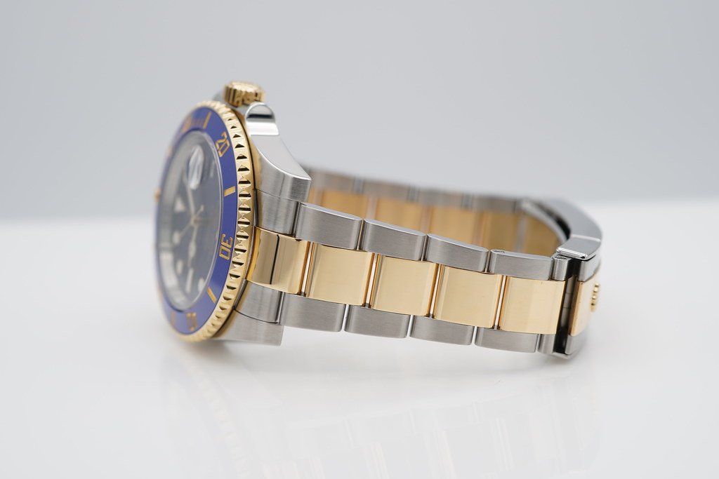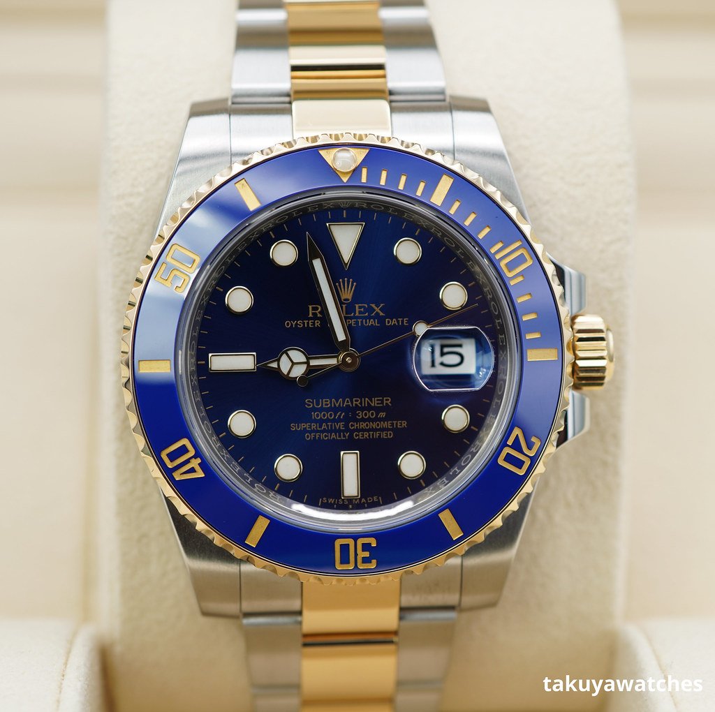 An Excellent Condition & Very Beautiful Discontinued 40mm Rolex 116613lb Submariner Bluesy 18K Yellow Gold & Stainless Steel, Ceramic Blue Bezel with Sunburst Blue Dial. Purchased from Rolex USA Authorized Dealer in 03.2016. Watch Running Perfect with Non Issues. Full Links & Full Set.