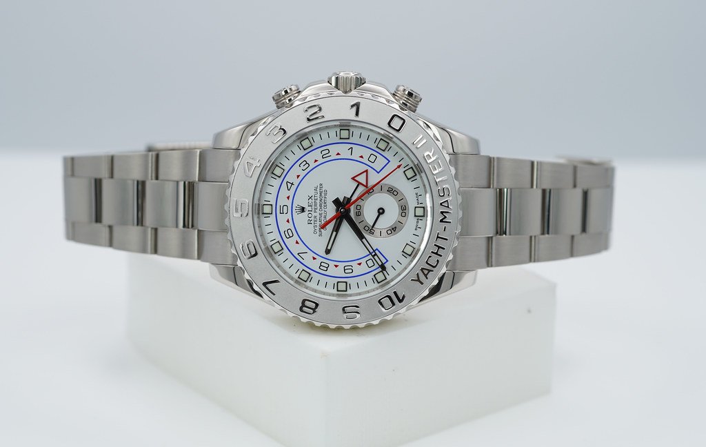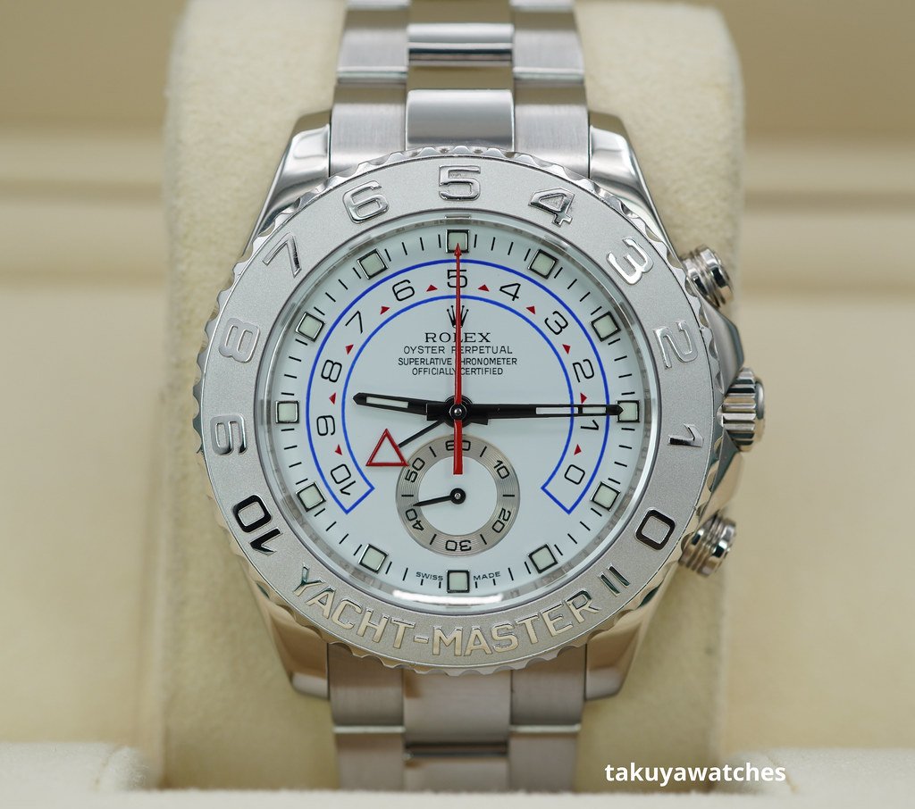 An Excellent Condition & Very Beautiful Rolex 116689 Yacht-Master 2 Regatta 18K White Gold with Platinum Bezel. White Dial & Blue Hands. M Serial 2007. The Watch received Full Services from Rolex Service Center in 06.2023. The Watch Running Perfect with Non Issues. Full Links. Box & Service Card.