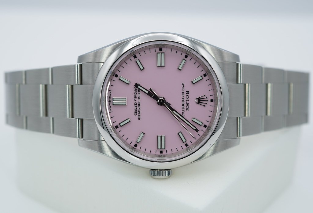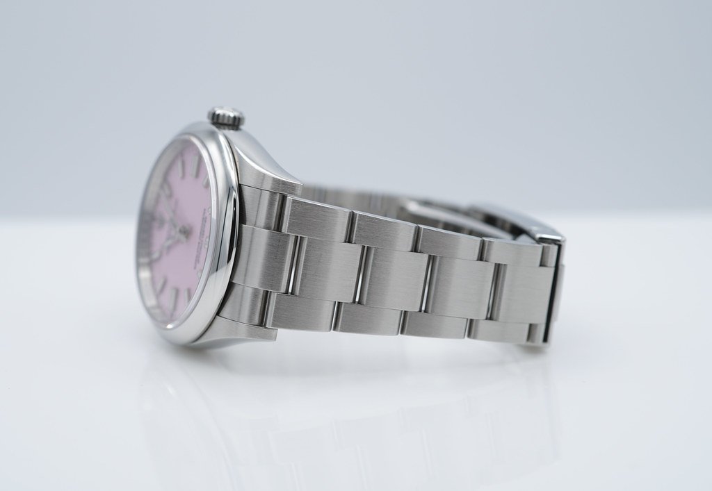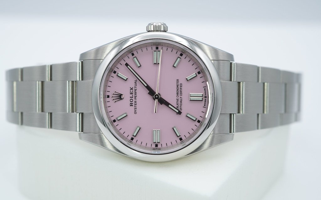 An Excellent Condition & Very Beautiful 2023 36mm Rolex 126000 Oyster Perpetual Stainless Steel with Beautiful Candy Pink or Barbie Pink Dial. Purchased from Rolex Authorized Dealer in 04.2023. Watch running perfect with Non Issues. Full Links. Full Set & Under 5 Years Factory Warranty.
