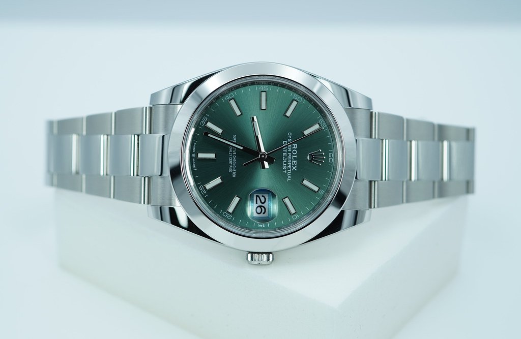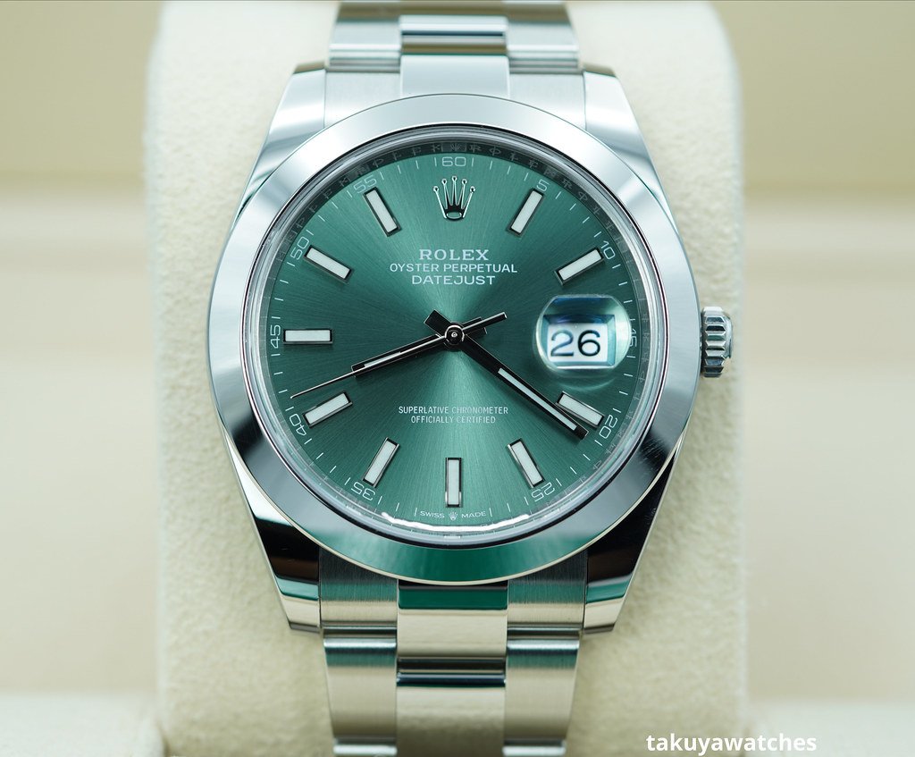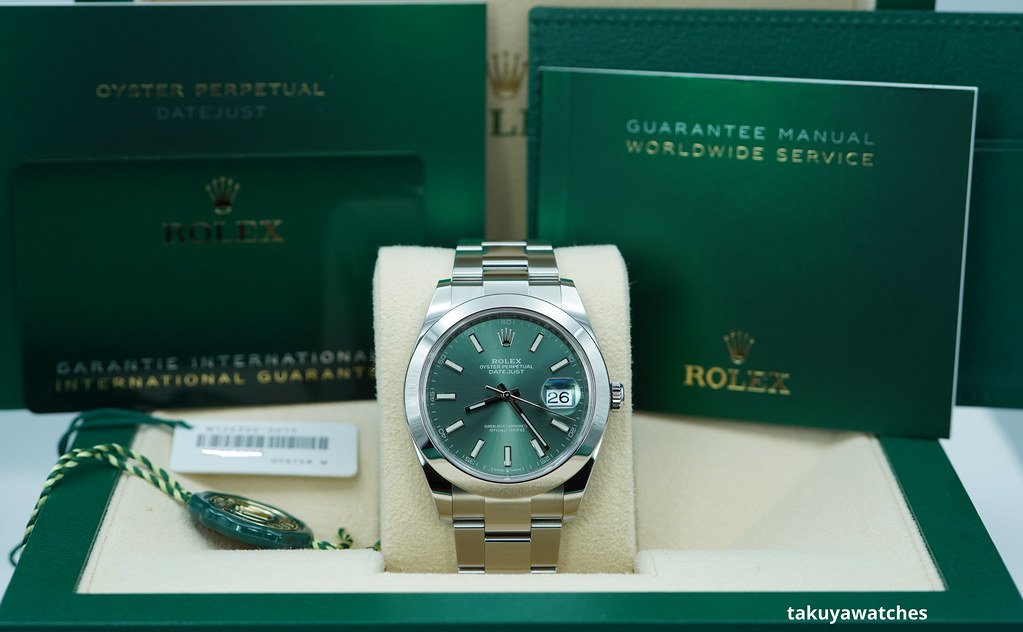 ·Rolex 126300 DATEJUST 41 MINT GREEN DIAL OYSTER BAND 2023 WARRANTY FULL SET