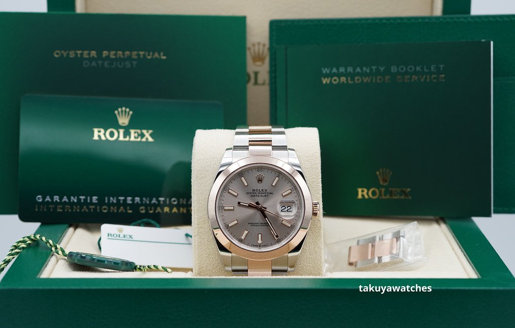 ·Rolex 126301 DATEJUST 41 ROSE GOLD STEEL SUNDUST DIAL 2023 WARRANTY FULL SET