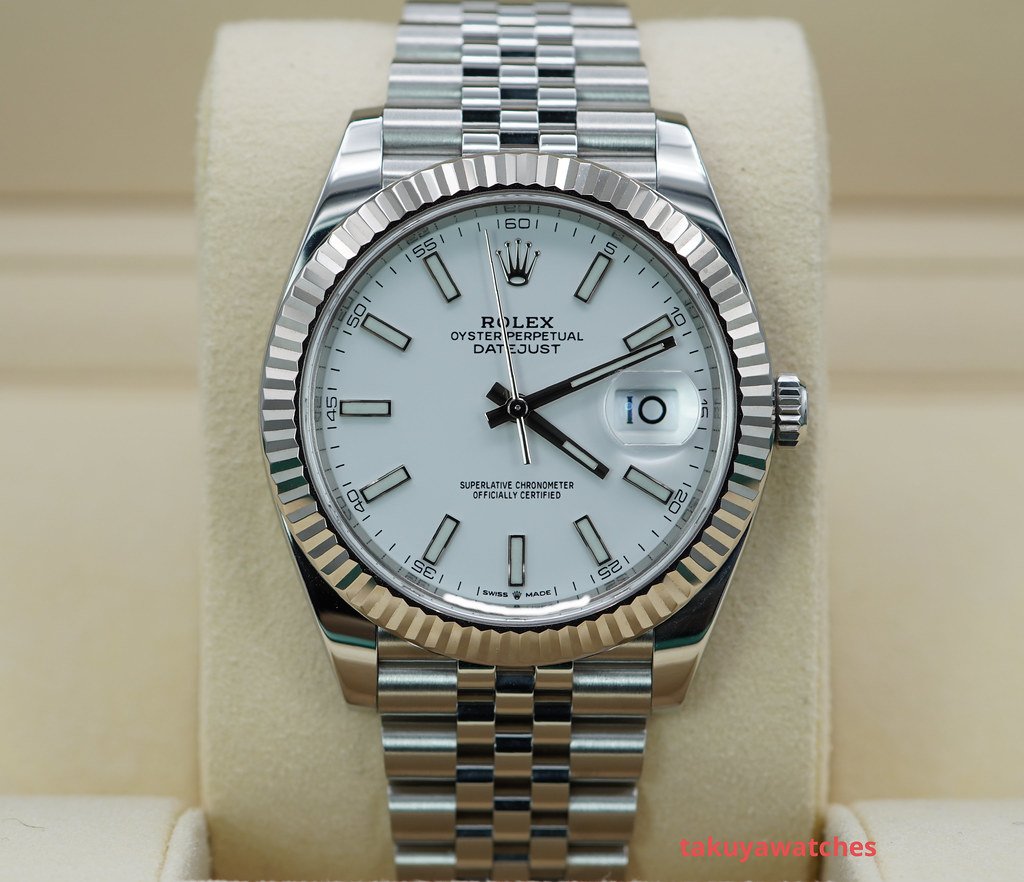 ·Rolex 126334 DATEJUST 41 FLUTED BEZEL WHITE STICK DIAL JUBILEE BAND FULL SET