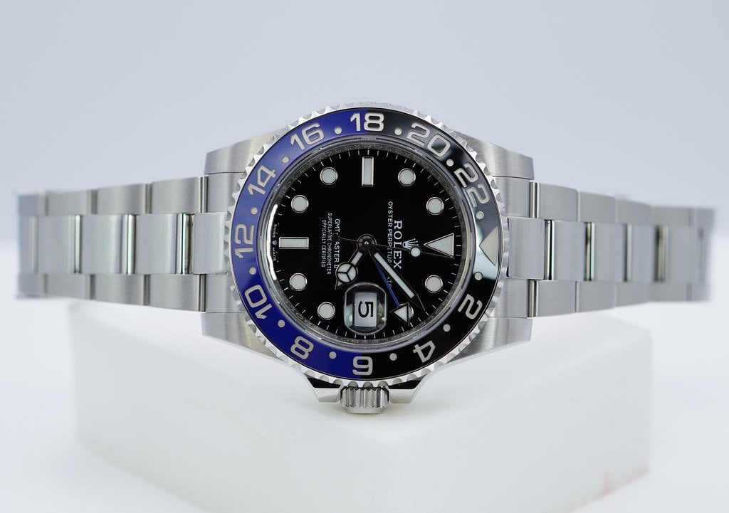 An Excellent Condition & Very Beautiful 2023 40mm Rolex Batman 126710 Blnr Gmt Master 2 Stainless Steel with Black & Blue Ceramic Bezel. Its on Oyster Bracelet. Purchased from Rolex Authorized Dealer in 02.2023. Watch Running Perfect with Non Issues. Full Links. Full Set & Under 5 Years Factory Warranty.