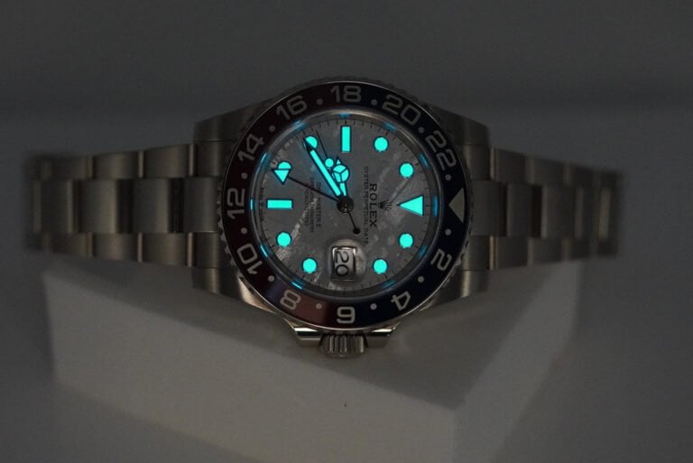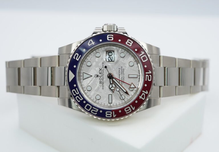 A Mint, Unpolished Condition & Very Beautiful 2024 40mm Rolex 126719 Blro Gmt Master 2 18K White Gold with Pepsi Red Blue Ceramic Bezel and Beautiful Meteorite Dial. Purchased from Rolex Authorized Dealer in 01.2024. Watch Running Perfect with Non Issues. Full Links. Full Set & Under 5 Years Factory Warranty.