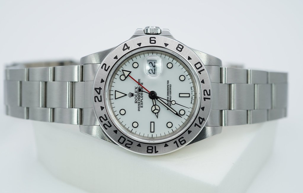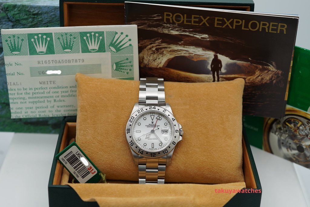 ·Rolex 16570 EXPLORER II 40MM POLAR CREAM TRITIUM DIAL LUG HOLES BOXES PAPERS