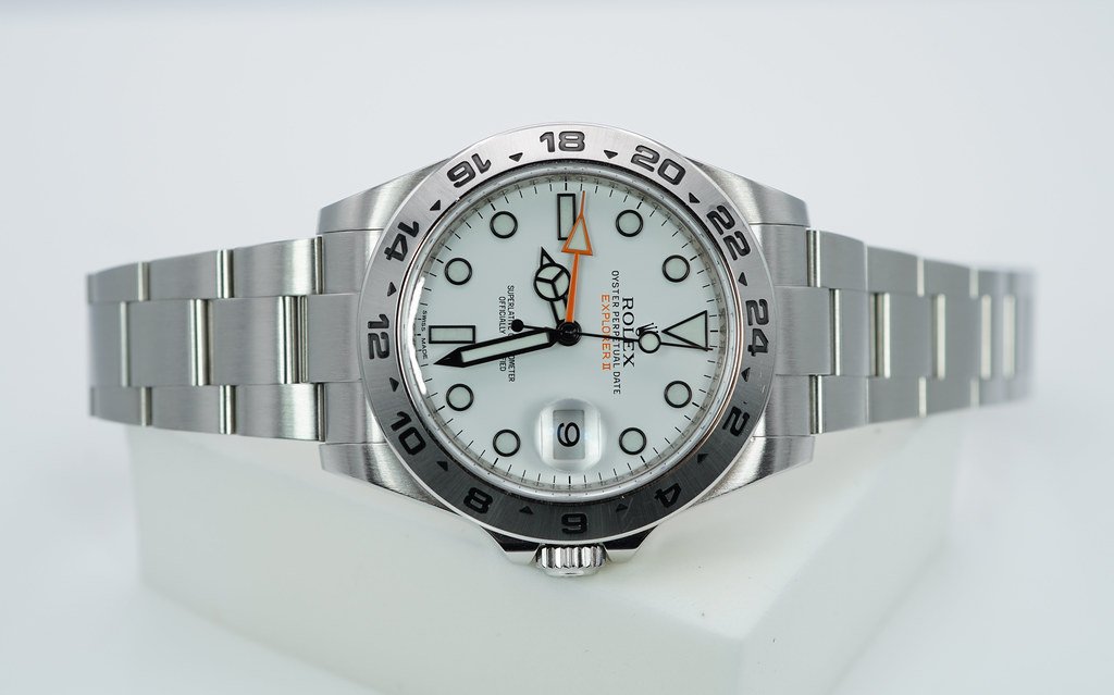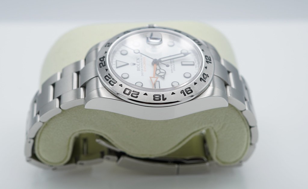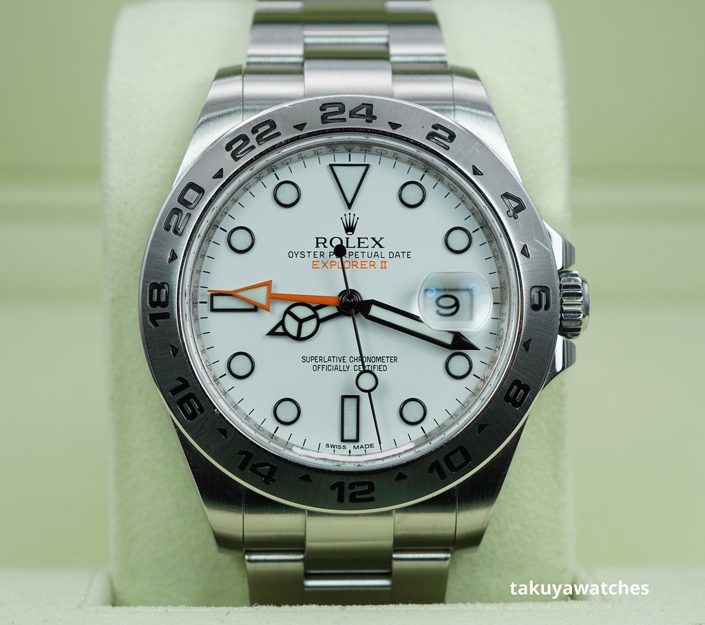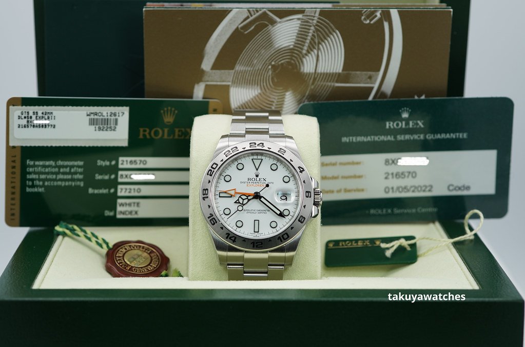 A Great Condition & Beautiful 42mm Rolex 216570 Explorer II Stainless Steel with White Polar Dial. Purchased from Rolex USA Authorized Dealer in 04.2014. The Watch received Full Services from Rolex Service Center in 01.2022. Watch running perfect with Non Issues. Full Links & Full Set.