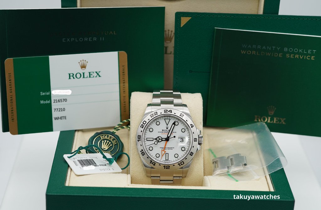 An Excellent Condition & Beautiful 42mm Rolex 216570 Explorer II Stainless Steel with White Polar Dial. Purchased from Rolex USA Authorized Dealer in 01.2018. Watch running perfect with Non Issues. Full Links & Full Set.