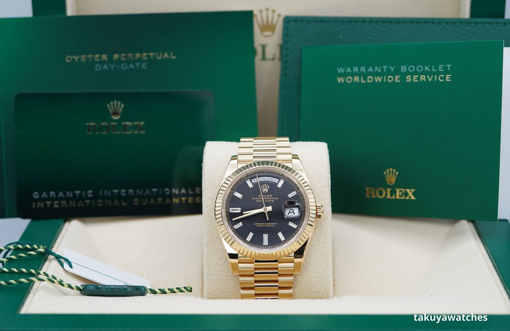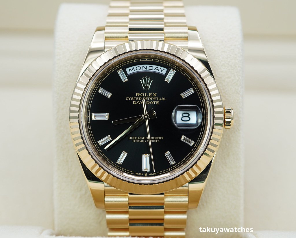 ·Rolex 228238 DAY DATE 40 YELLOW GOLD BLACK BAGUETTE DIAMOND DIAL 2023 FULL SET