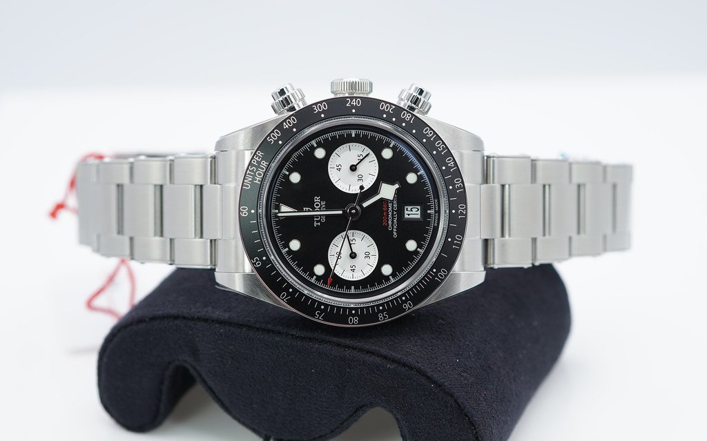 A Mint, Unpolished Condition & Very Cool 2023 41mm Tudor Stainless Steel 79360 Black Bay Chronograph with Black Dial. Purchased from Tudor USA Authorized Dealer in 12.2023. Watch Running Perfect with Non Issues. Some Stickers still Intact. Full Links. Full Set & Under 5 Years Factory Warranty.