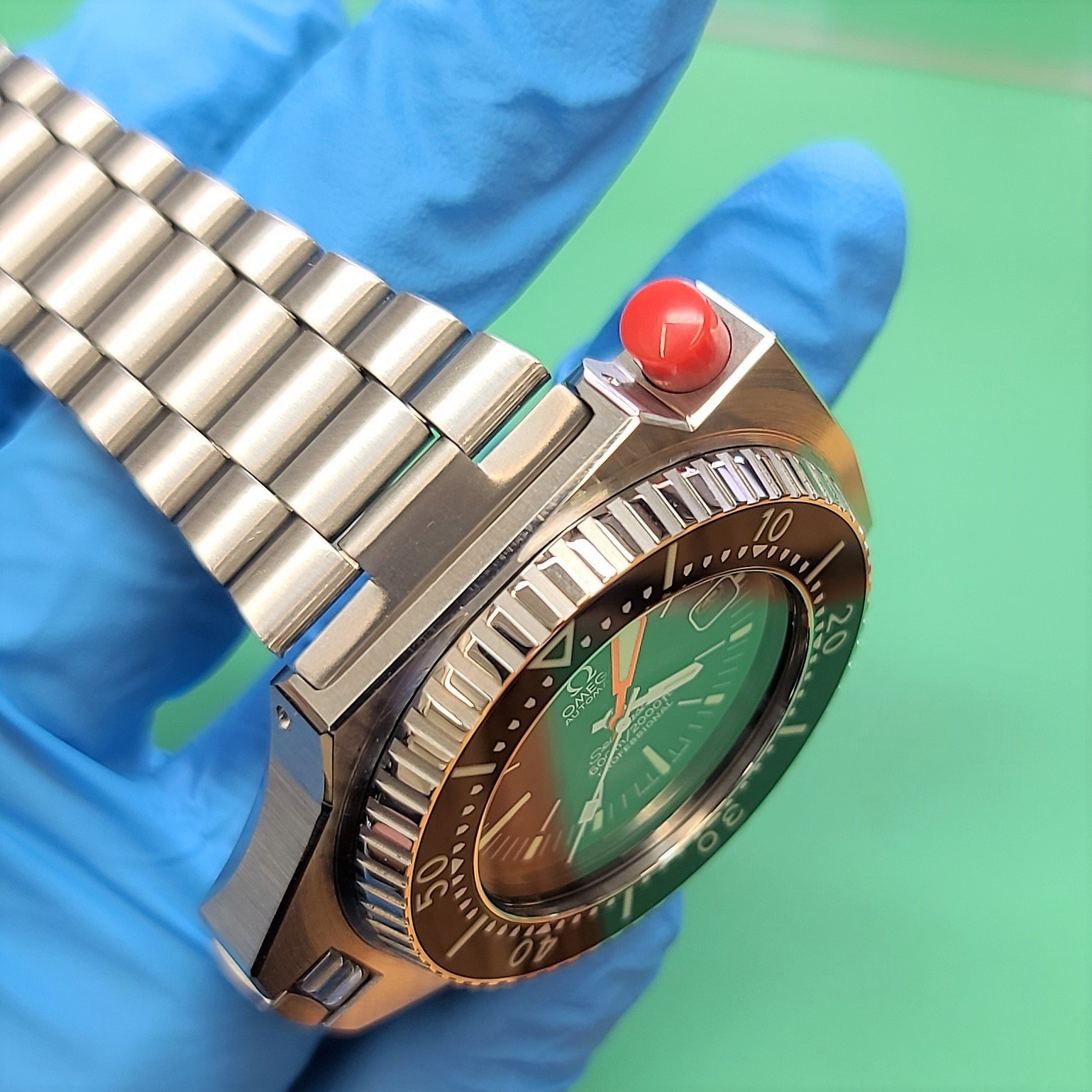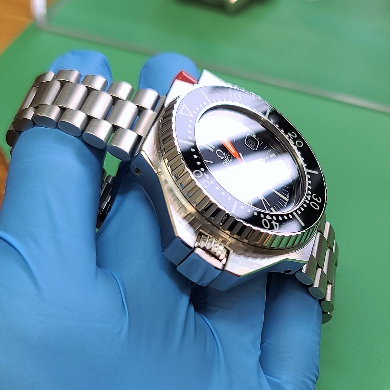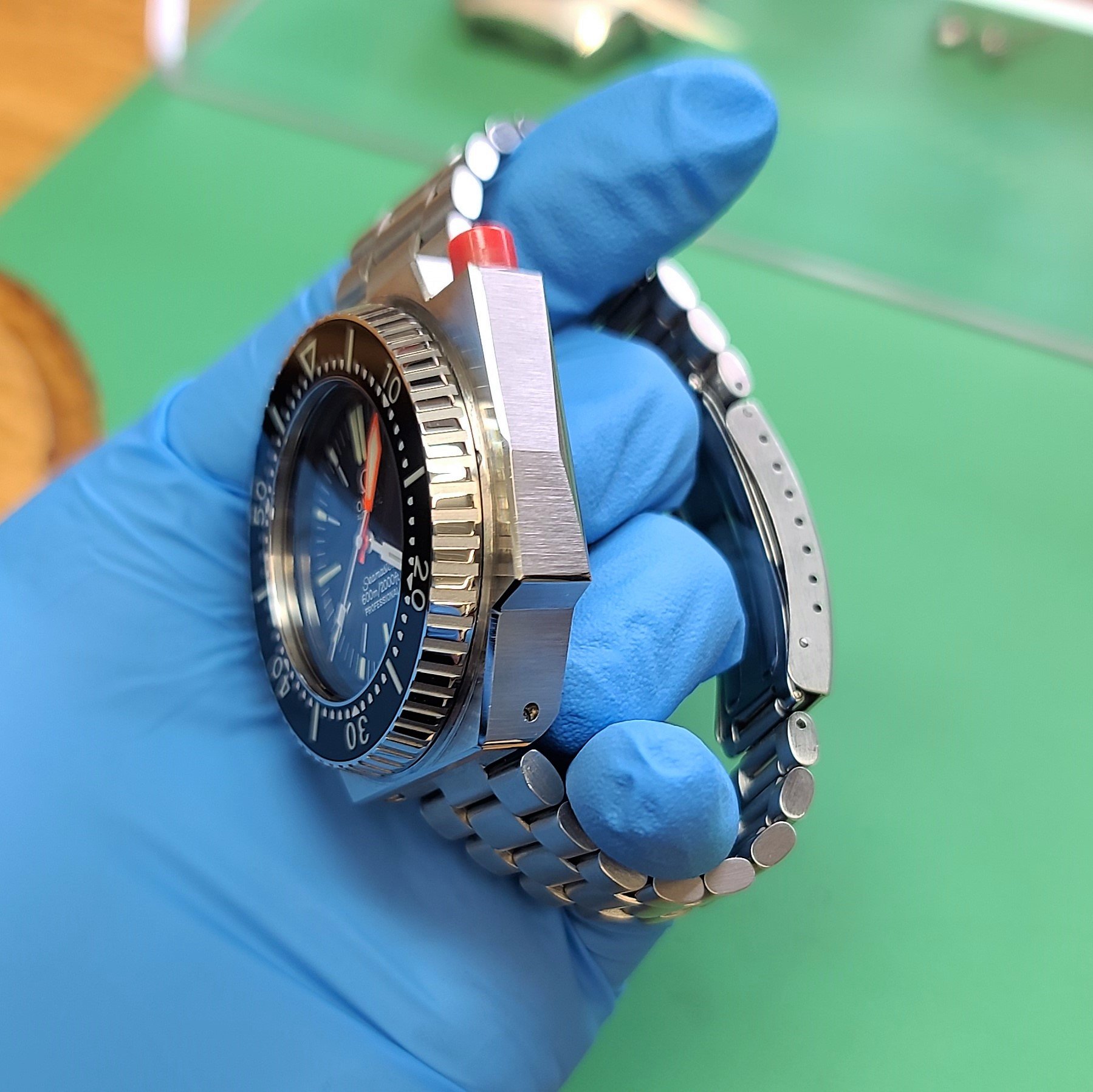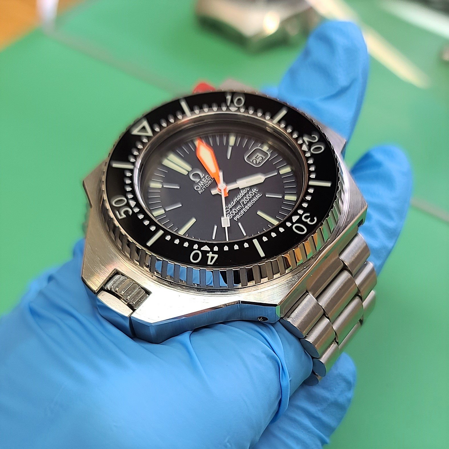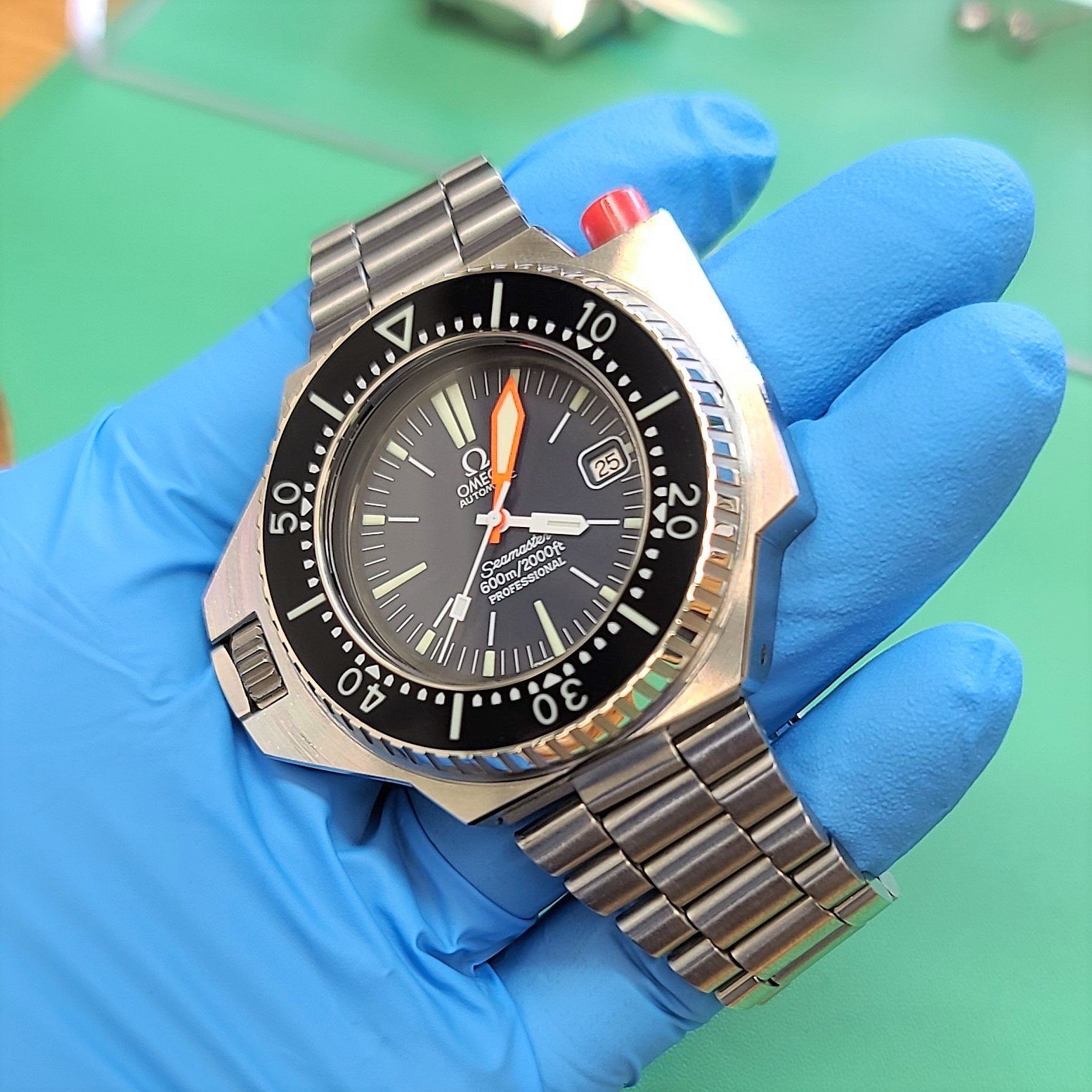 Just wanted to show you guys a restoration we just got done at TMWatchCo. We restored the whole thing in house and everything is either NOS or new service parts. The case took a lot of hours to refinish but turned out great! We are currently taking restoration work if any one needs help on some vintage Omegas. Let me know what you think of this beautifully restored Ploprof!