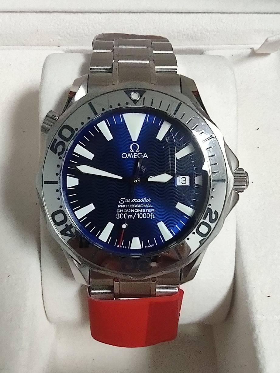 Omega Seamaster Professional 300M watch for sale in great pre-owned condition, shows minor scratches to the bezel and clasp. Comes with extra links, original box with manual, warranty cards and proof of service.