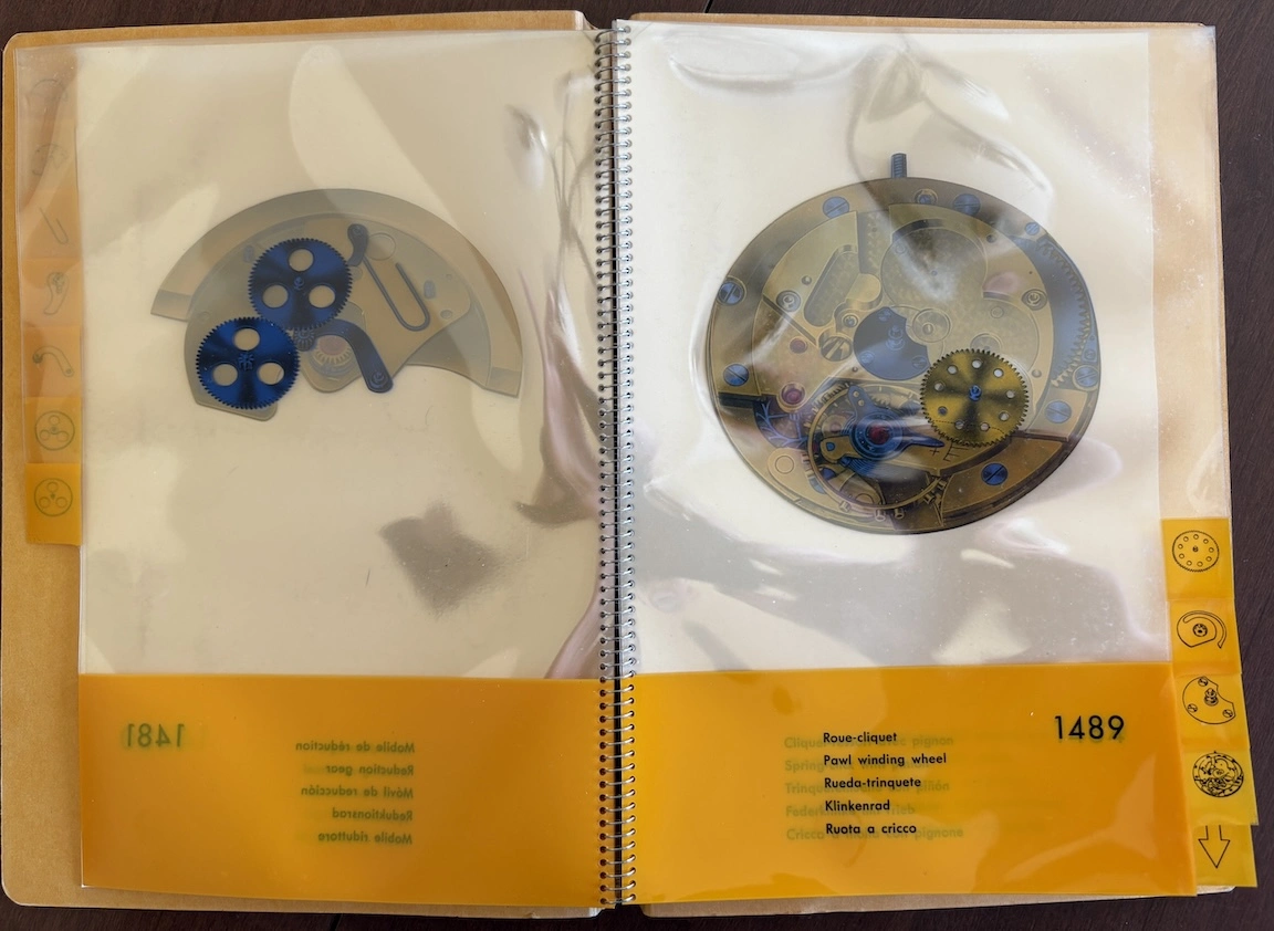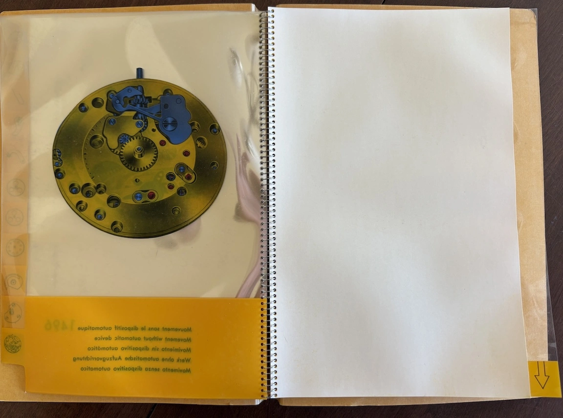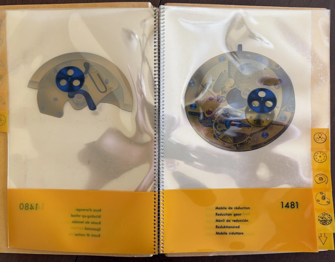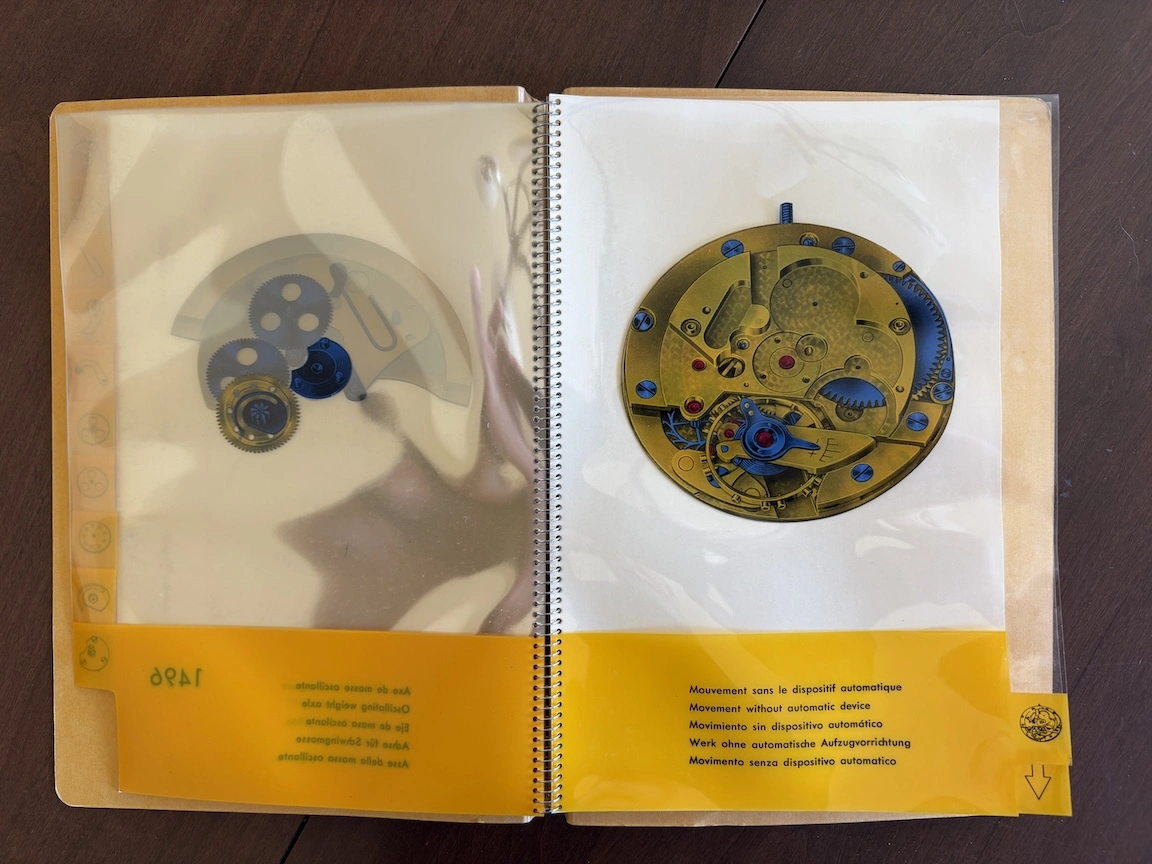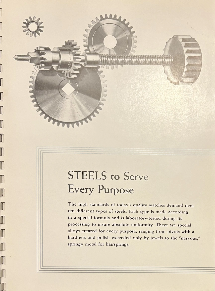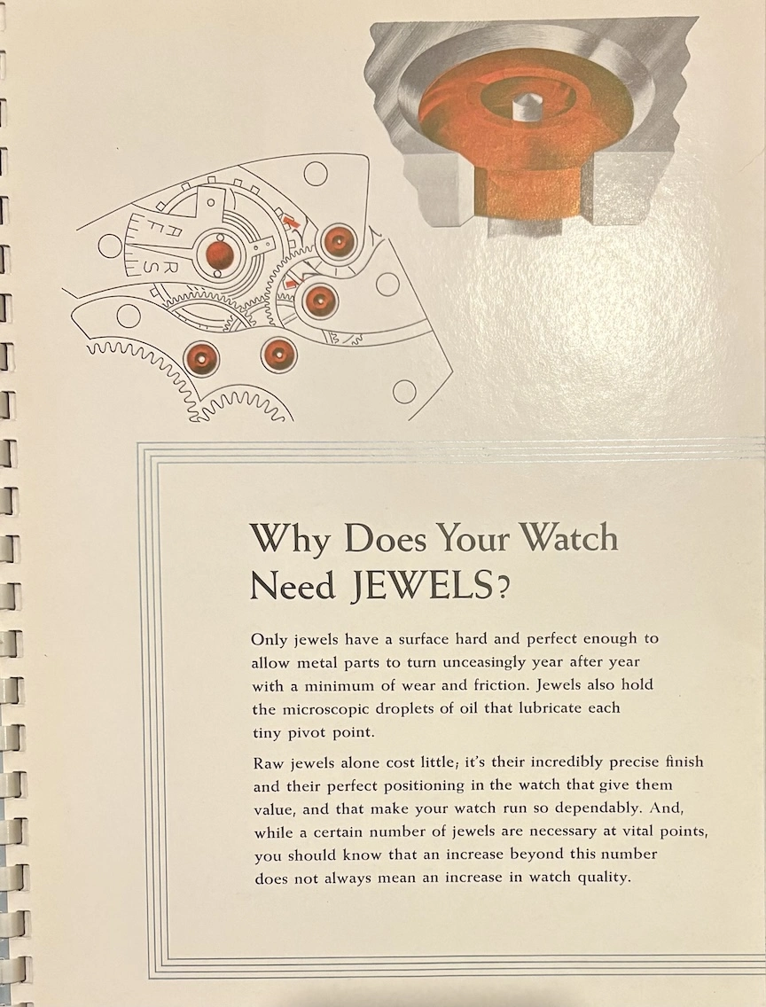 Previously, I have seen this type of transparent overlay in children's books or anatomy books, but it's interesting to see the movement cut away layer by layer, both front and back. And it's remarkable how different marketing was in the mid-20th century, when the general public was so excited by new technology. This almost feels like it could serve as a manual to illustrate movement assembly. Now it would just be about aesthetics and prestige.