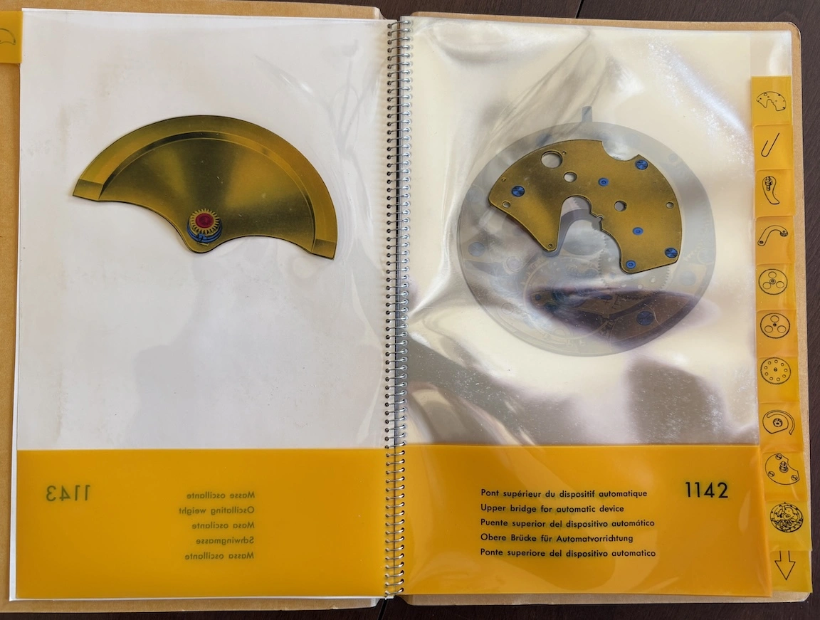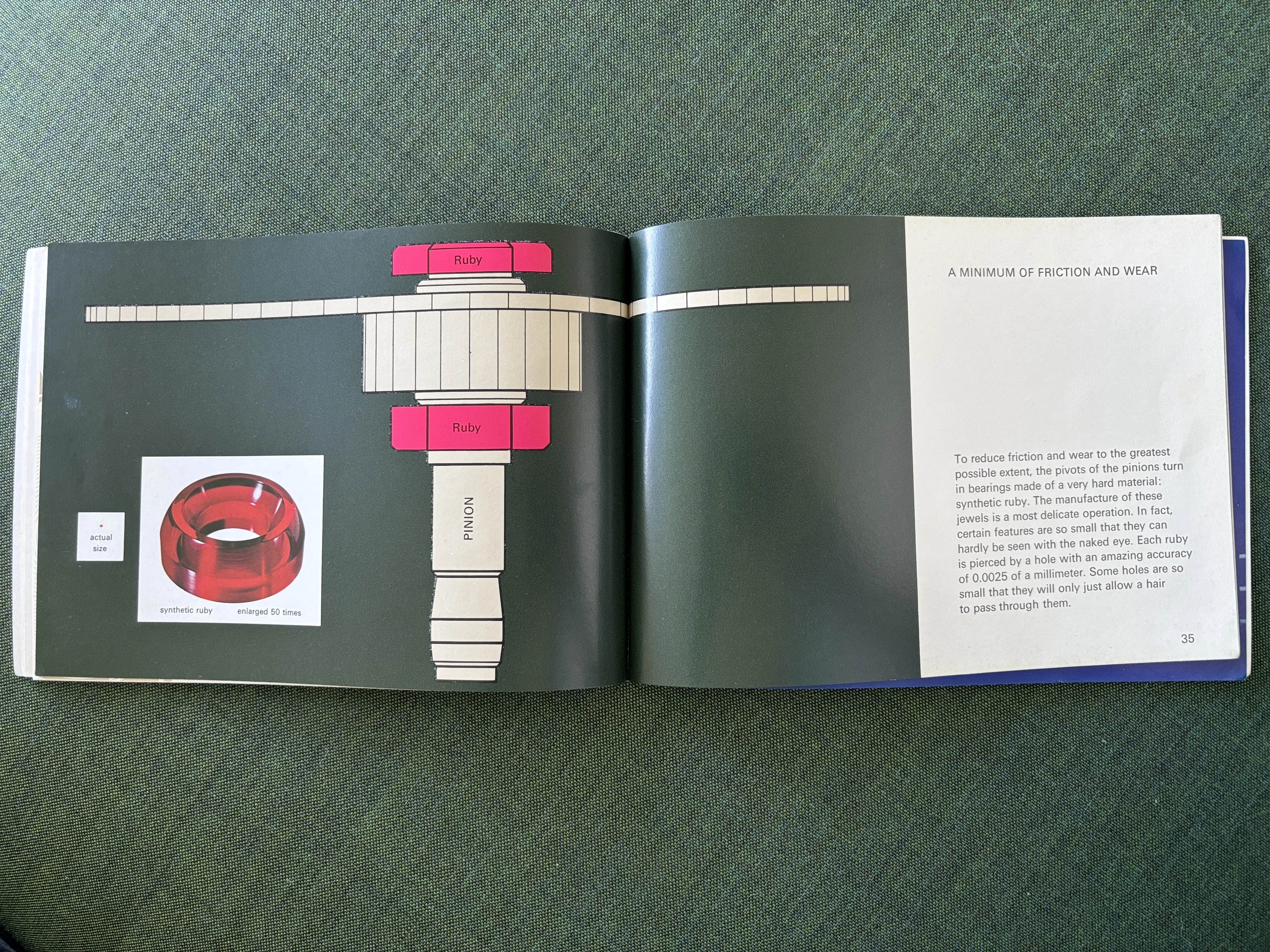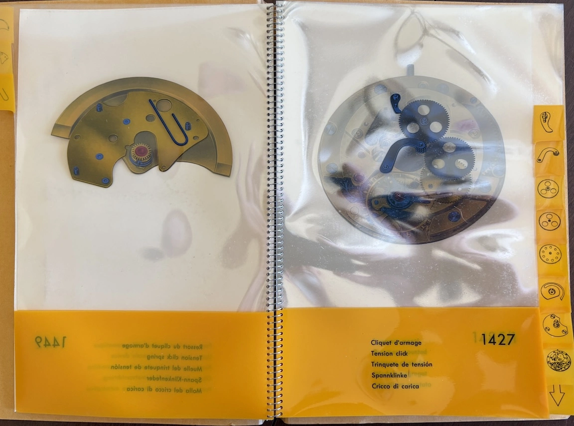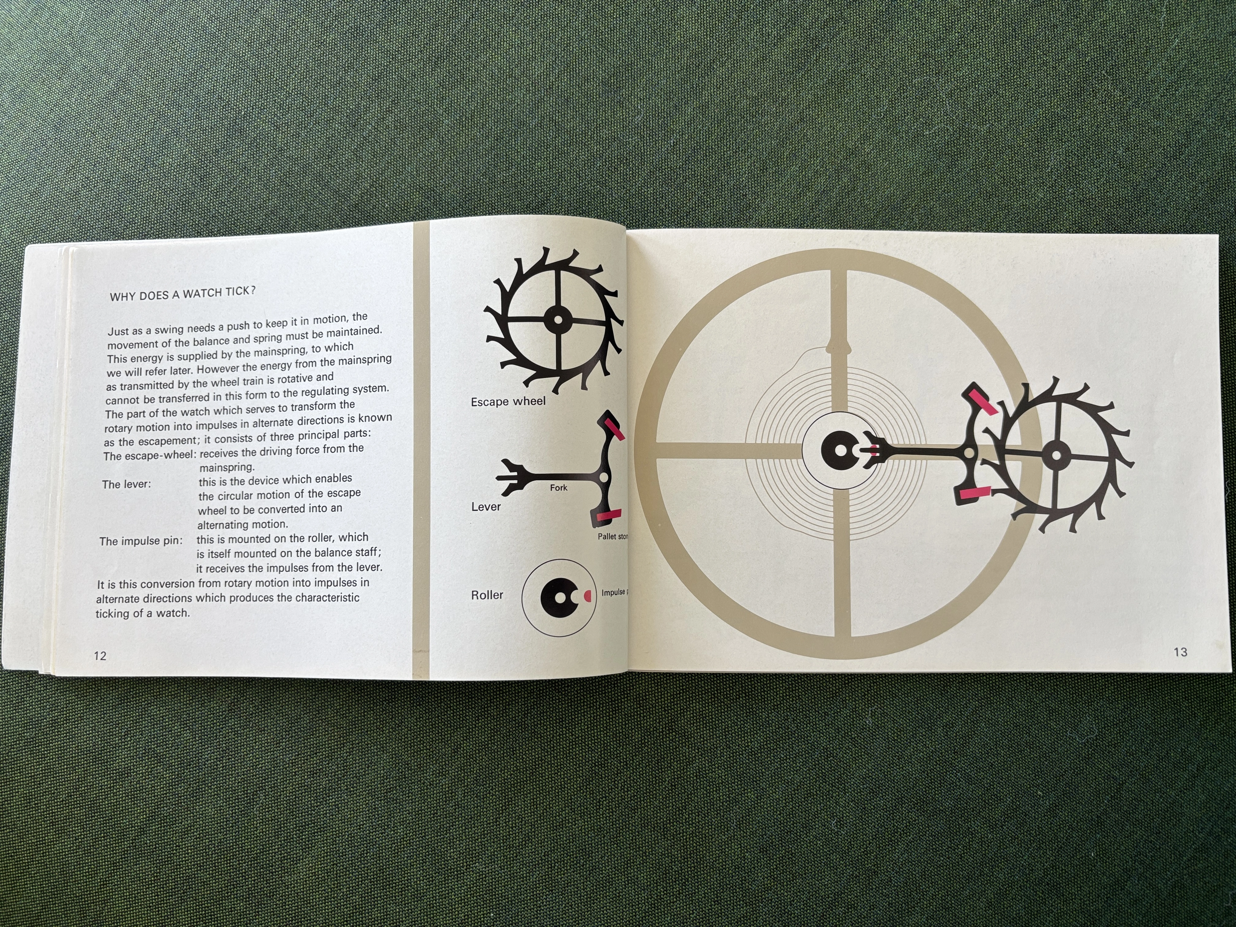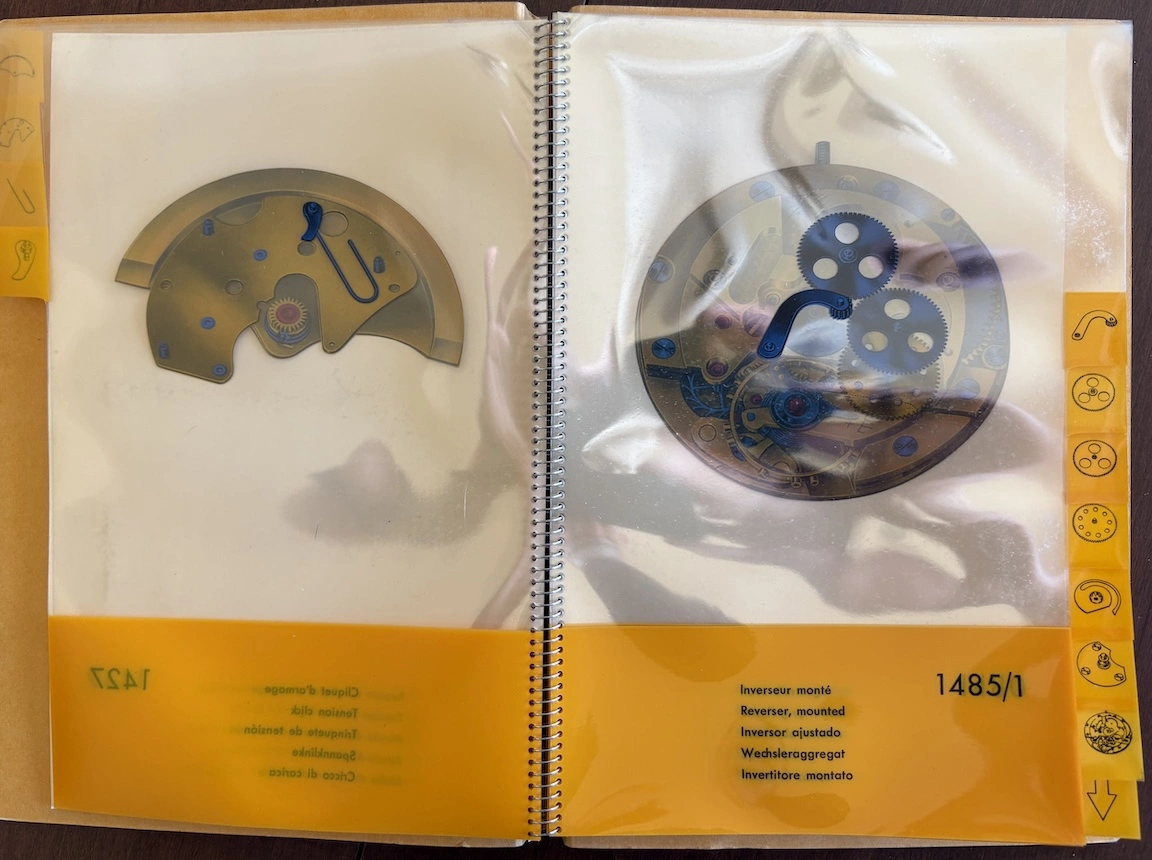 Previously, I have seen this type of transparent overlay in children's books or anatomy books, but it's interesting to see the movement cut away layer by layer, both front and back. And it's remarkable how different marketing was in the mid-20th century, when the general public was so excited by new technology. This almost feels like it could serve as a manual to illustrate movement assembly. Now it would just be about aesthetics and prestige.