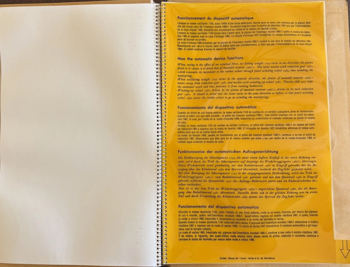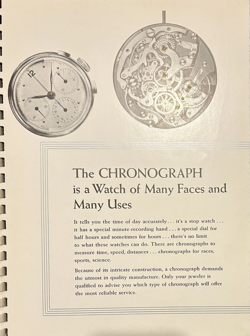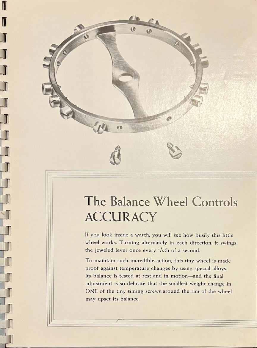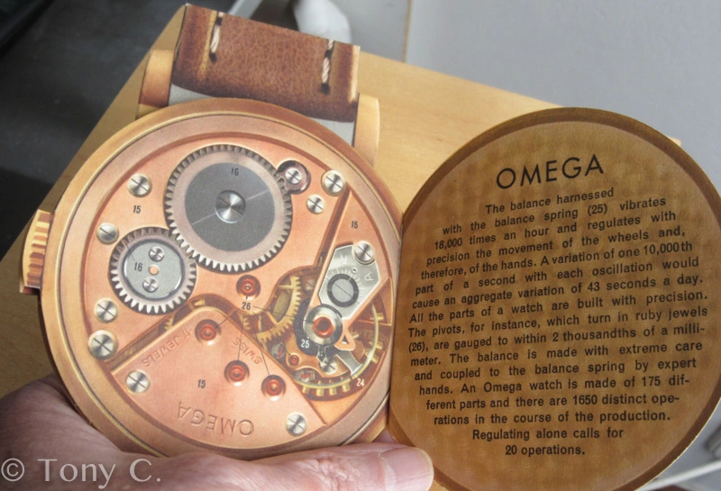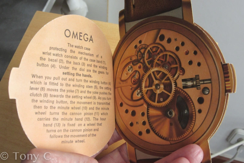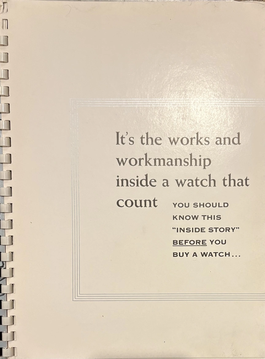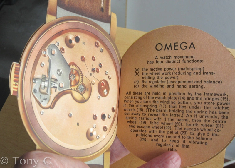·This was apparently a promotional item from 1954, placed in watch retail venues, marketing auto-winding watches with a highly technical and graphical explanation. It's interesting to see back when automatic movements were still considered "the timekeeper of the future!"