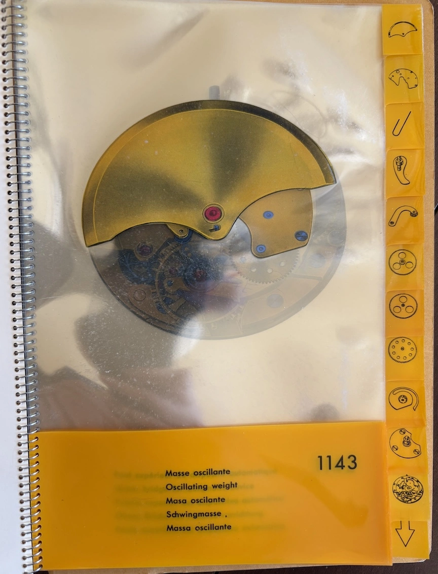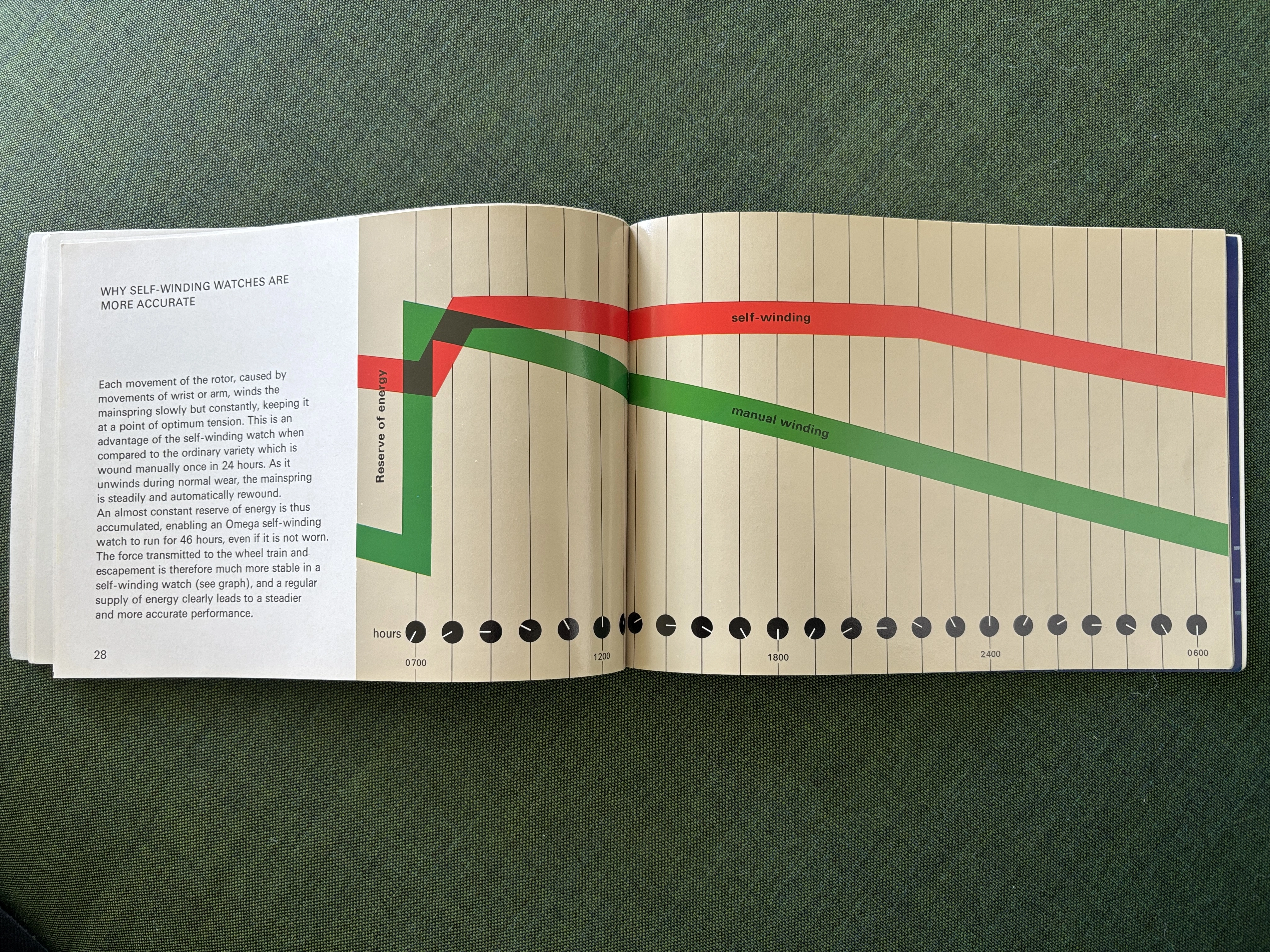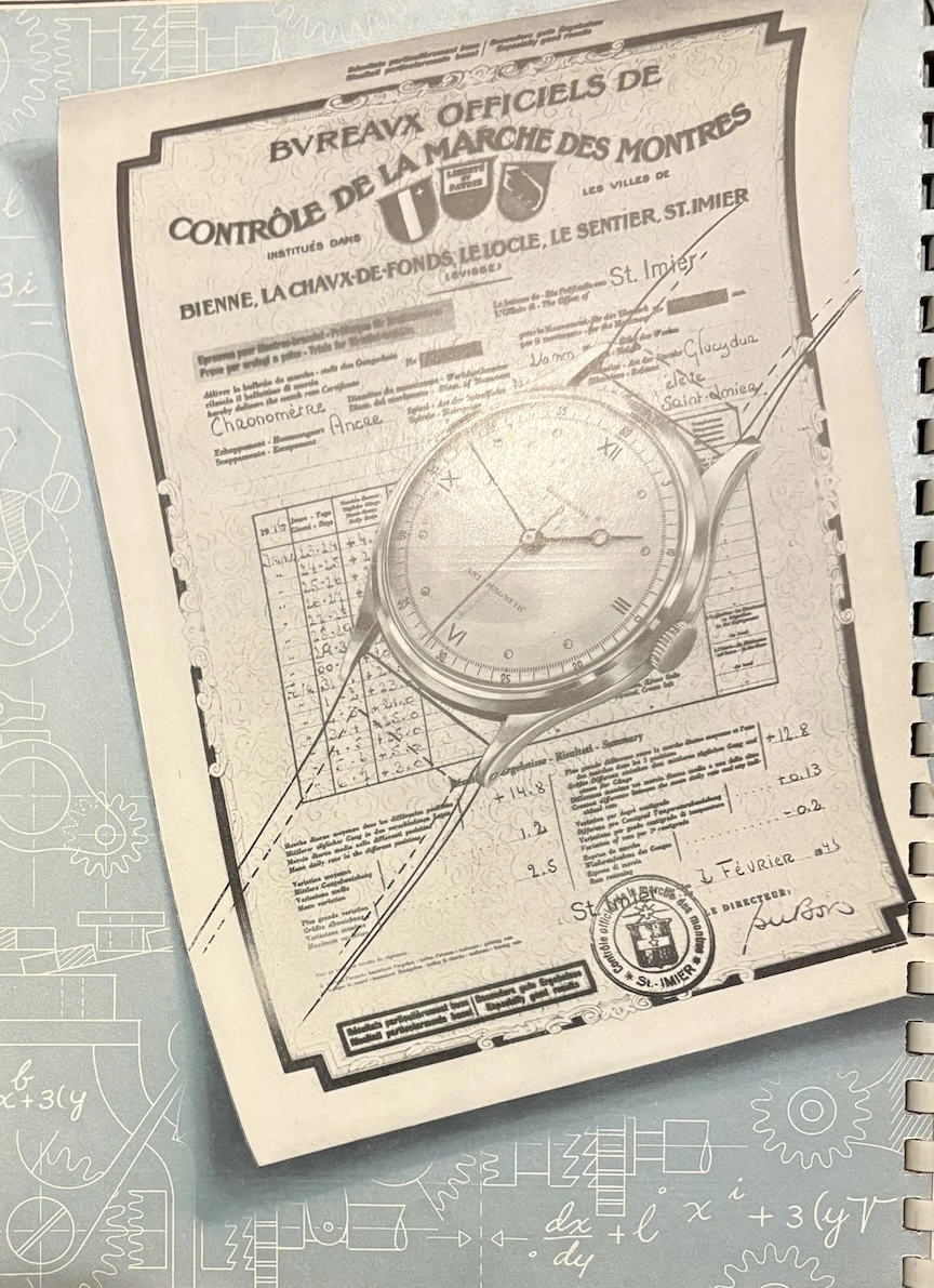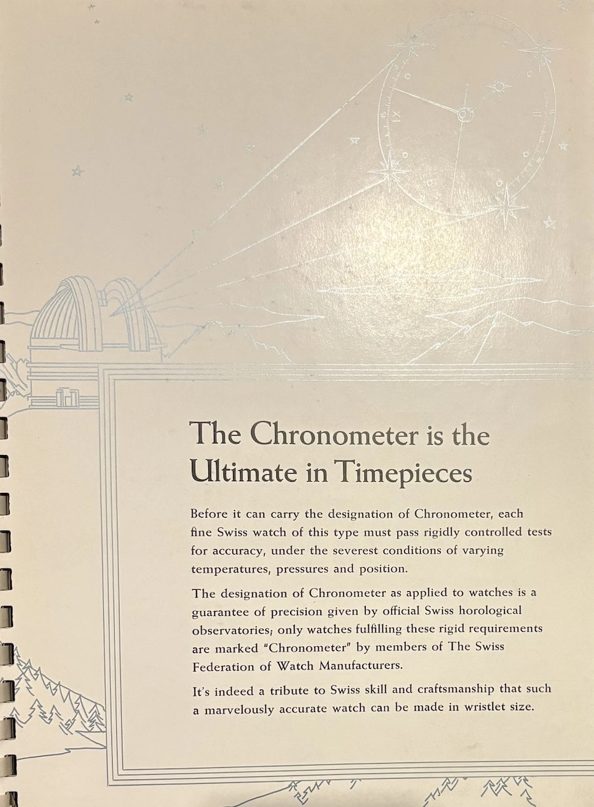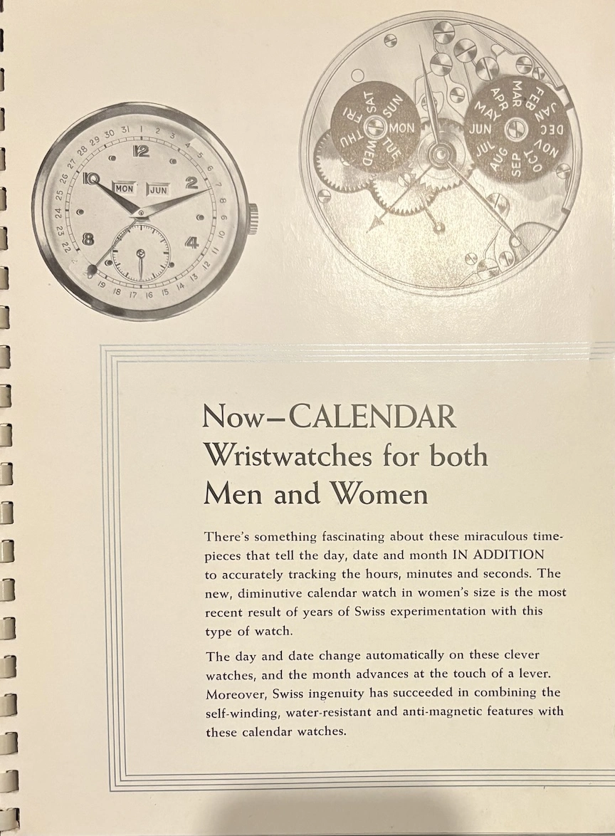 ·This was apparently a promotional item from 1954, placed in watch retail venues, marketing auto-winding watches with a highly technical and graphical explanation. It's interesting to see back when automatic movements were still considered "the timekeeper of the future!"