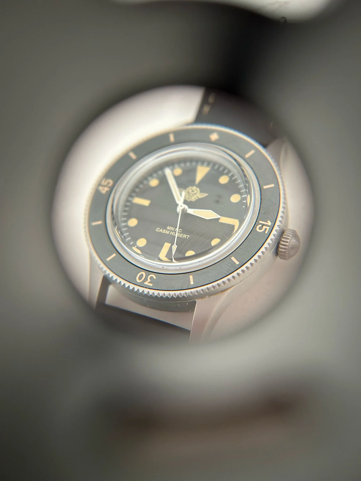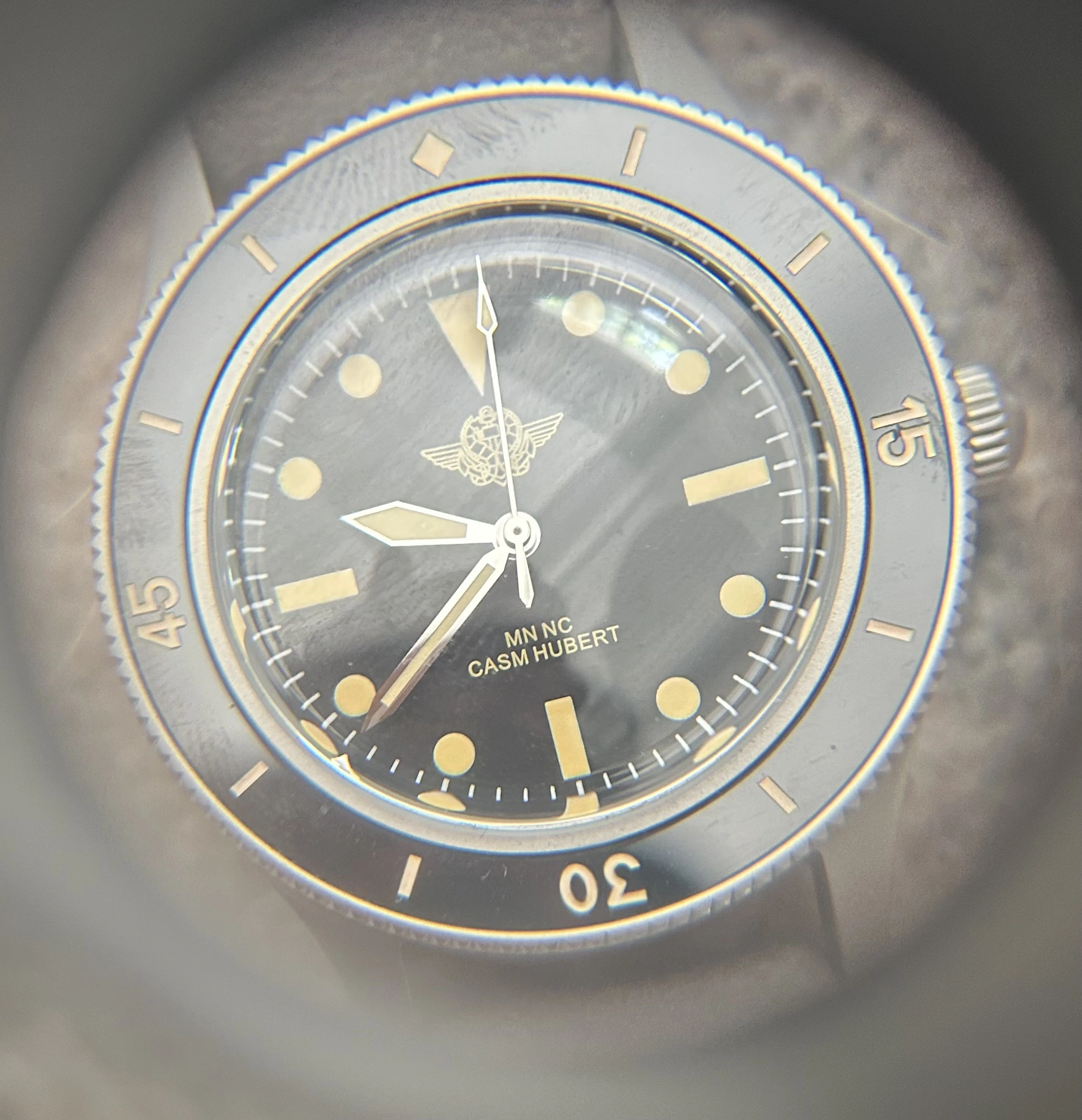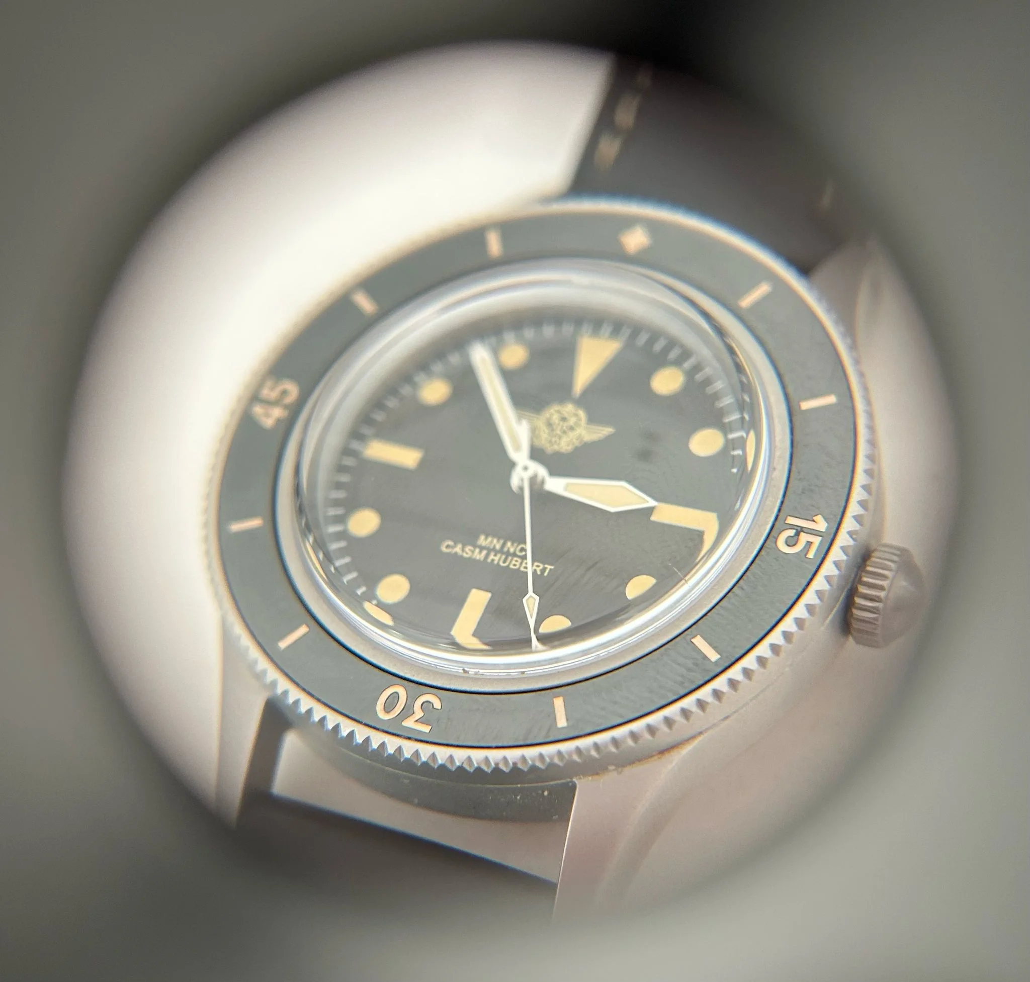 ·Offered here is a new and unworn CASM Hubert Commando Nageur de Combat dive watch - one of approximately 40 pieces produced exclusively for current and former members & awardees of France’s elite combat swimmers. These watches were created in small batches, not for commercial sale, but as private commemorative pieces to honor those who earned the Brevet de Nageur de Combat, and wanted something to wear in more formal settings.