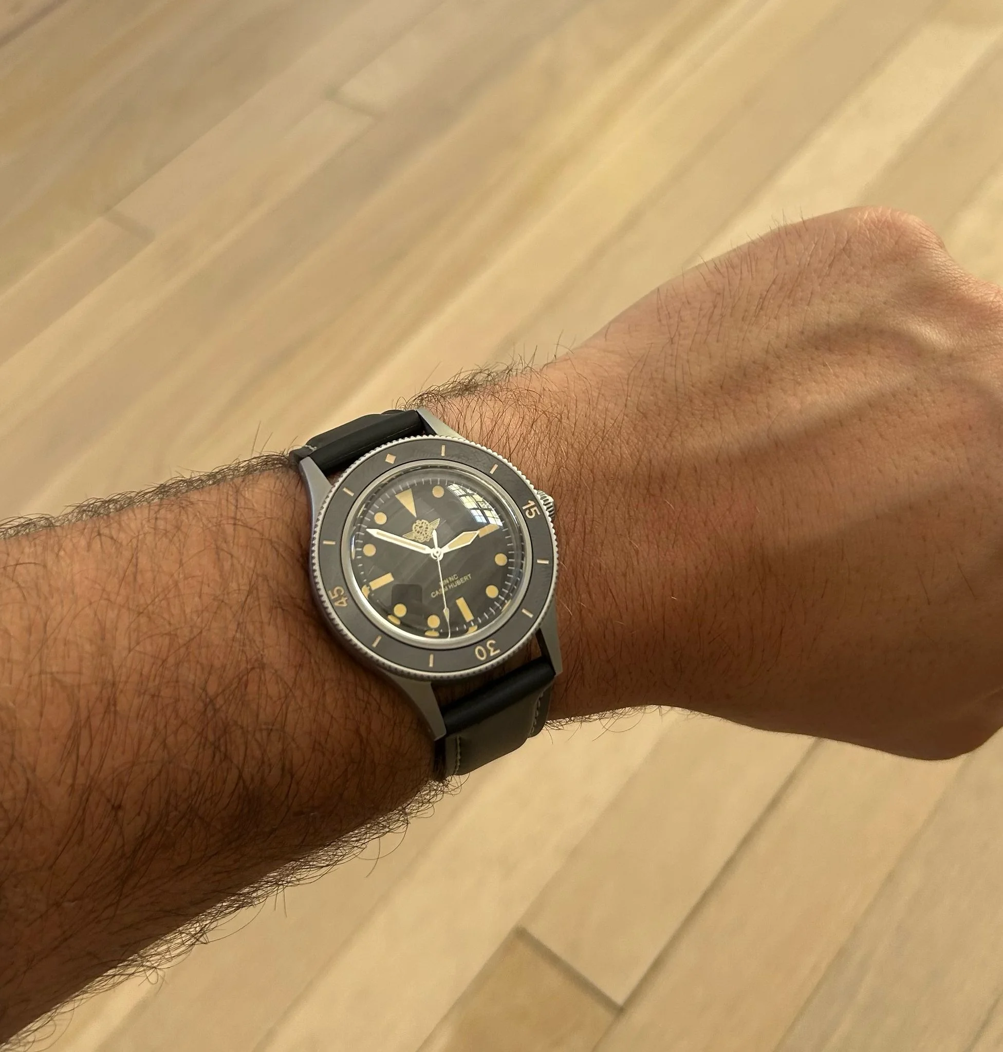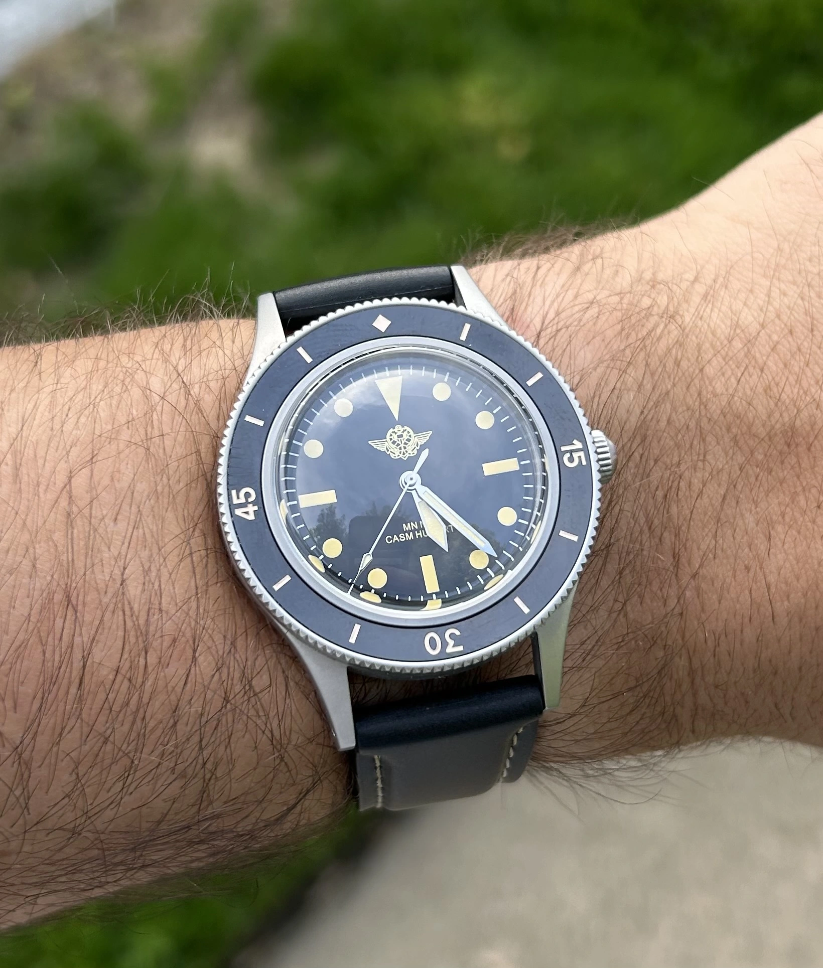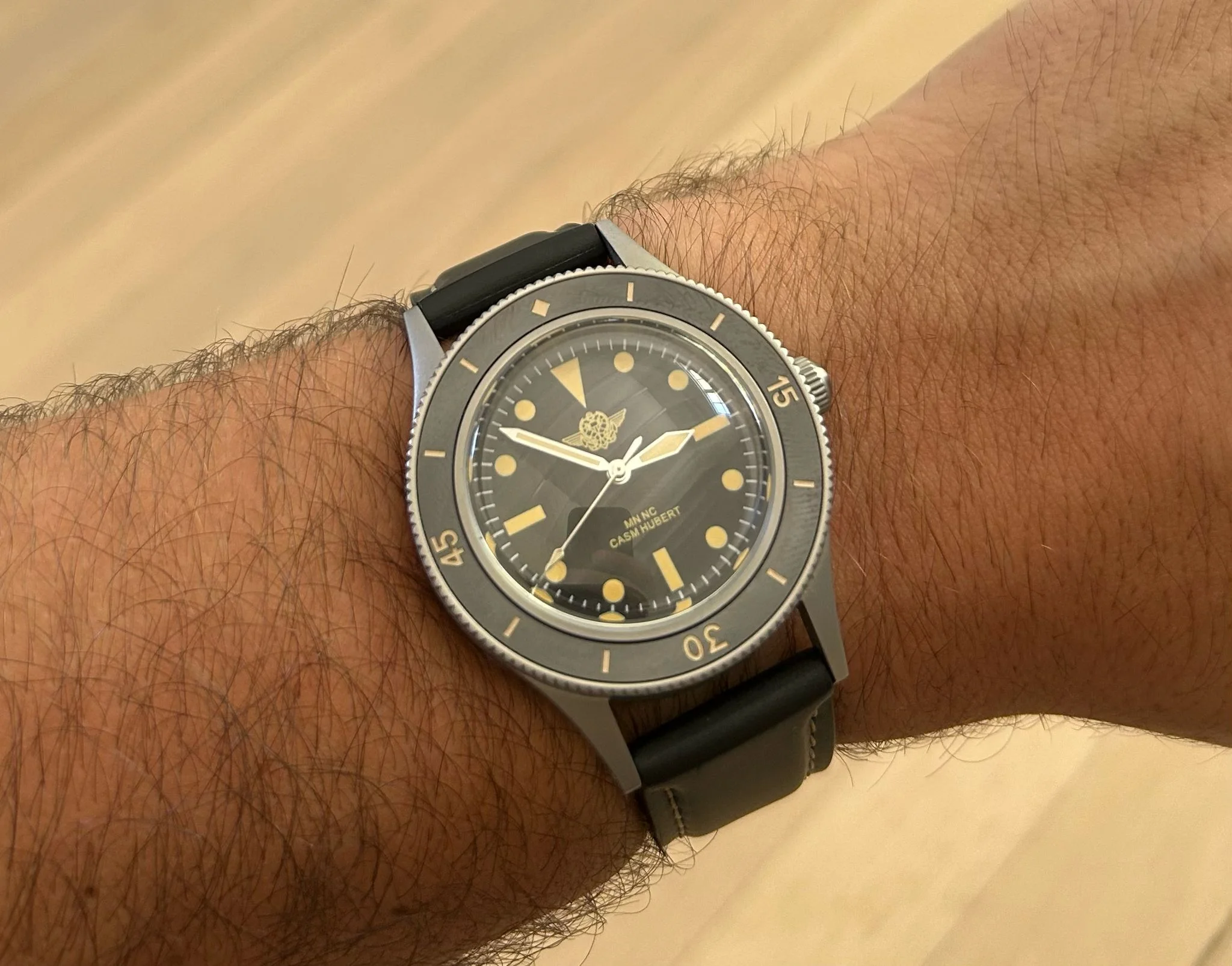 ·Offered here is a new and unworn CASM Hubert Commando Nageur de Combat dive watch - one of approximately 40 pieces produced exclusively for current and former members & awardees of France’s elite combat swimmers. These watches were created in small batches, not for commercial sale, but as private commemorative pieces to honor those who earned the Brevet de Nageur de Combat, and wanted something to wear in more formal settings.