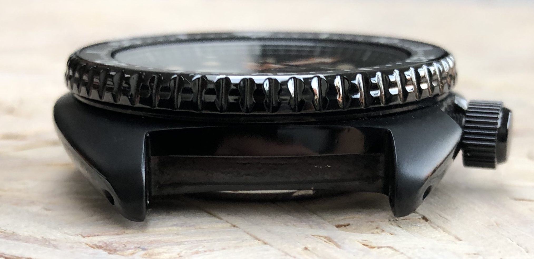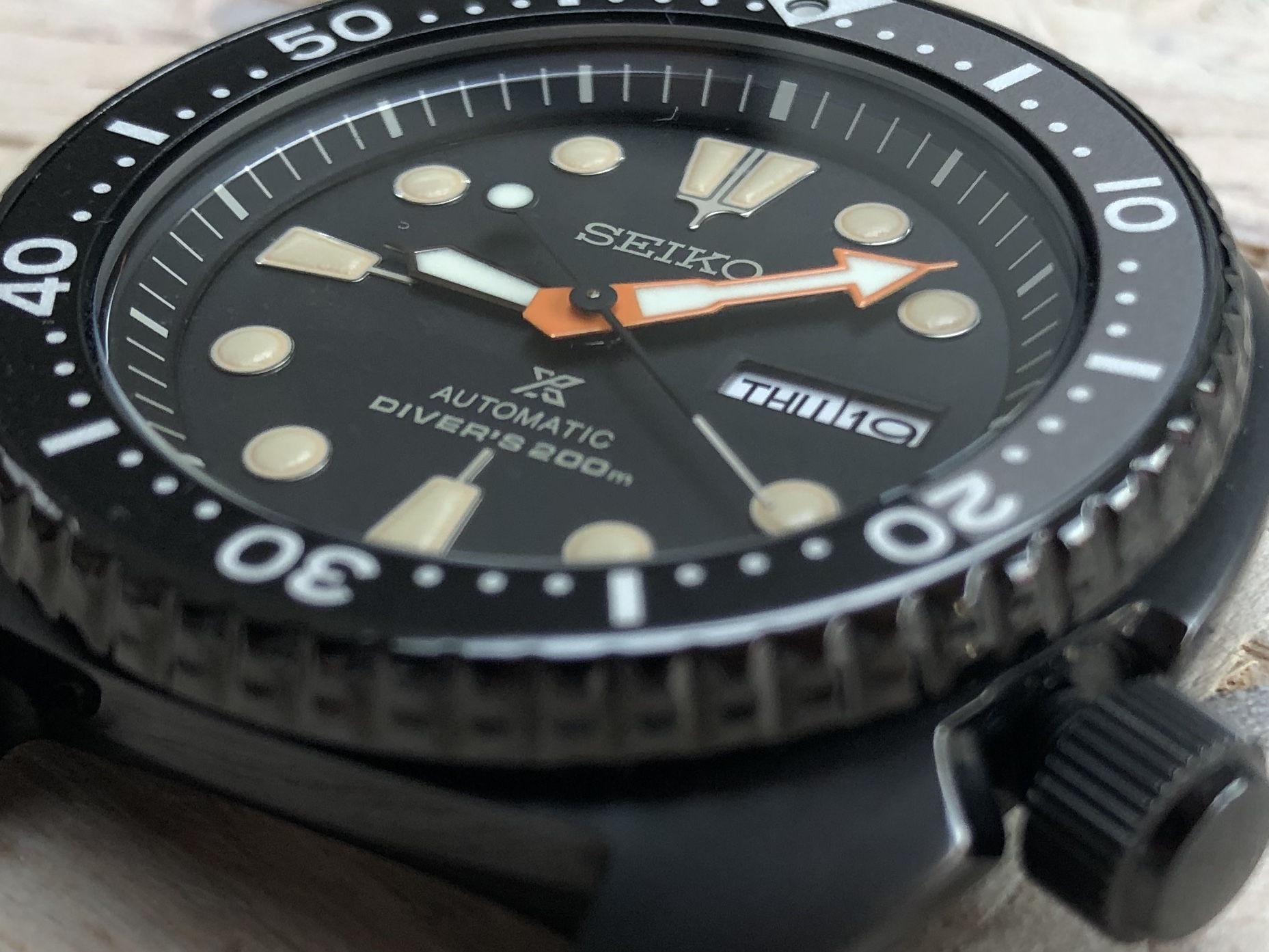 - Case: 45mm Turtle case with what Seiko refers to as "hard black coating." The combination of glossy and matte black surfaces is quite remarkable.