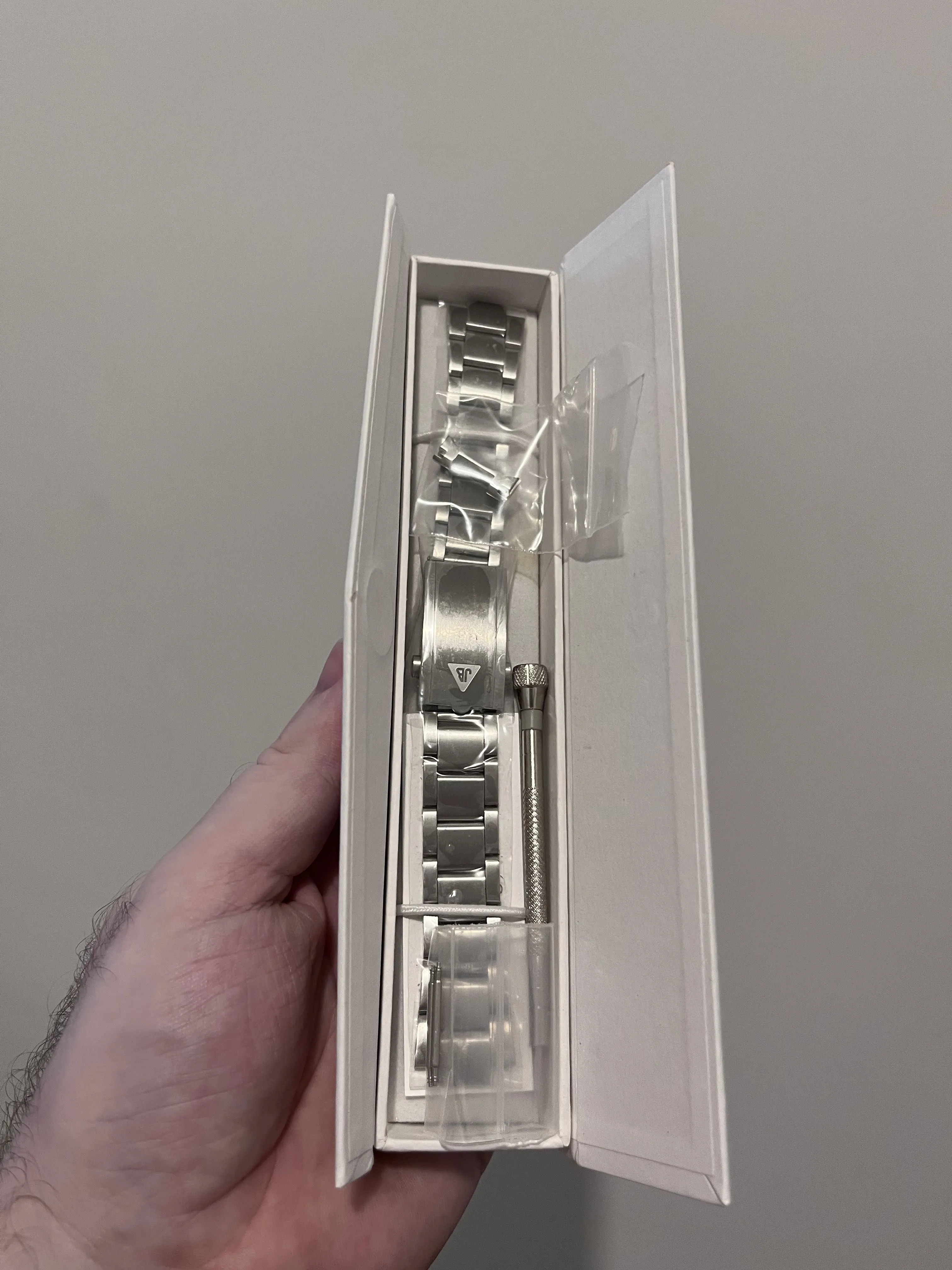 Comes with the box, papers, and I believe I still have the receipt too. I'll also throw in a brand new Forstner oyster-style bracelet.