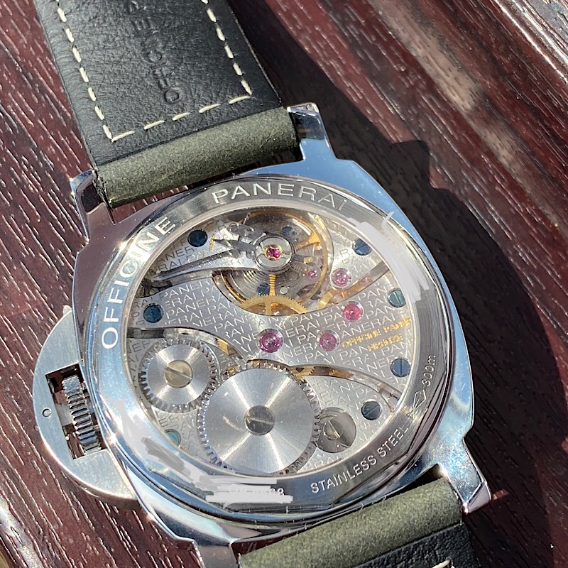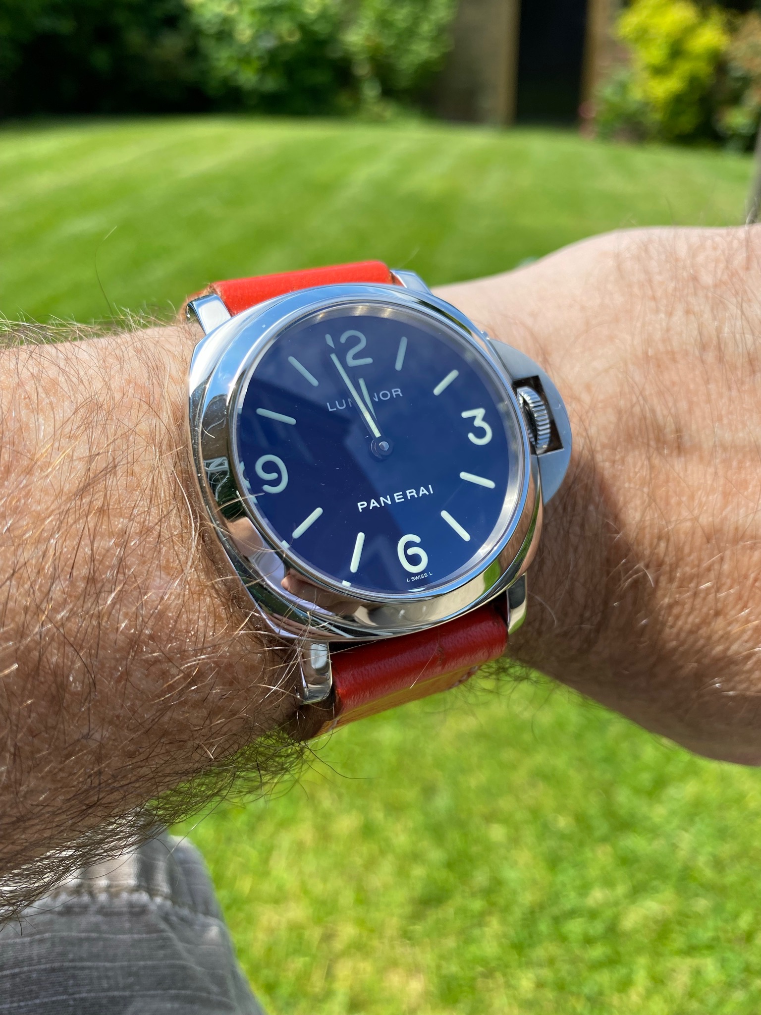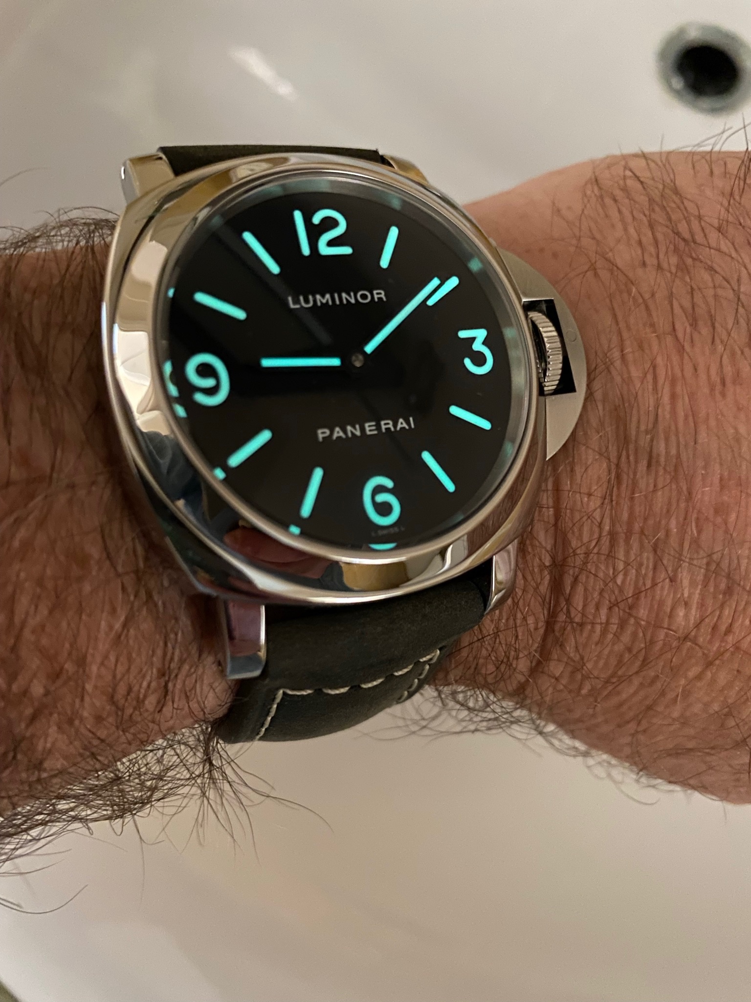 Posts 597 Likes 1,280 rootbeer7 ·Jun 29, 2021 I missed having a Panerai and when this came up the chase began! This early G series model has painted dial with L Swiss L at the bottom and decorated movement. Seamaster 300 had to go, but I still have my Speedy!