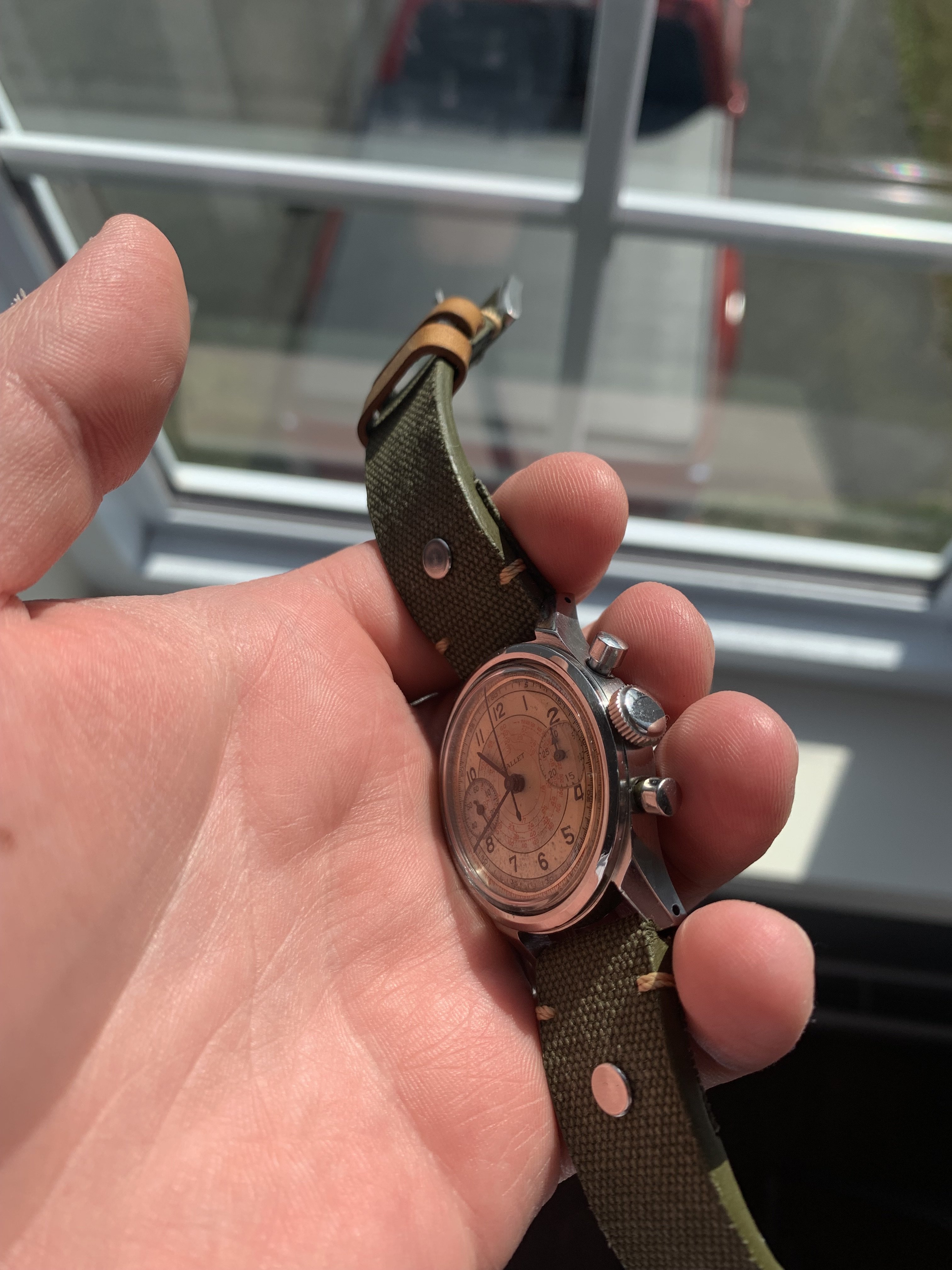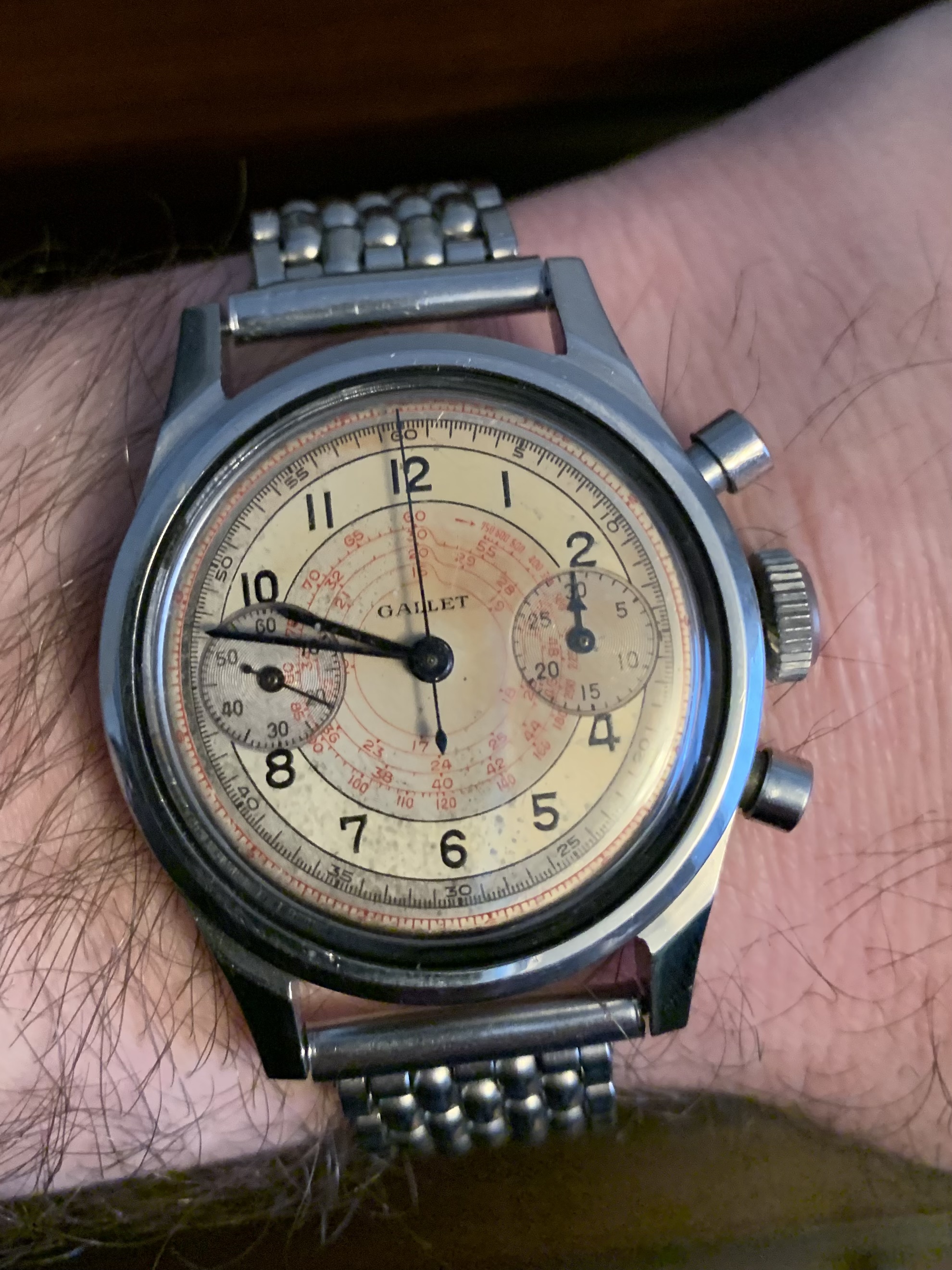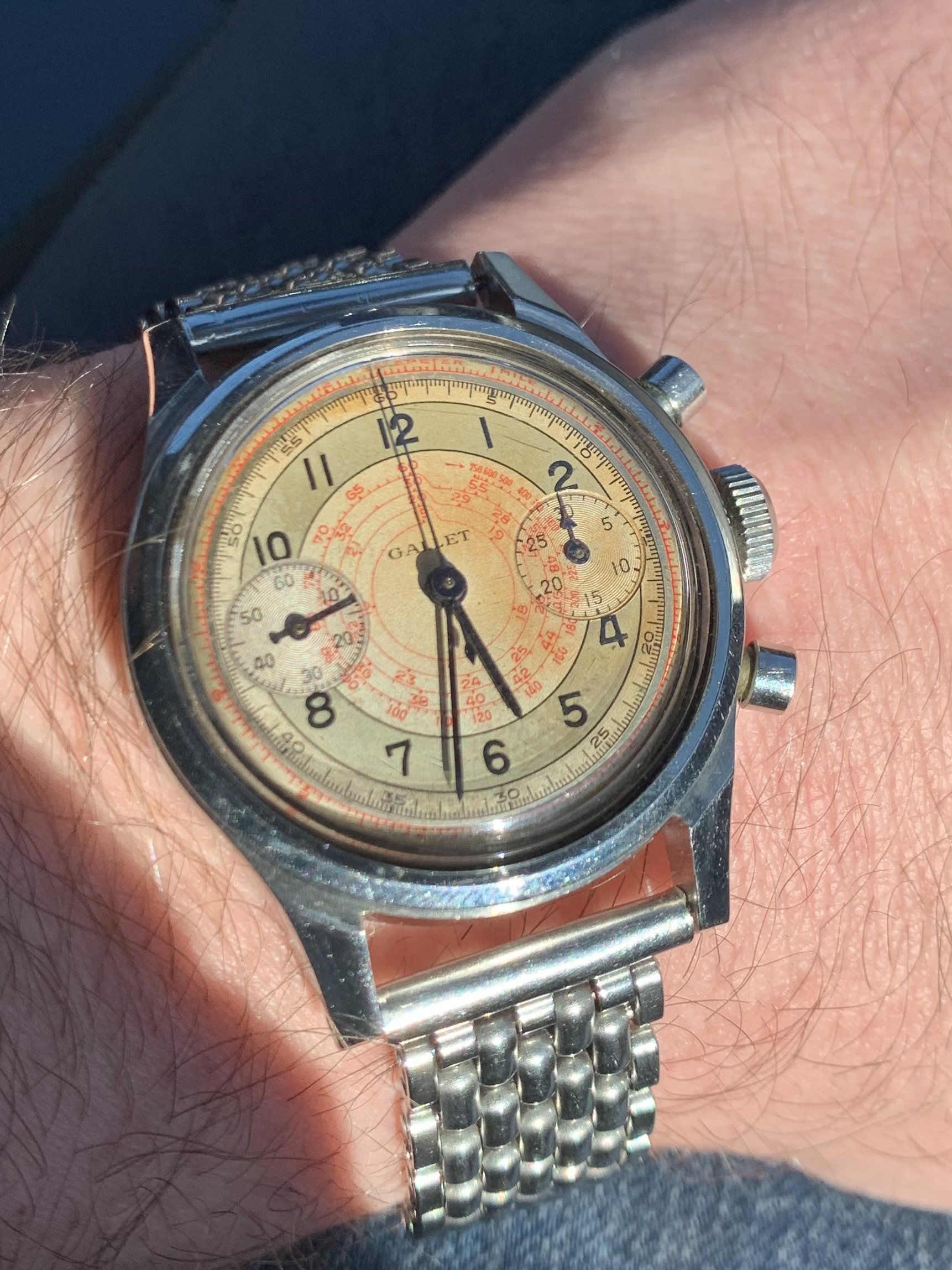 Up for offer is my Gallet 30M clamshell with a Venus 150. Watch is in great condition and shows it’s patina on the dial.