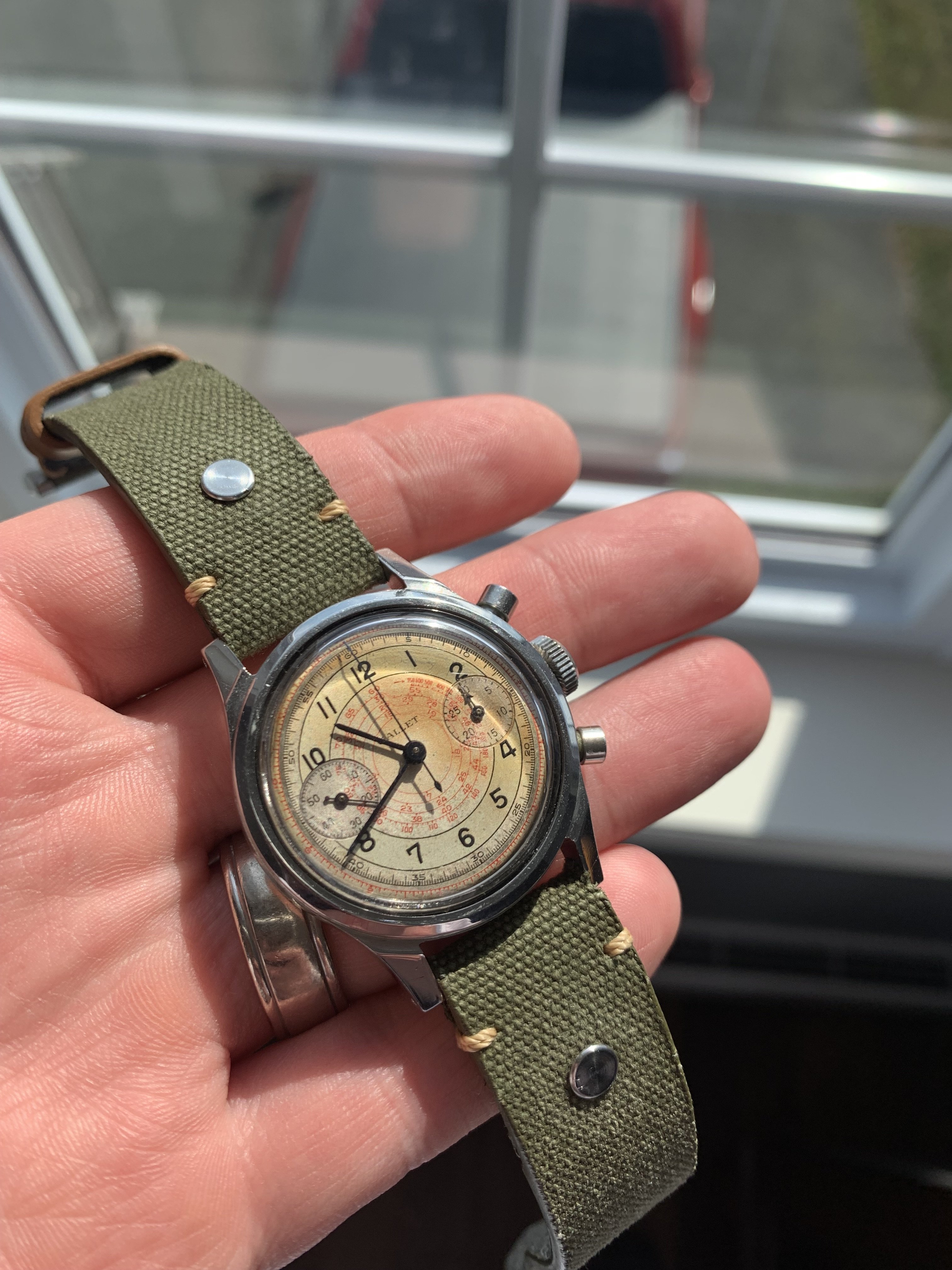 -Movement: Venus 150 2 register movement. Sorry but no photos and I’m not confident in opening it up to gain access. Movement has been just checked over during crown replacement April 2022.