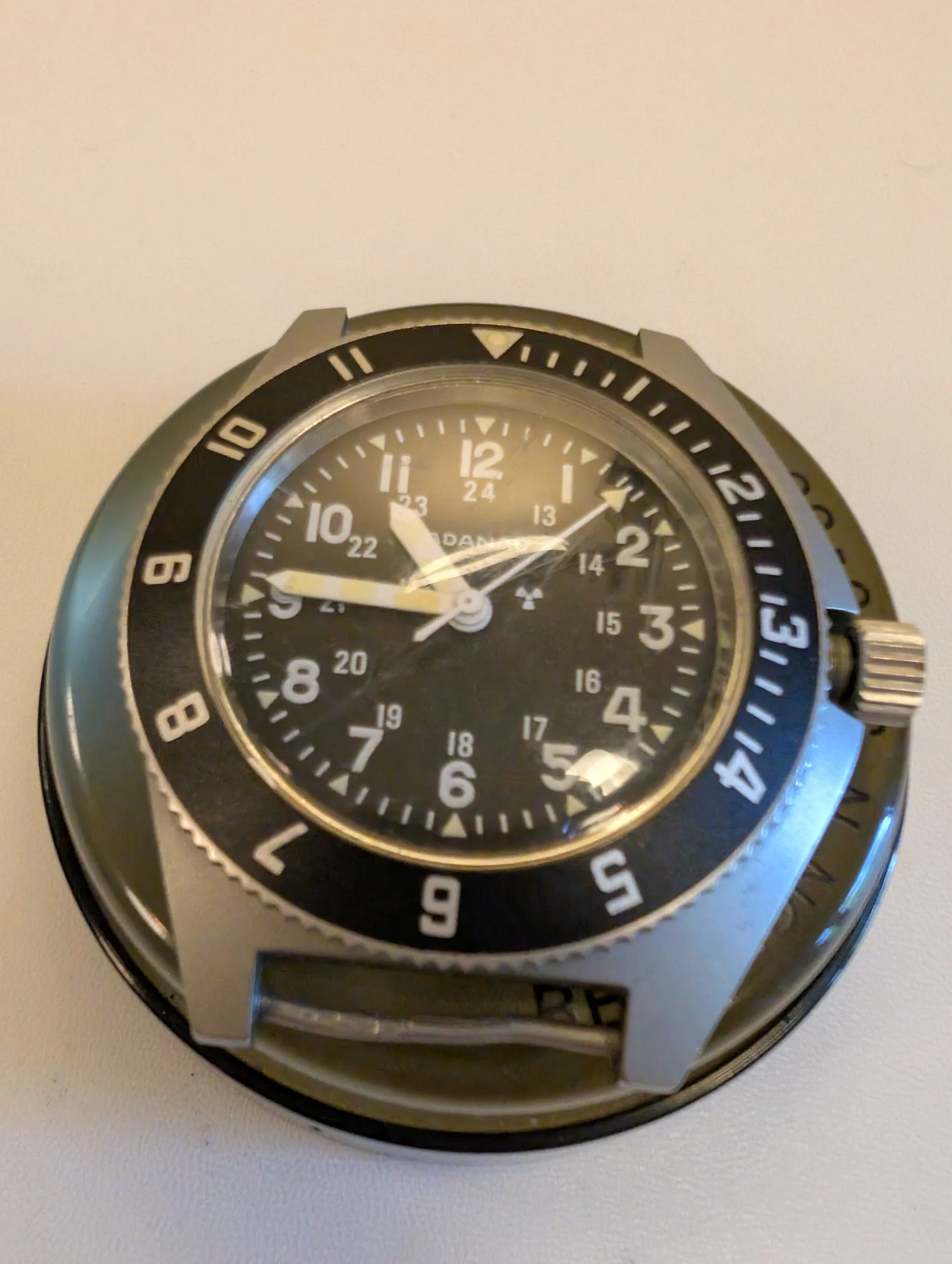 Dealing with the hardware on this one suggests to me that these watches were never designed with the intention of being serviced (Use it 'til it breaks, then throw it away & get a new one...). Really felt as though the case back tool was in danger of breaking before the case would give up the case back. Did eventually come free all right in the end.