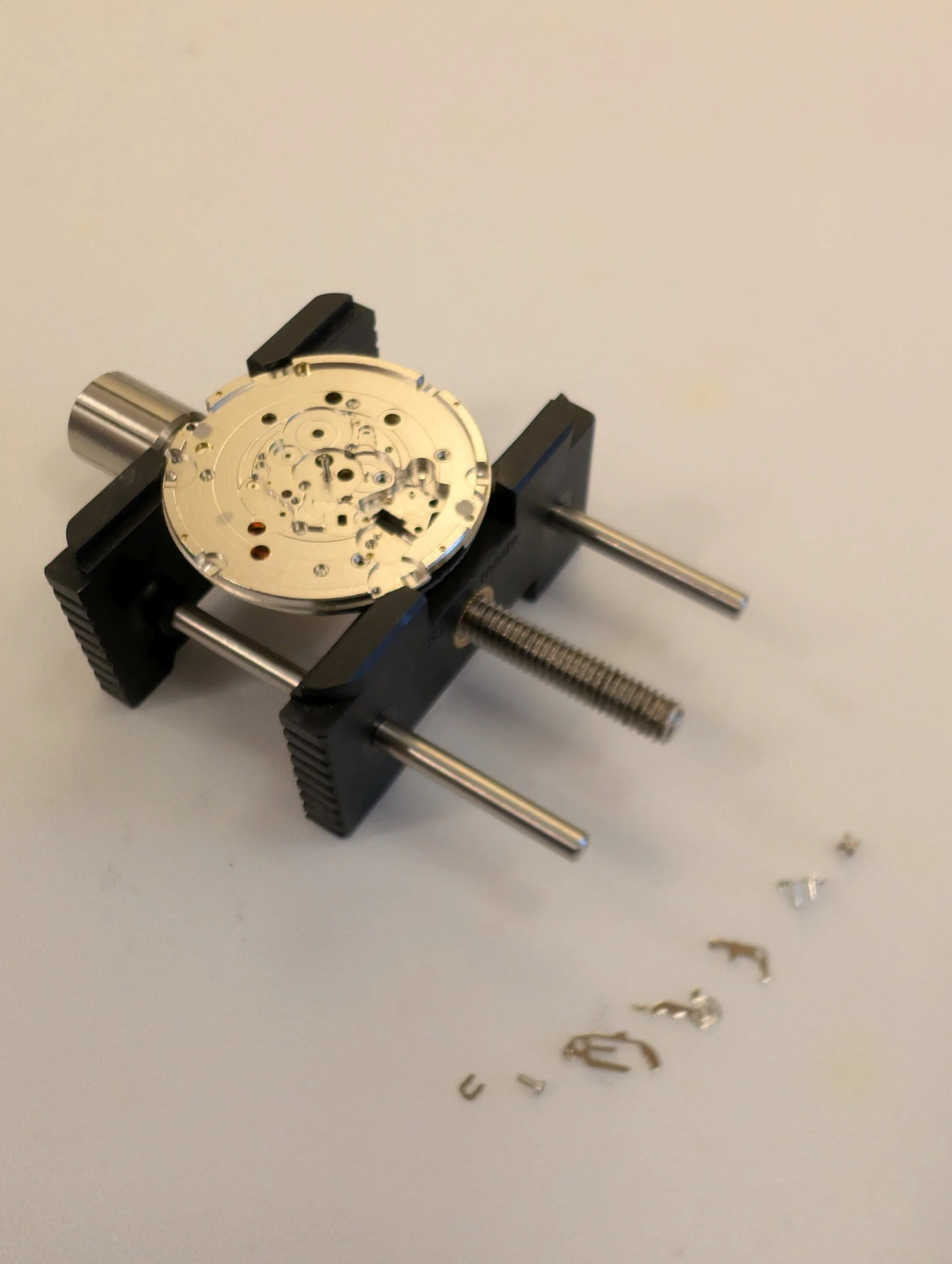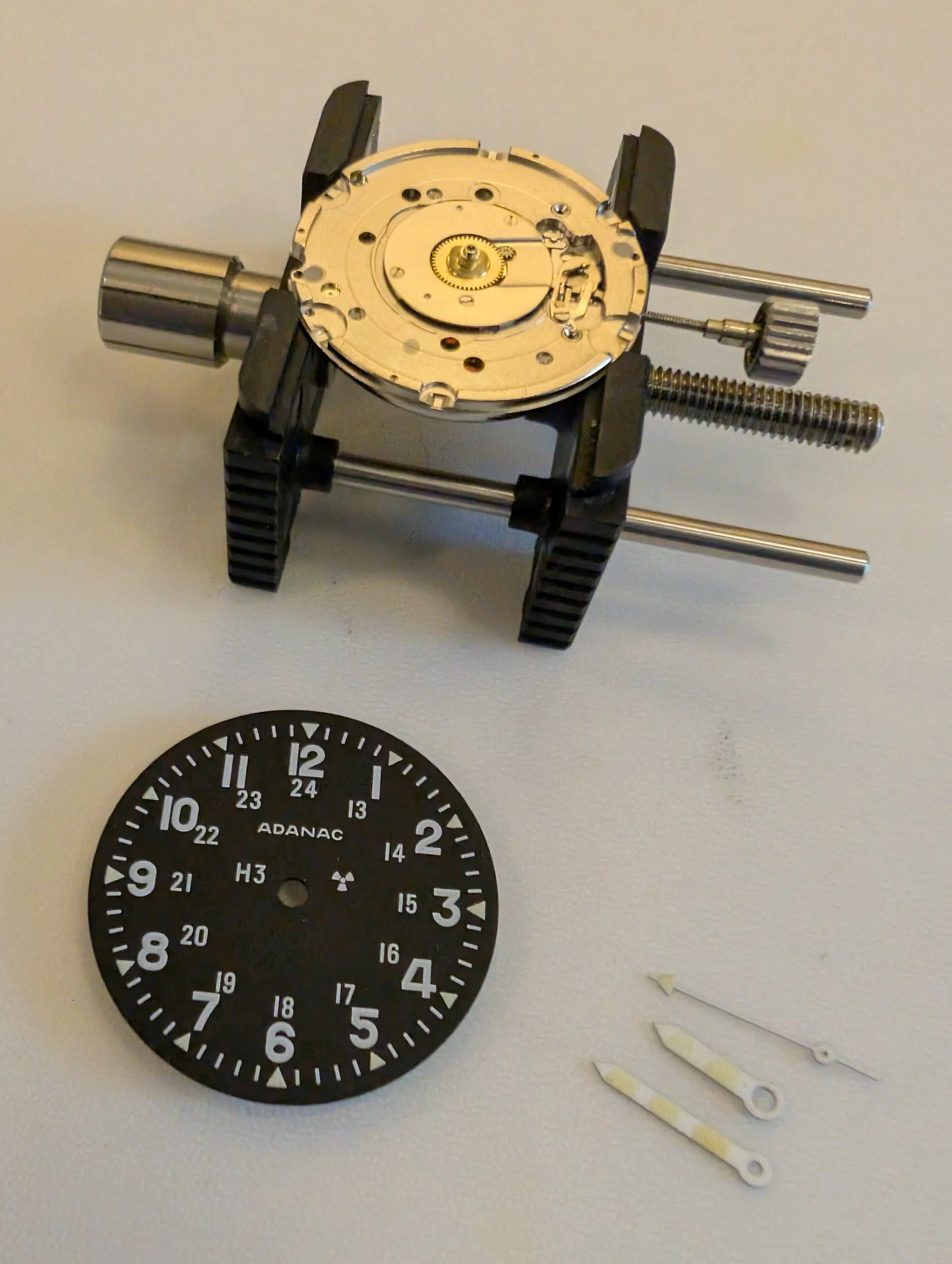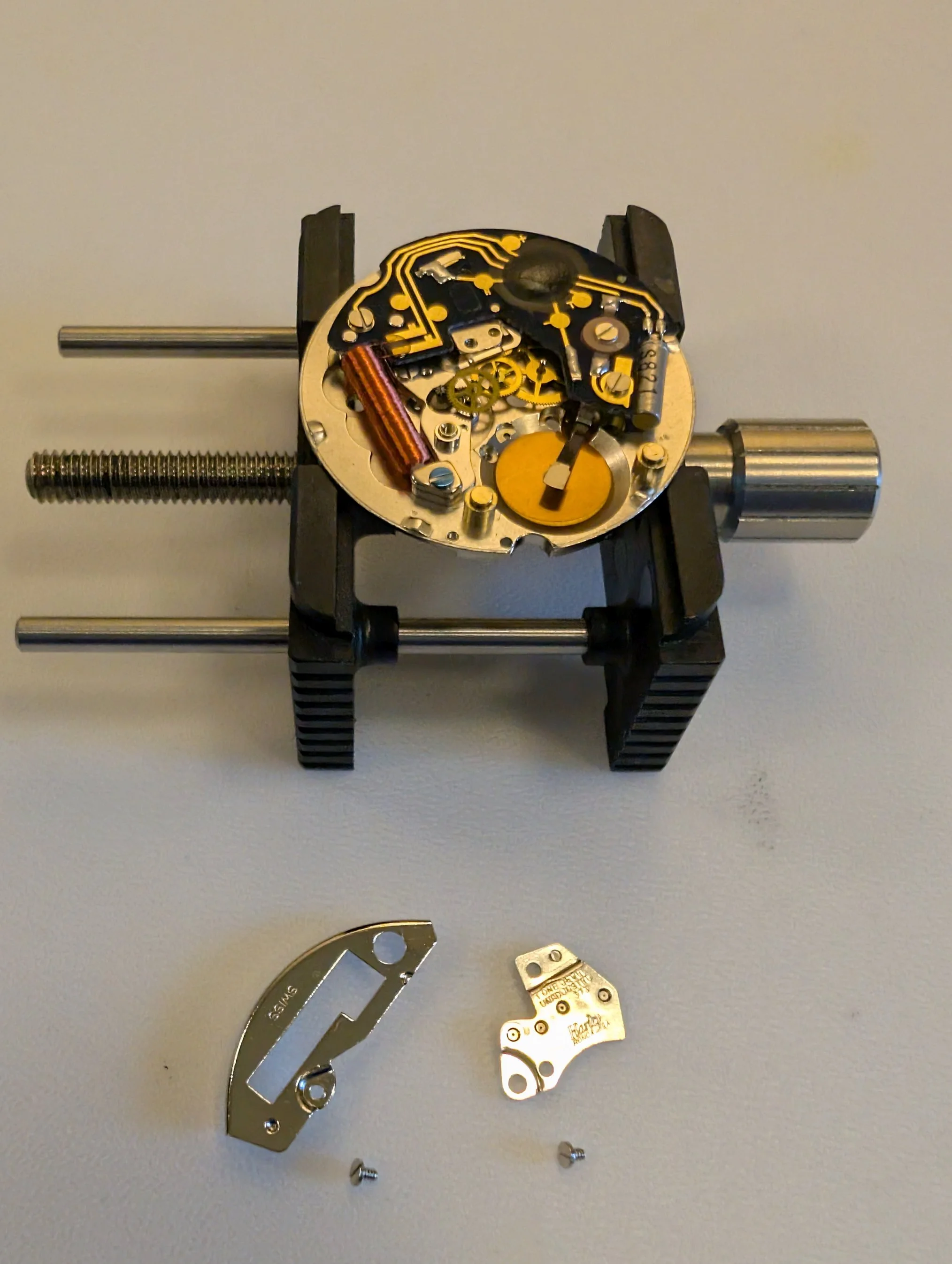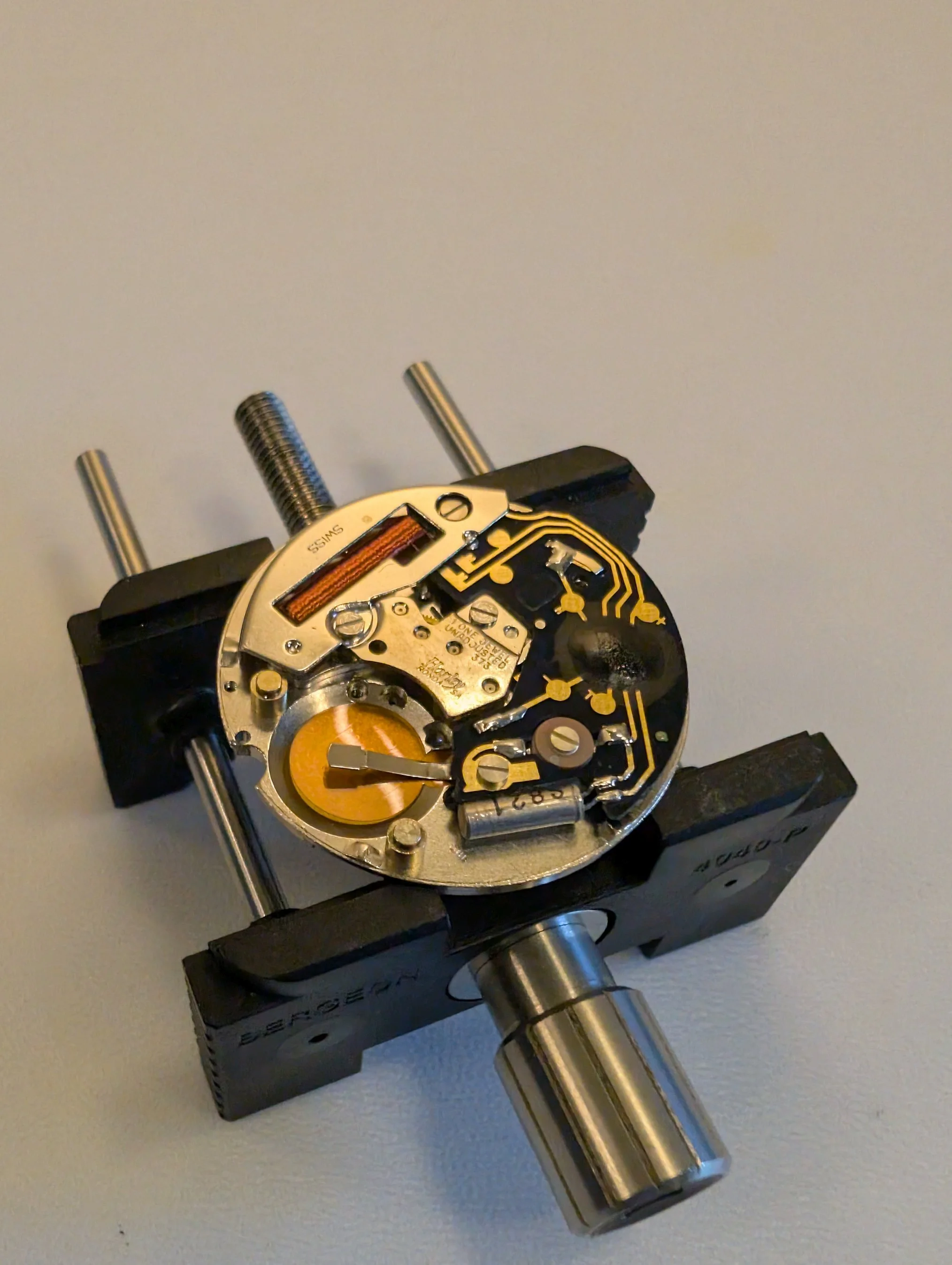 Dial side of the movement. Dial feet are friction fit (no dial feet screws).