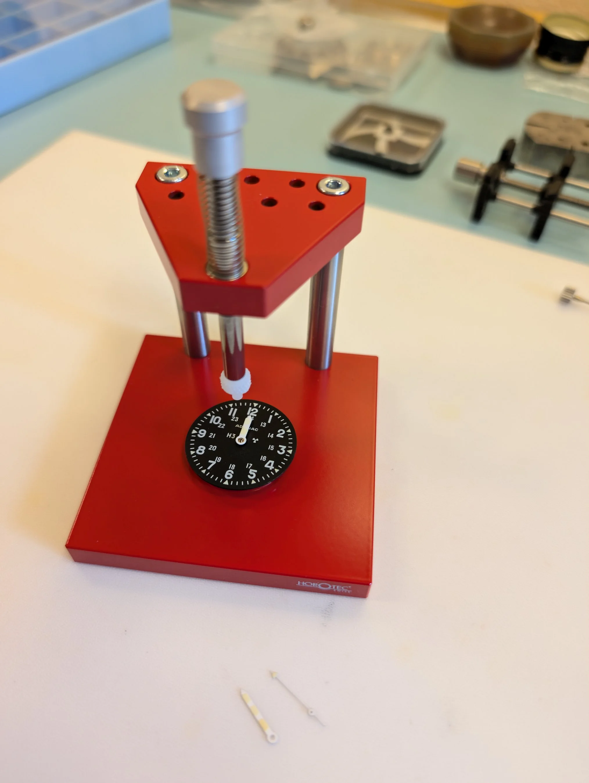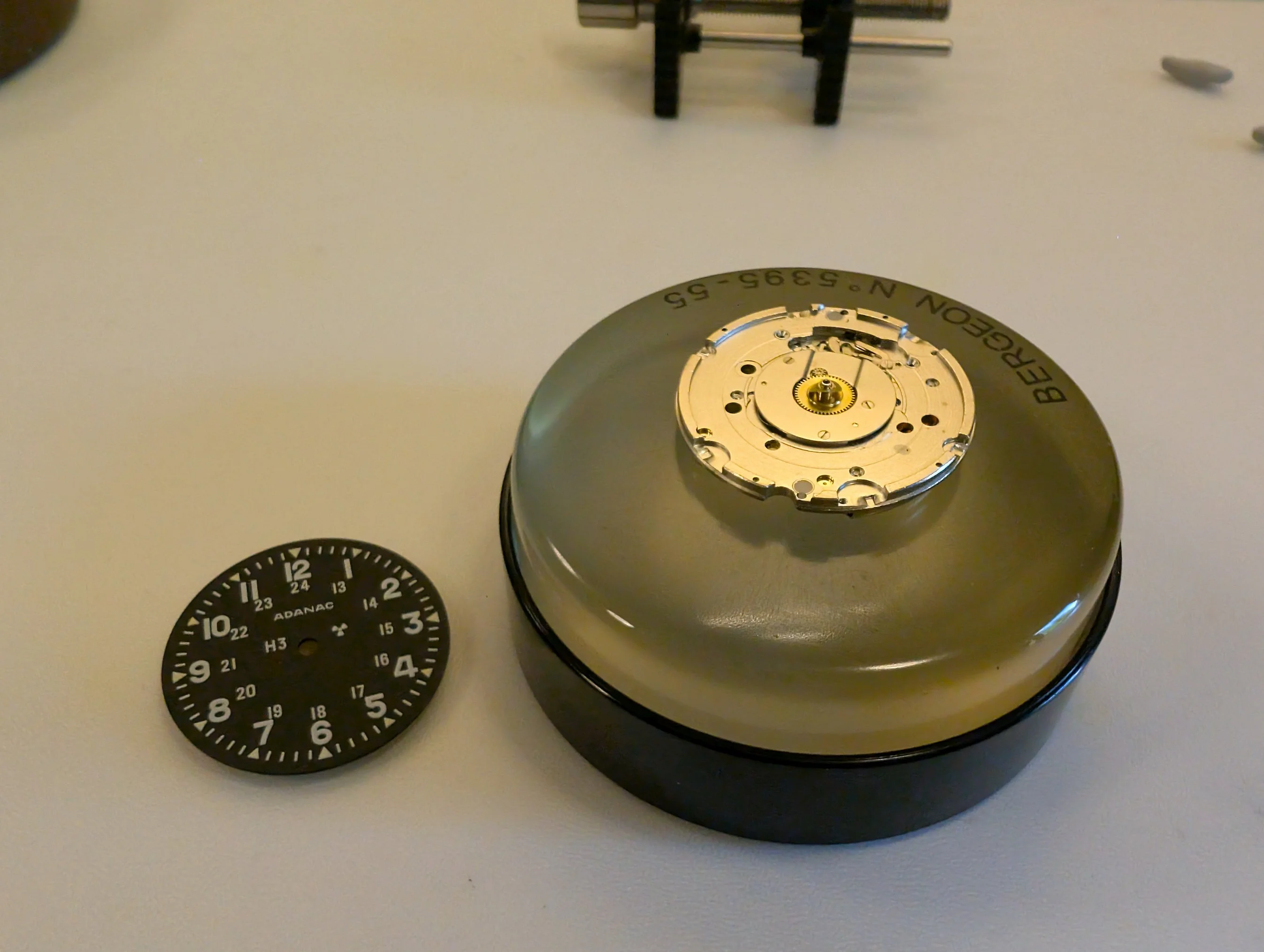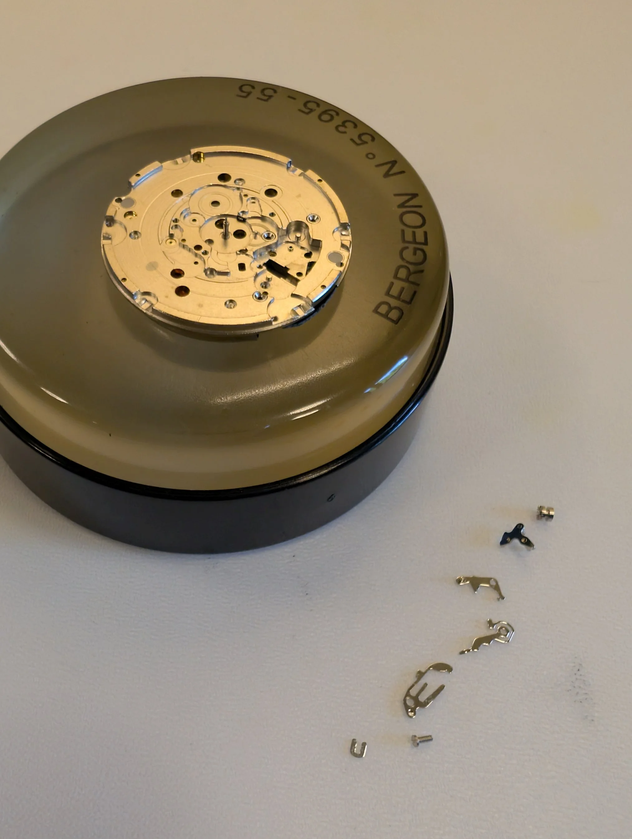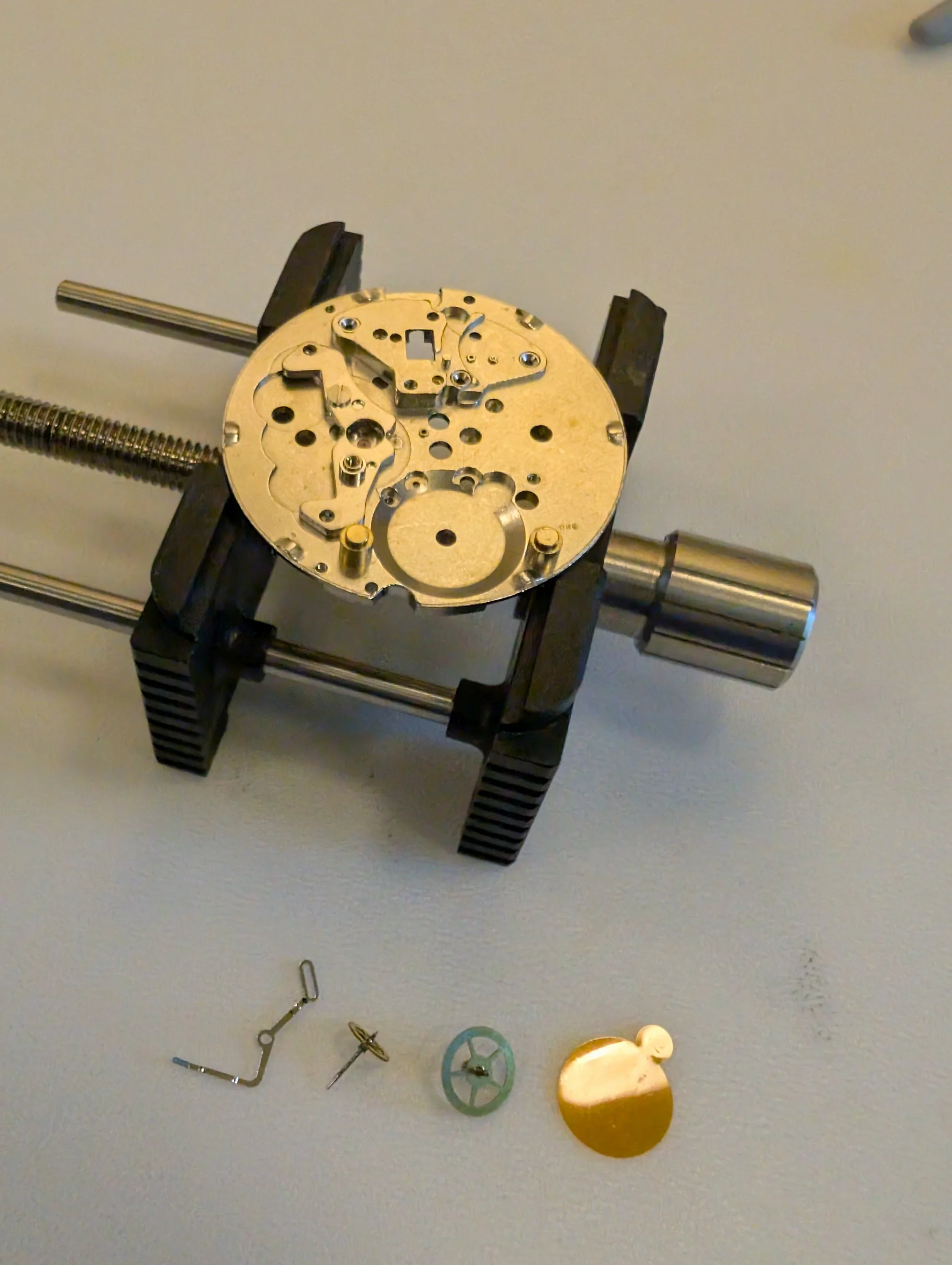 Dial side of the movement. Dial feet are friction fit (no dial feet screws).