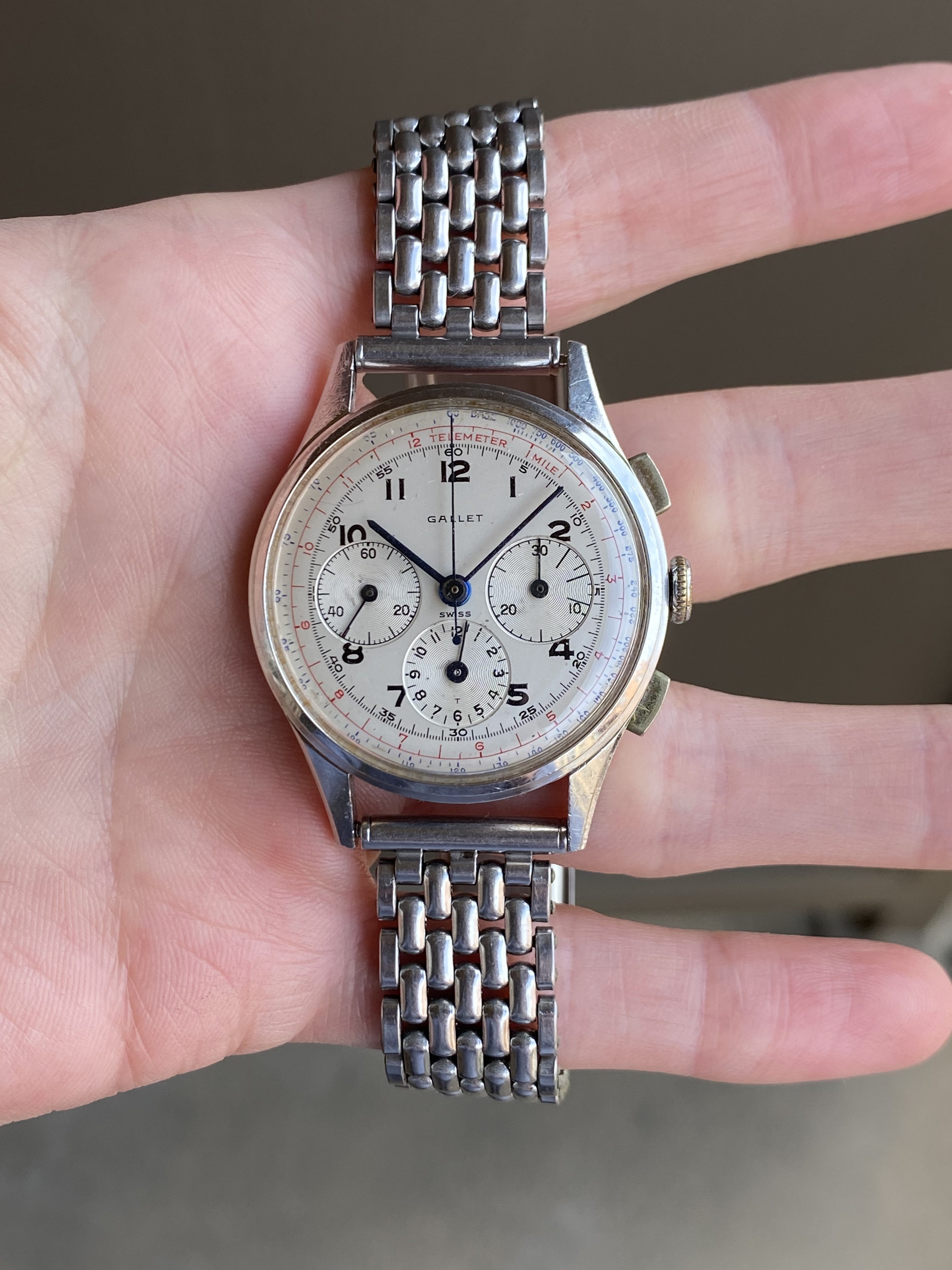 ·Hoping to find original but better condition crown and pushers for the below Gallet Multichron 12 powered by an Excelsior Park 40-68 movement. I assume they’re the same as those found on EP4 movements as well as on watches branded as Excelsior Park, Zenith, etc.