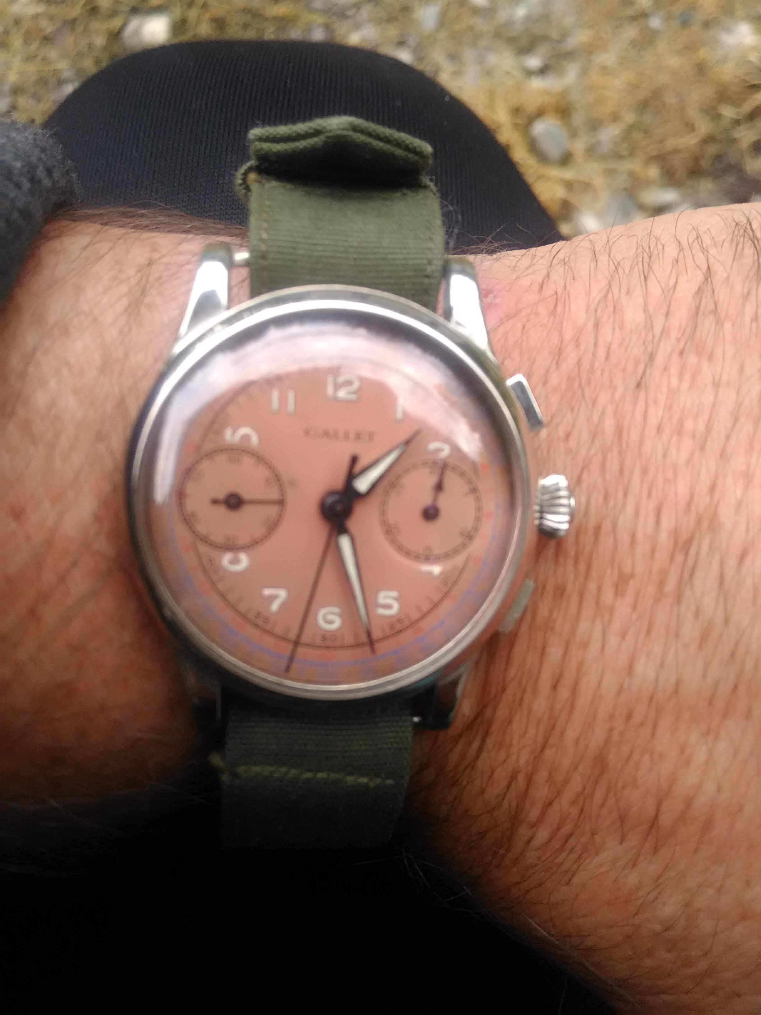 Gallet Flight/Flying Officer watches are beautiful, but the sloppy engravings on the back of the purported Swiss SA watches look, candidly, like shit. There might be some fascinating explanation for everything; I don't know. But one thing I haven't seen is evidence that any Gallet chronograph was ever issued to any military organization anywhere, and the only people who seem privy to whether all this is true or not are also in the business of selling off a collection of oddly pristine antique watches.
