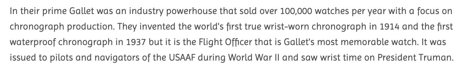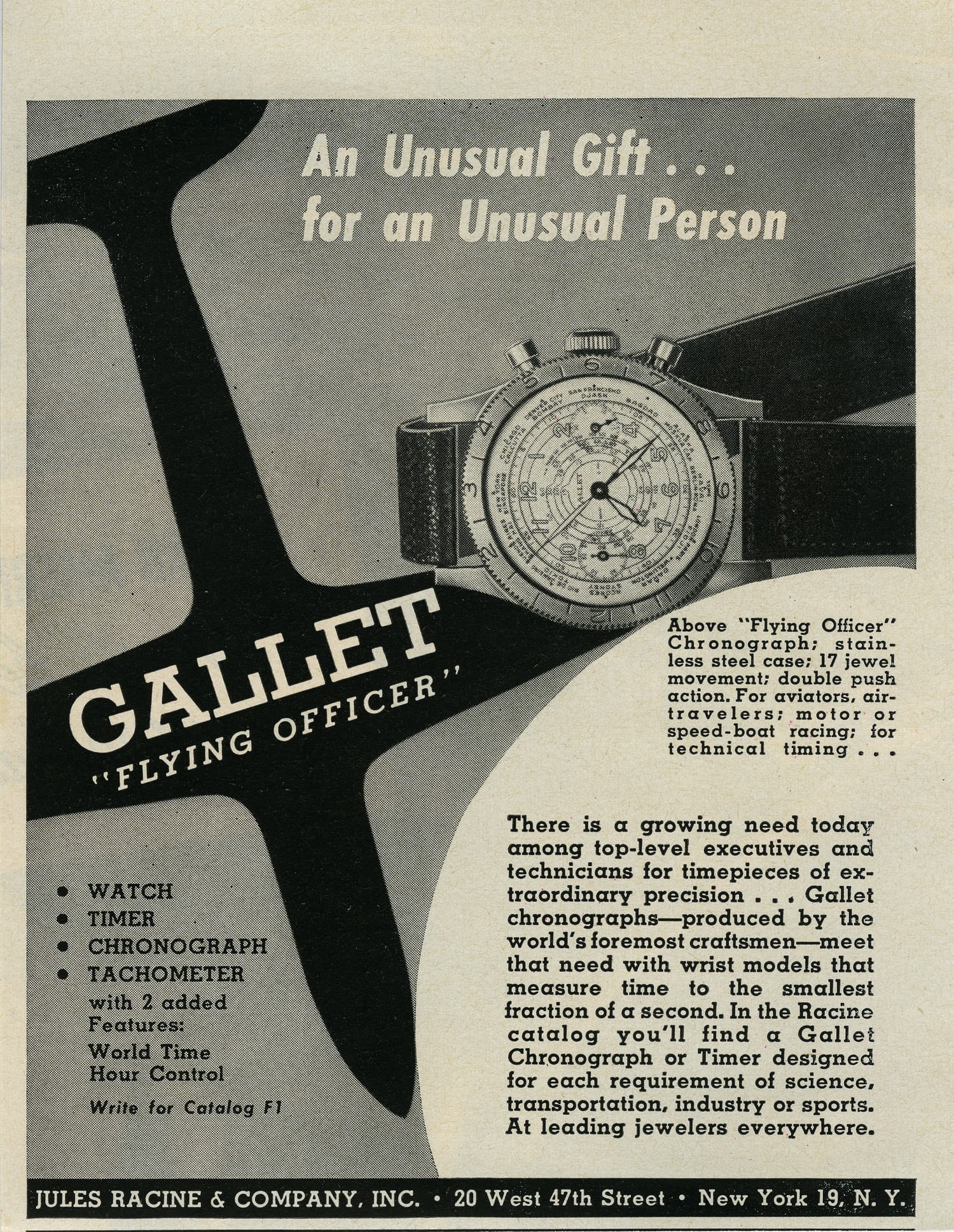 Gallet USA's Facebook page touts the military connection of their famous Flying Officer model.