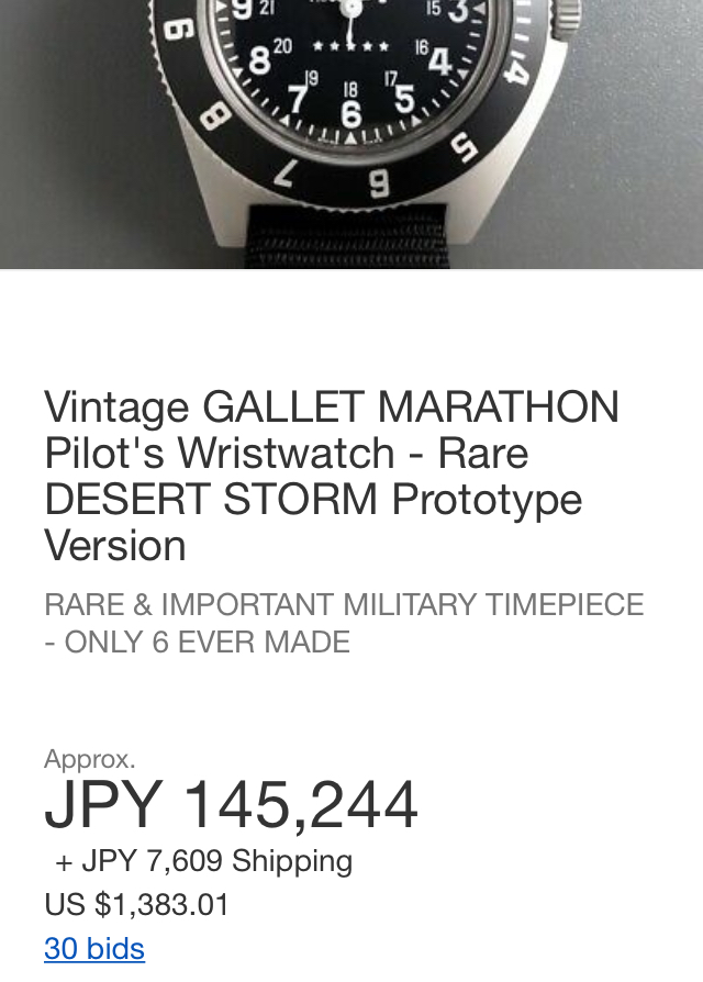 What consistently confounds me about this behavior is that it actually serves to drive down the value of vintage Gallet watches. If this current auction is like every other conducted by the people who run Gallet USA, the final selling price will be some small fraction of the claimed value of the watch. It will be hard to square the purported $10,000 value of the "Desert Storm Prototype" after the only one on the market is hawked off for far less than that.