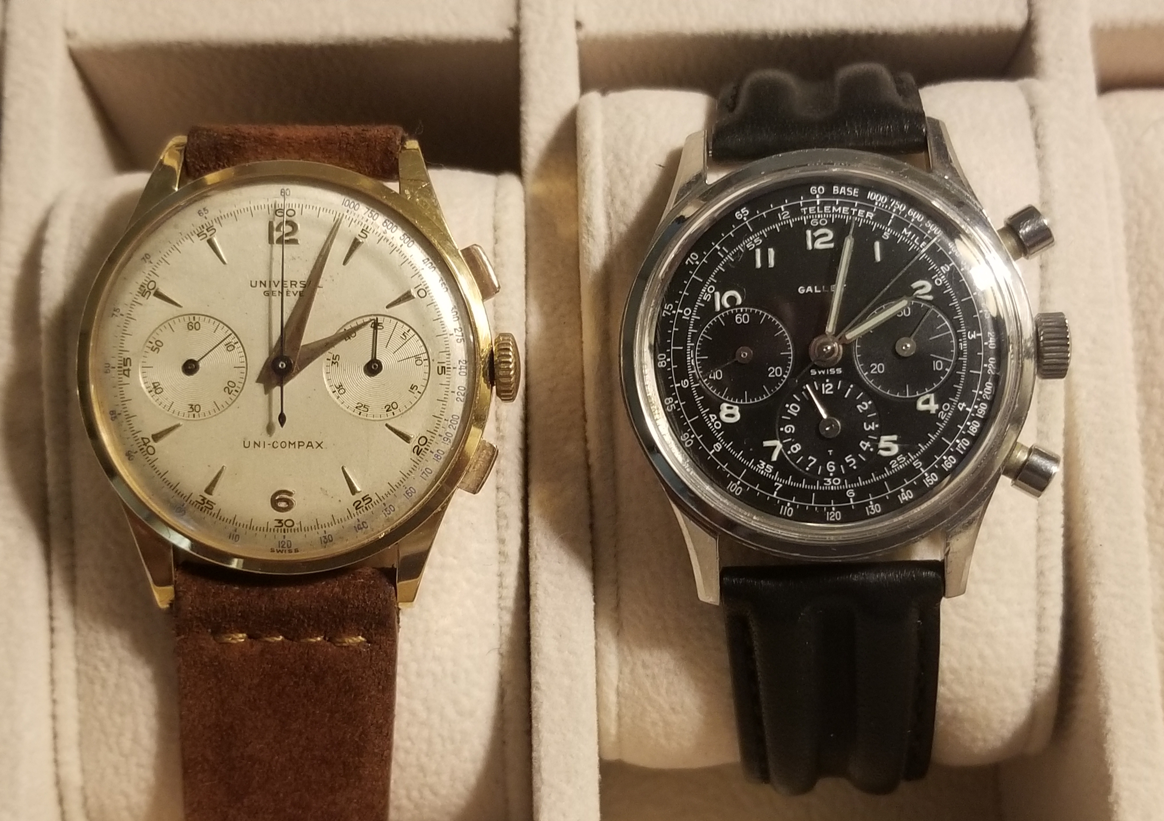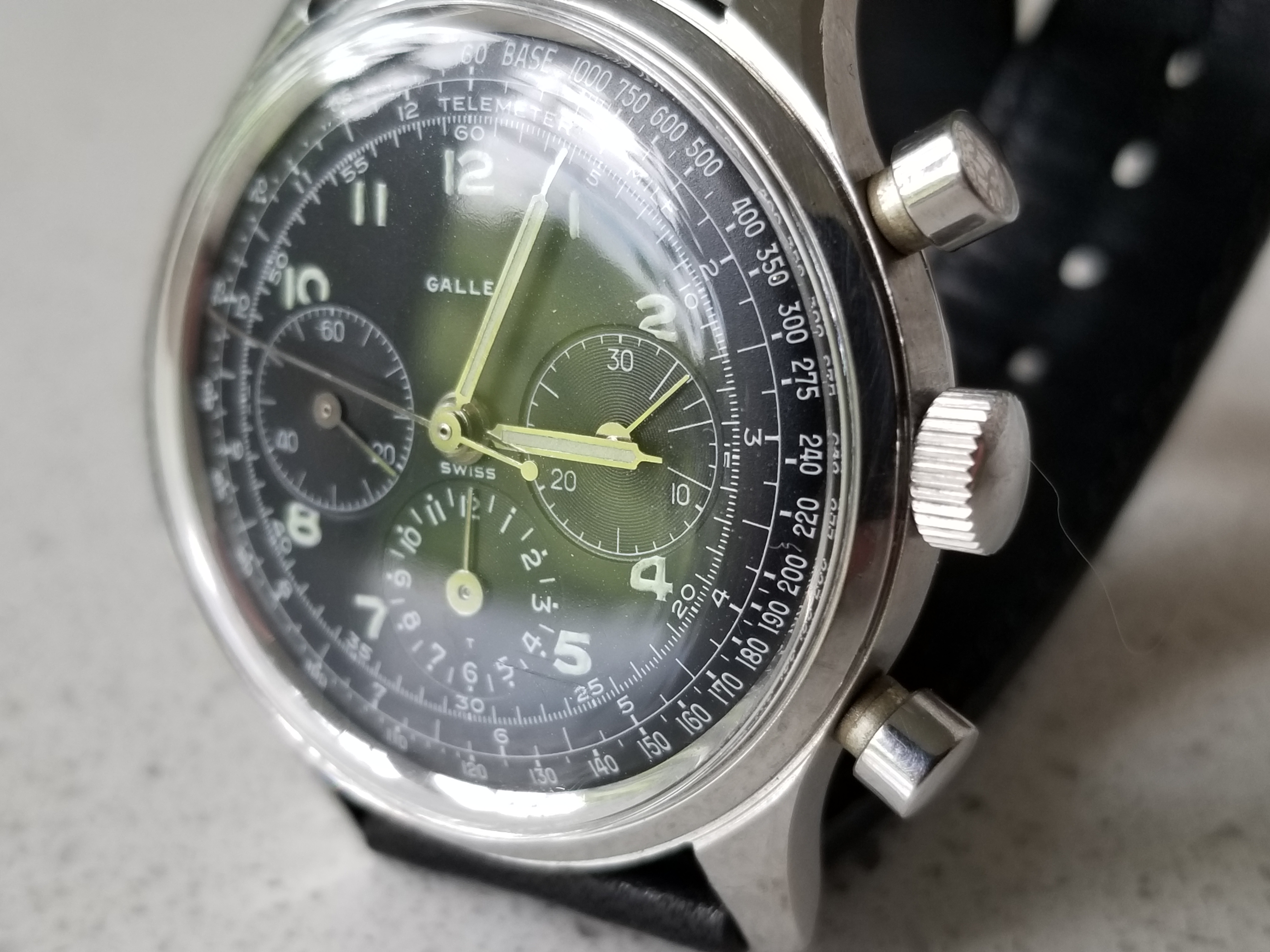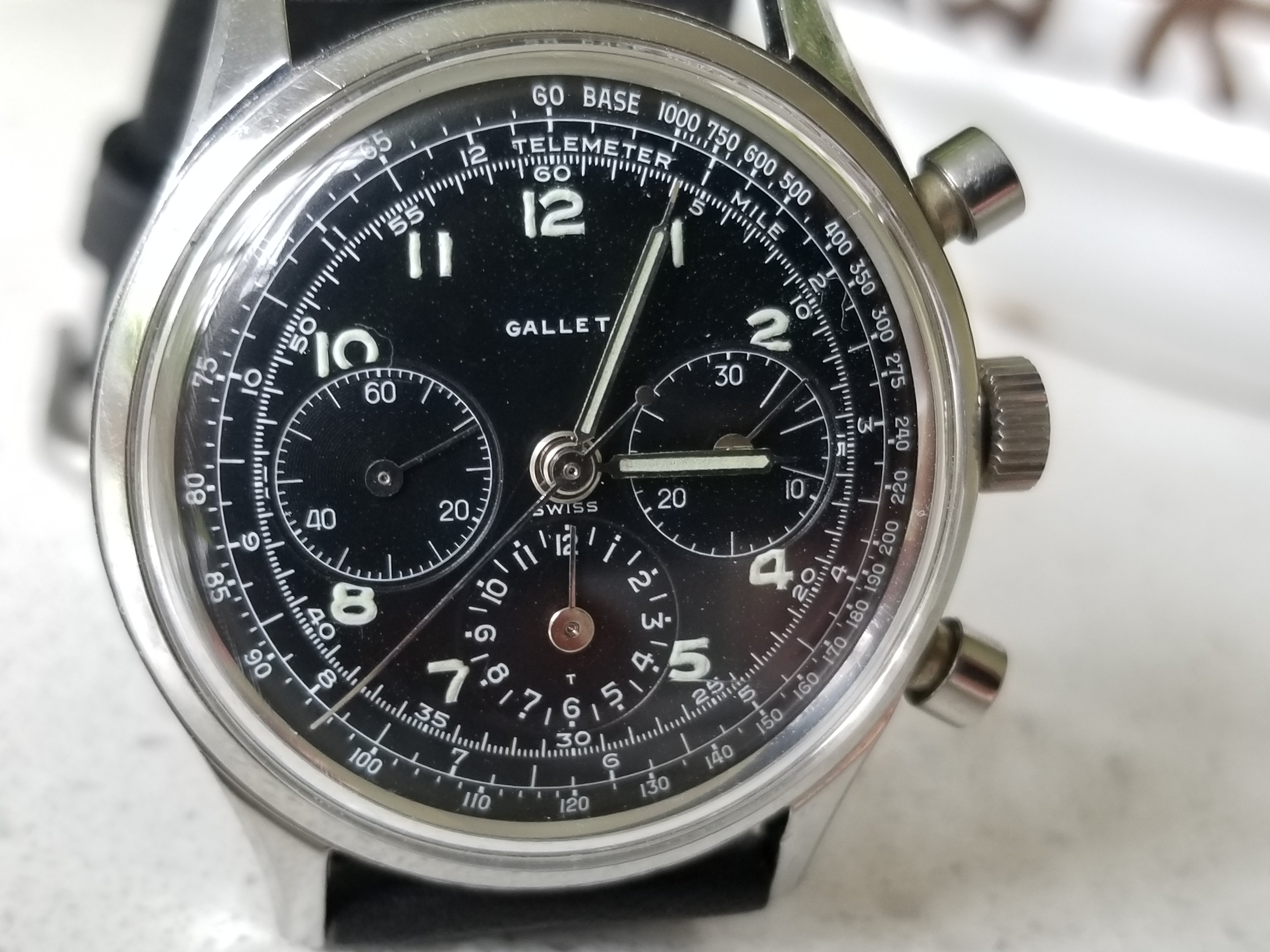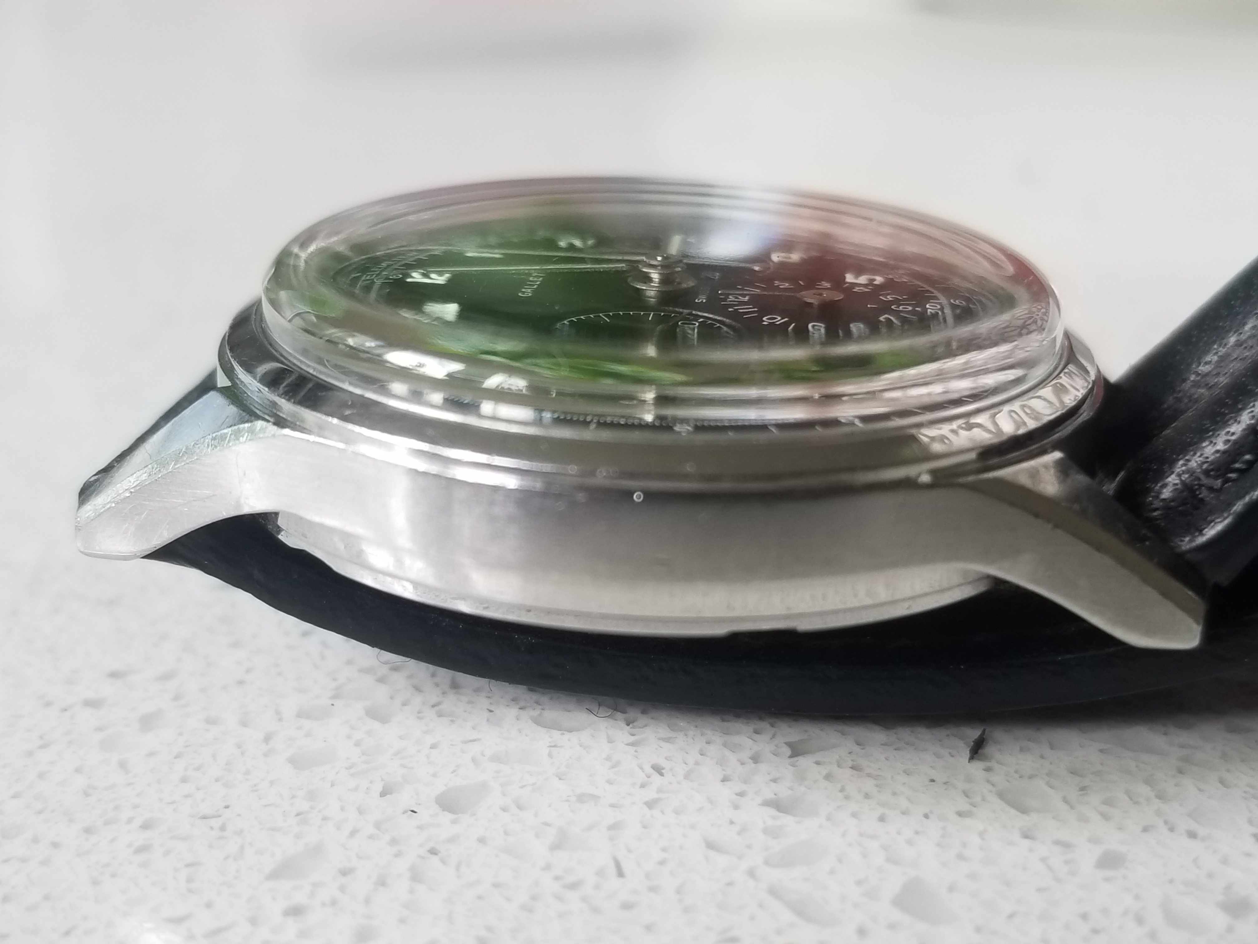 That’s the watch. They aren’t rare, but they are harder to find than some other vintage watches, and of course the condition is above average. The Excelsior Park movement is also a bit more difficult to find. If it’s such a great watch, why am I selling it? It is a great watch, but I don’t wear it. I used to, but now have others I prefer. I wear it occasionally as a “pity” wear, just because I think it’s a waste not to. I’m working towards fewer watches. It’s beautiful, I love it, but not enough. Next question, I haven’t had it long, so am I flipping it? It wasn’t cheap, nor was the service. Anyone who buys it is not lining my pockets with cash. Far from it. I thought to offer it here first to someone who might want a nice condition Gallet Multichron 12 Jim Clark. This is a short hold time but it is more of a reappraisal of how many watches I want to own, if that makes sense.