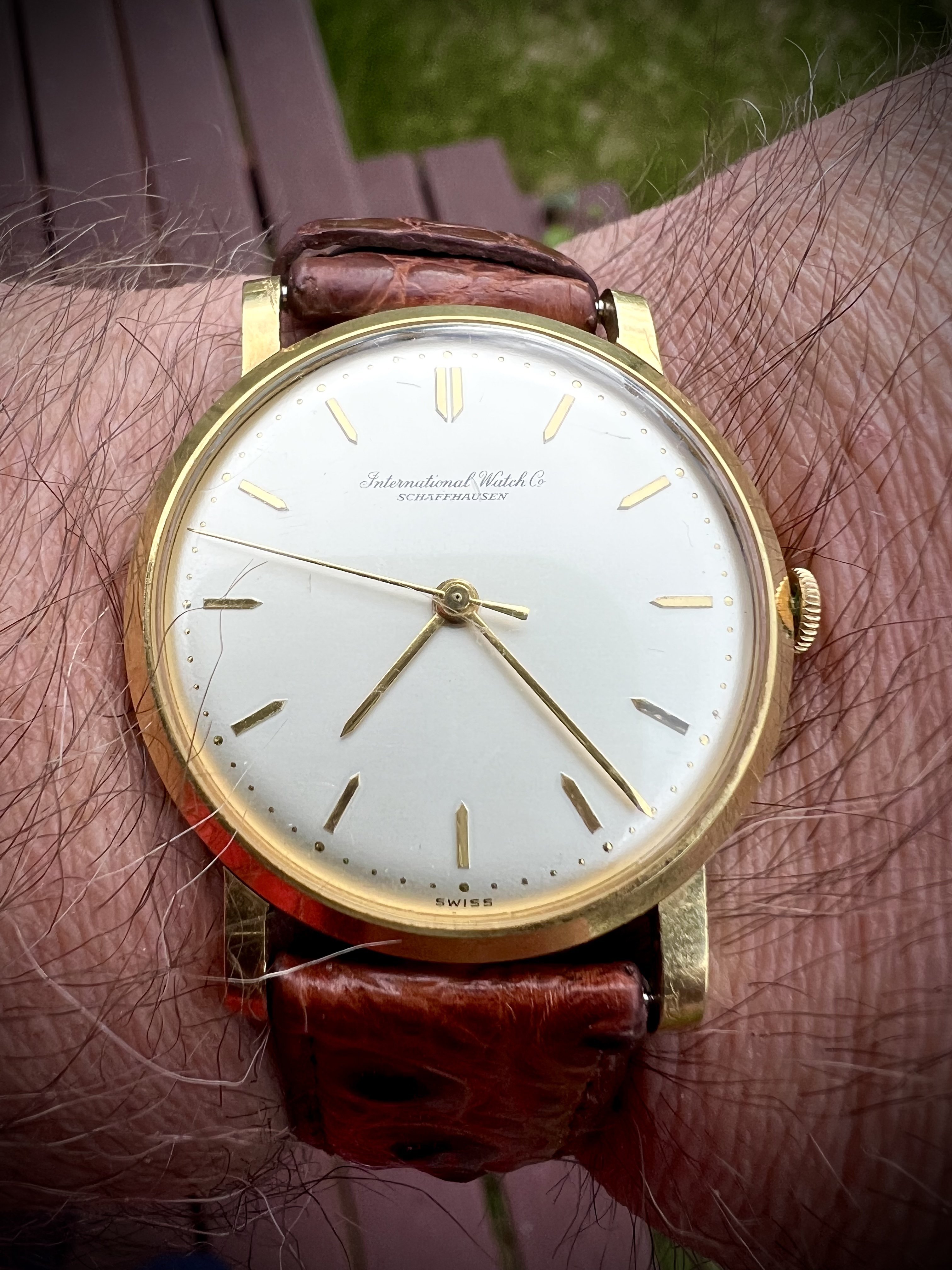 Posts 1,149 Likes 5,940 impalla62ss ·Jul 2, 2023 Put in a low ball bid on a IWC with really crappy photos and won. Will post photos upon receipt. 18K R1205 Cal.401 Here is a nice example
