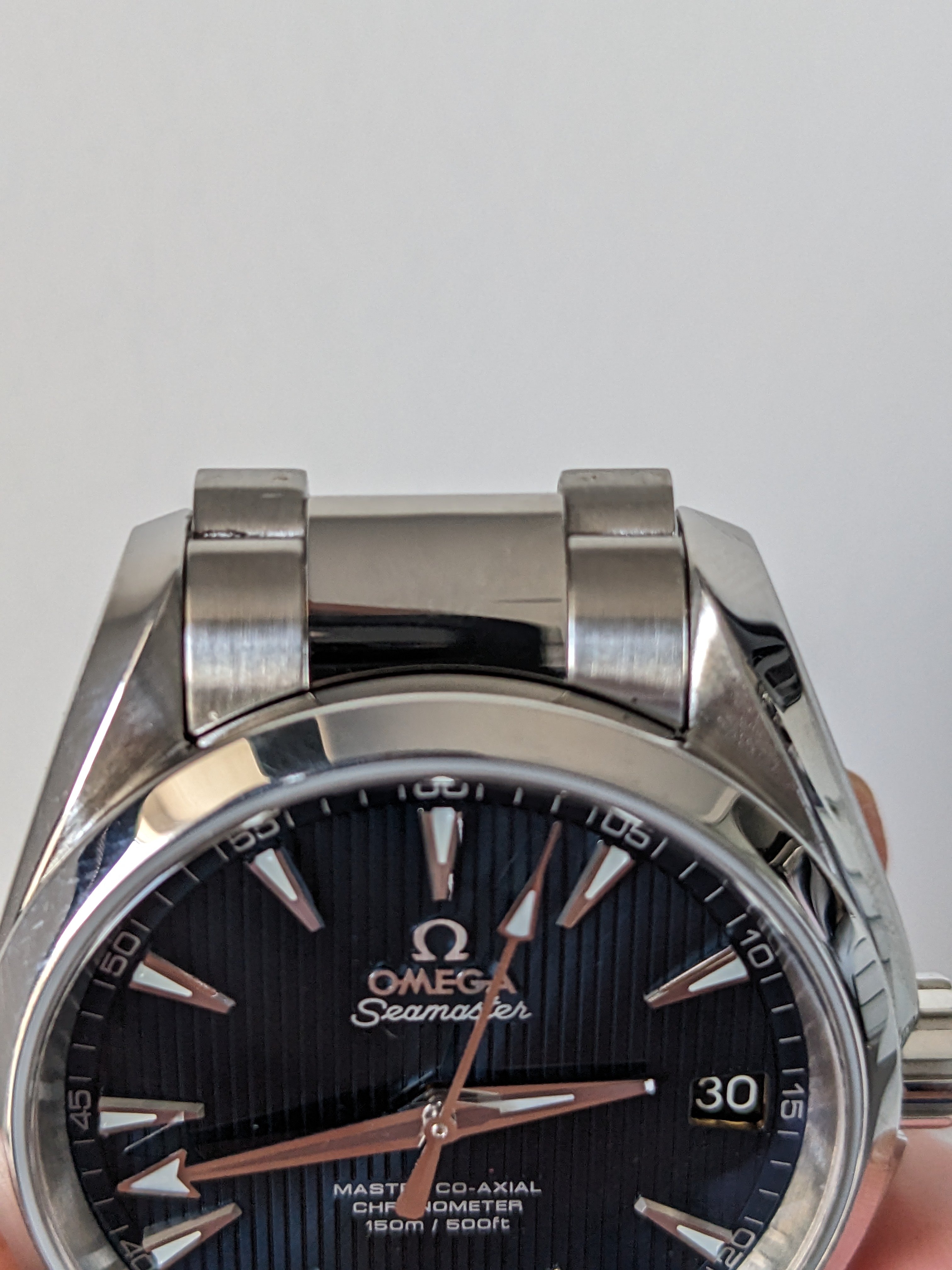 ·Hi everyone. I've got a QC question that I'd like to pose to the forum to canvas some opinions. I acquired a 3rd generation AT in February this year, still under factory warranty till November. Initially, I noted a spot on the hour hand and a clasp that was very tight. Sent it in to the OB to get it fixed. No problem. Now, I've noticed a gap between the endlink and the case at the 12 o'clock position. I've included photos of it and it's opposite endlink for comparison: