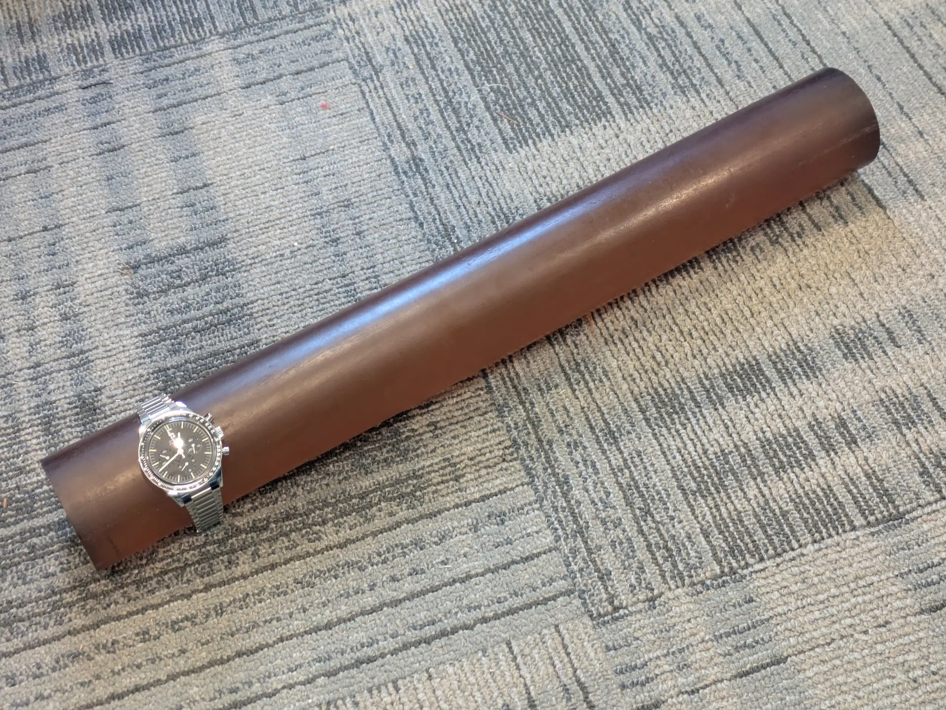 I DID pick up a piece of what I think is the best match, some 95A Polyurethane round rod, but could only find it in... a large size and didn't conceptualize how big it is It should only take a little time to make each piece on the lathe, but I have to get out ot my shop, and its cold these days (Ed White for scale, note that the bracelet while open only BARELY fits! 2.5" diameter!).