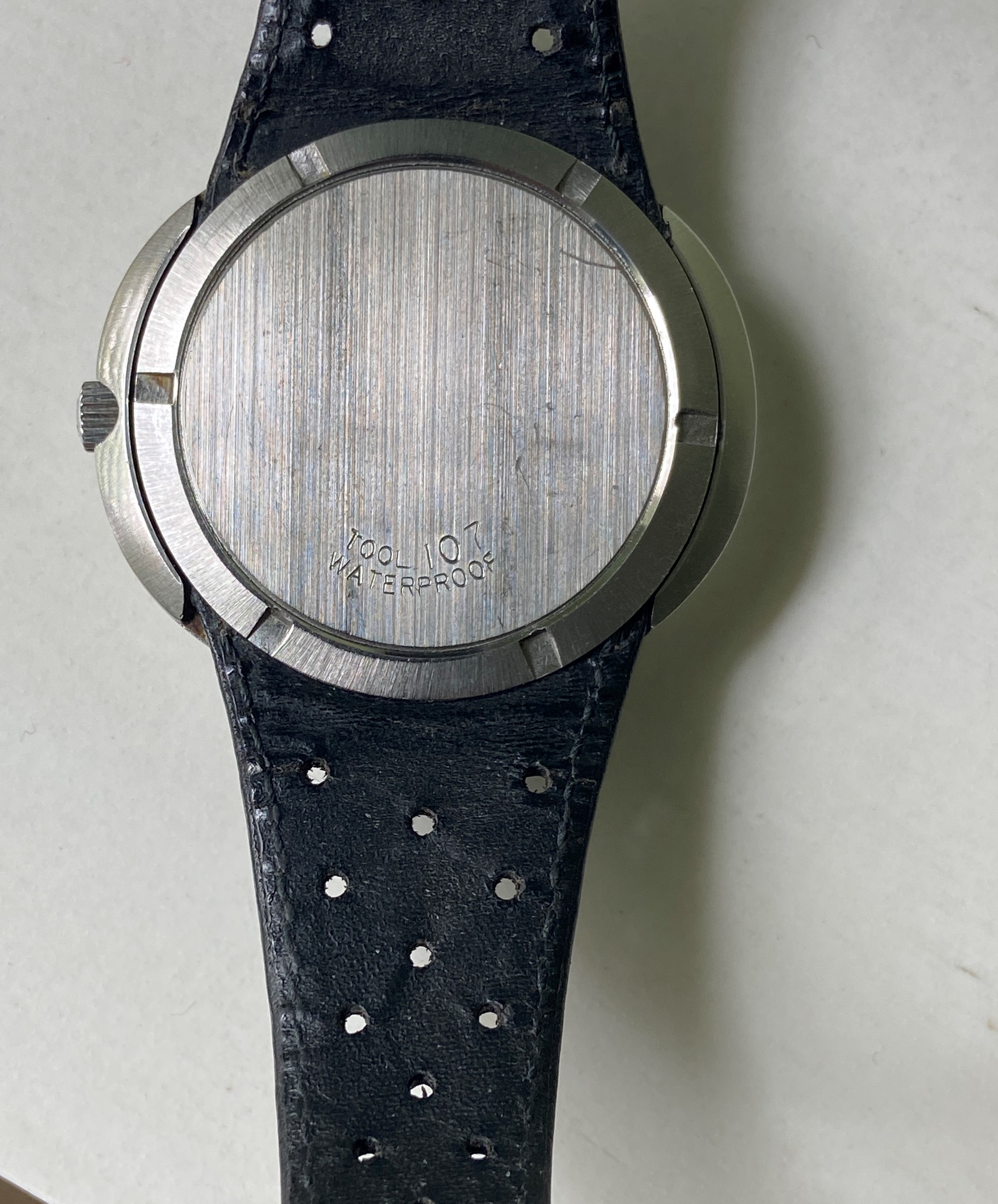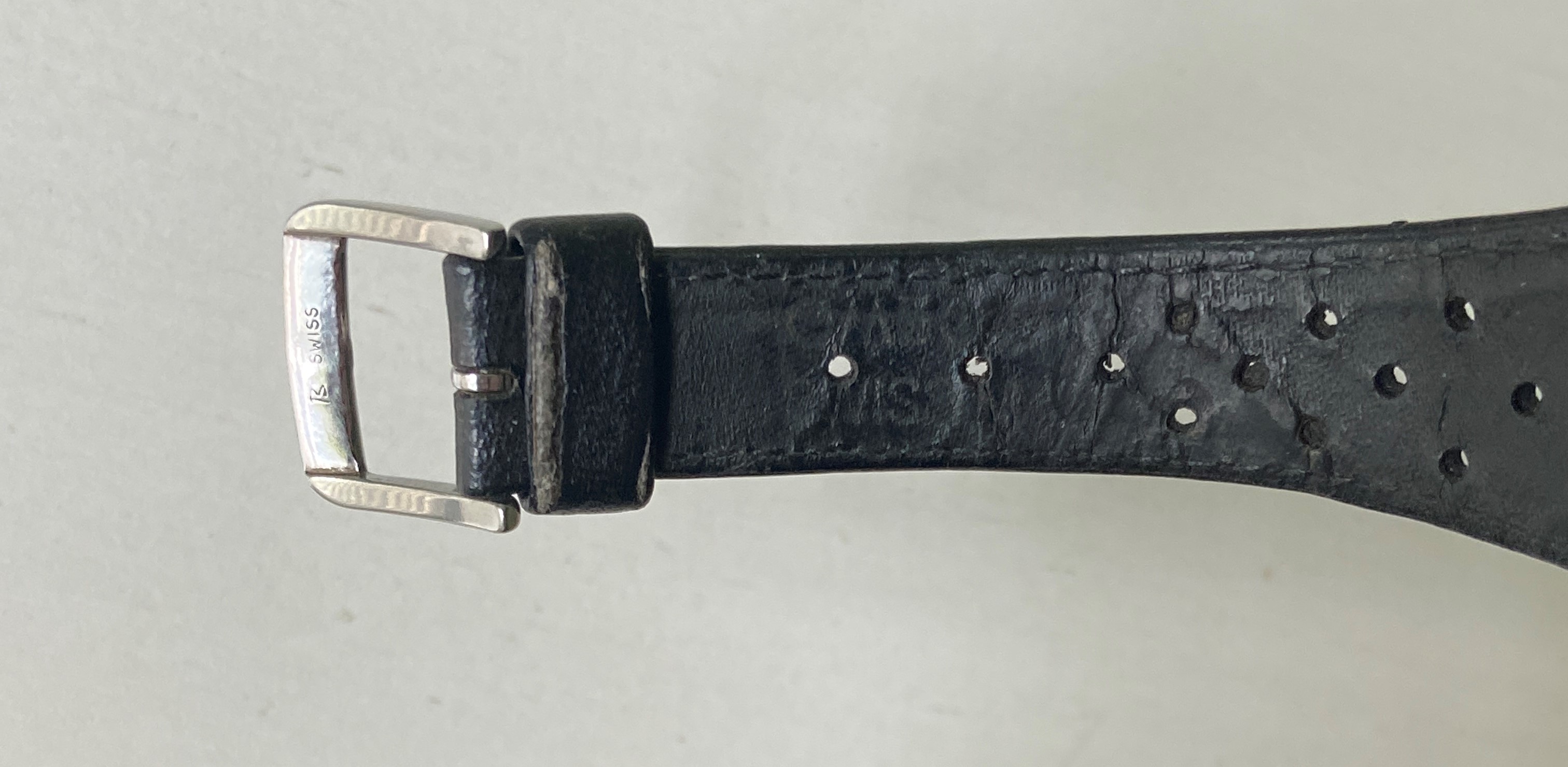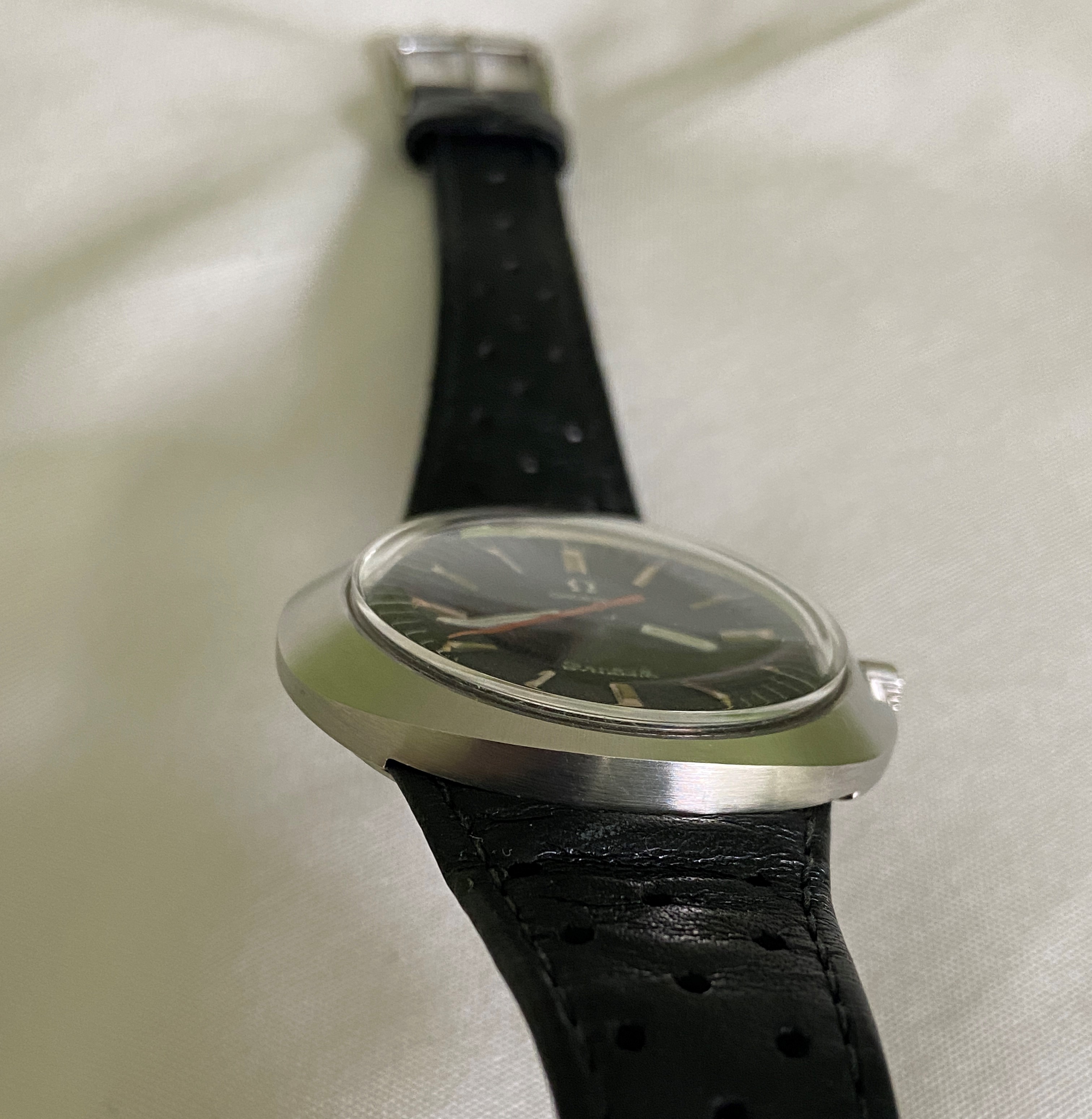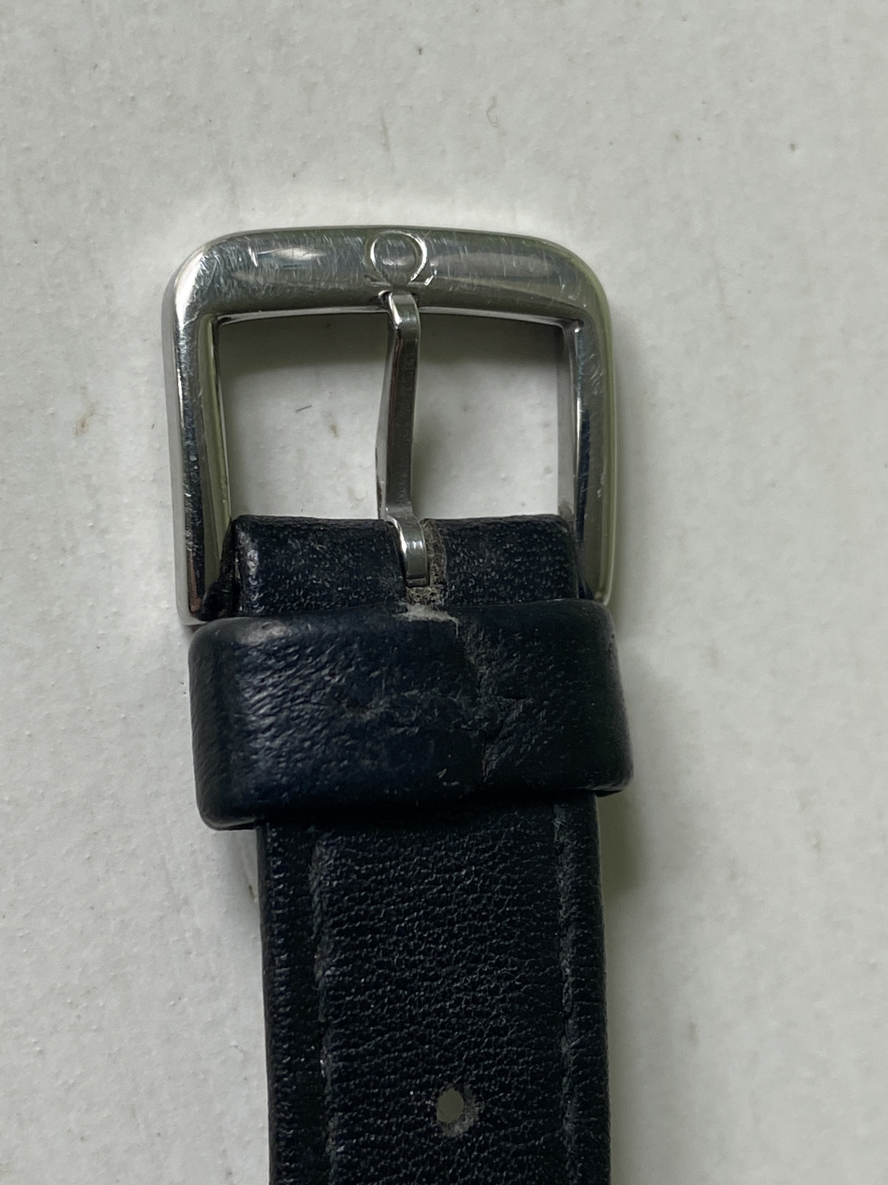 Strap: Omega strap, appears to be leather not Corfam. Evidence of wear, especially on the inside, but still has life left in it. Omega signed buckle.