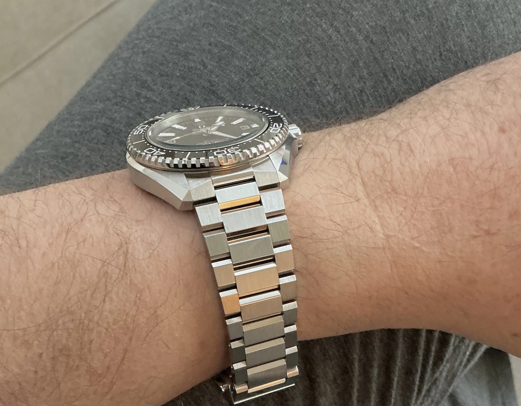 Posting this to help anyone who’s considering brushing their new PO. Interestingly if done carefully you can retain the polish on the top and bottom side of each center link so you still get a little of that light reflection without the whole thing being too blingy.
