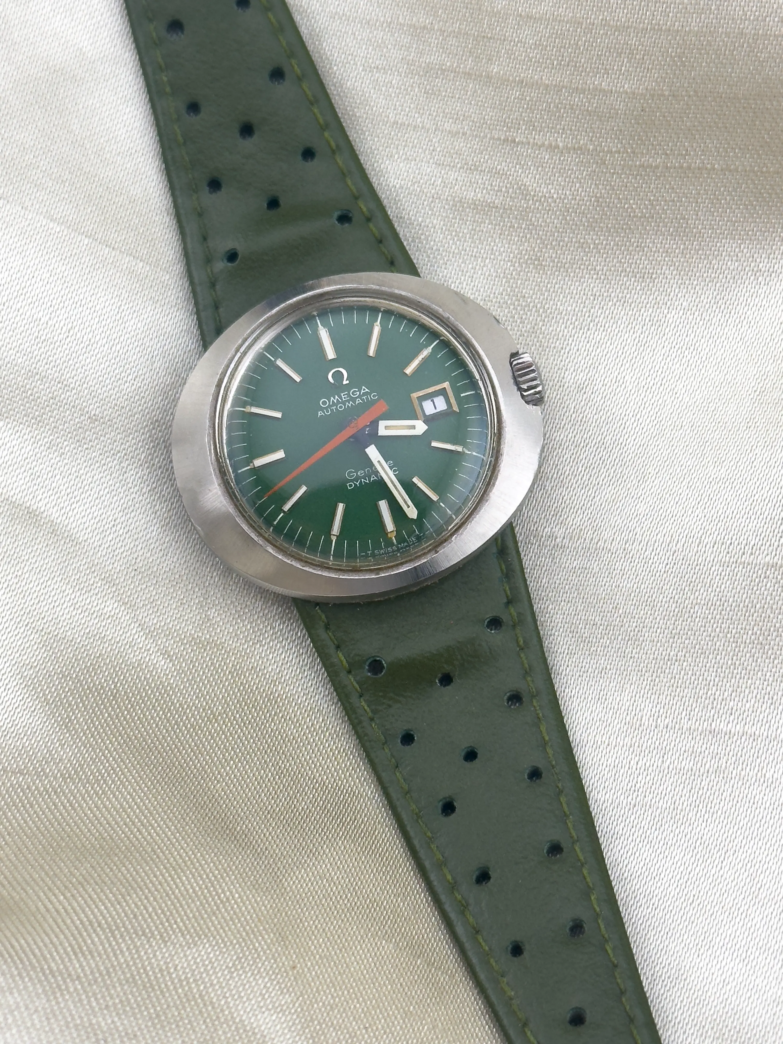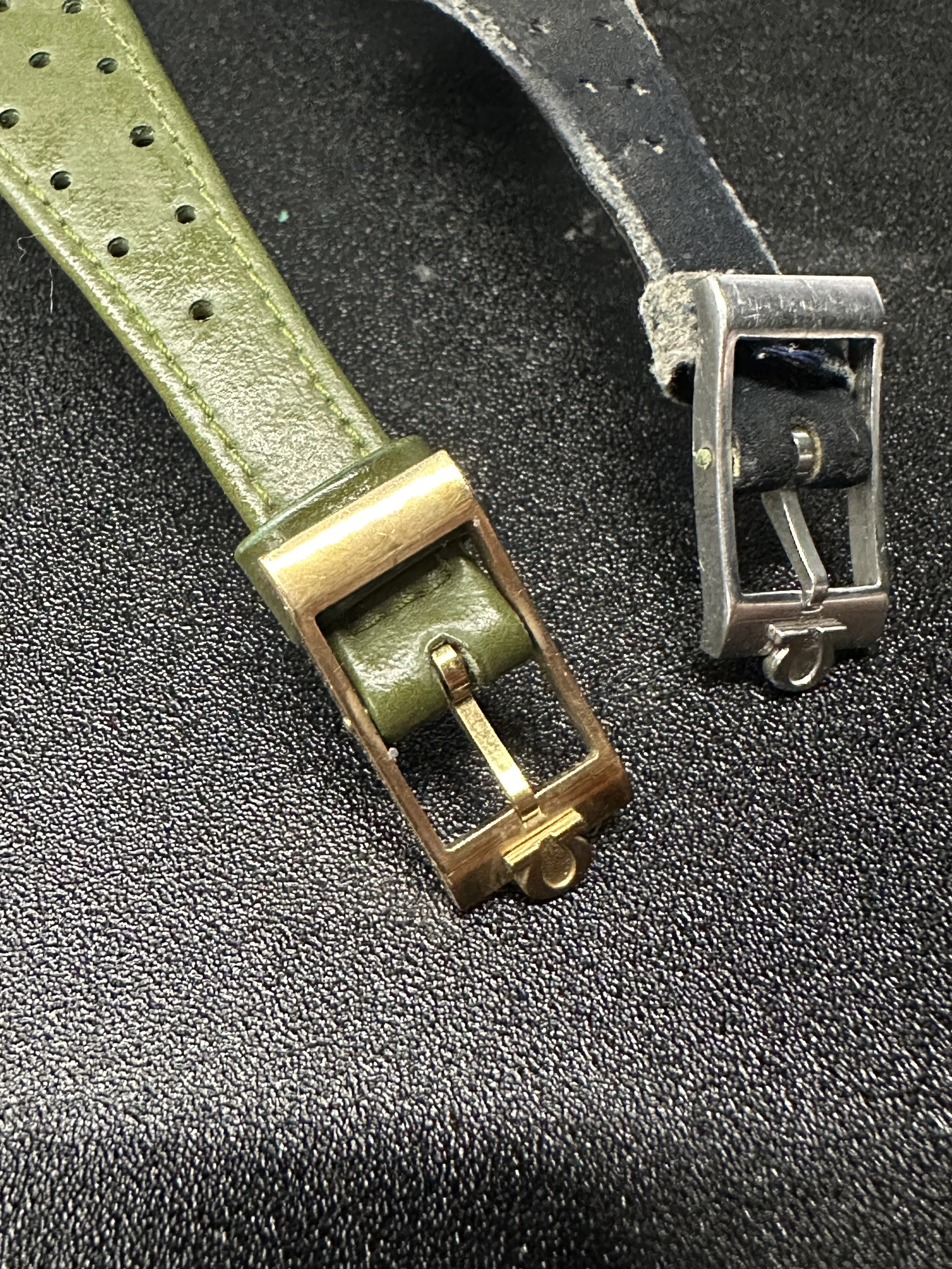 Posts 310 Likes 521 Arancio601 ·Mar 19, 2025 I was on the hunt for a green band for the green dial Geneve Dynamic I bought for my daughter and finally found one. I would like to swap the silver buckle onto it. Any tricks or do I just use my pin remover tool to push out the pin and refit?
