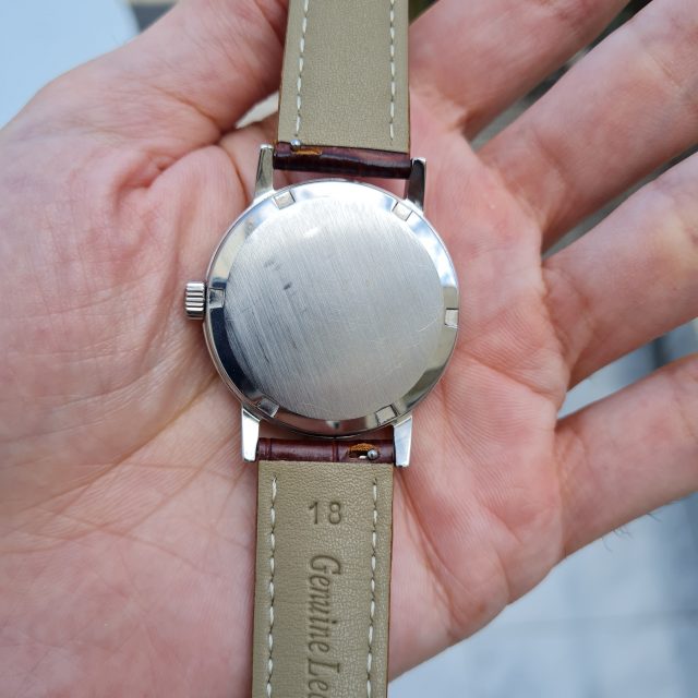 “NOS” is also a bit optimistic, looking at the scratches on the out- and inside of the caseback. Condition is good, though.