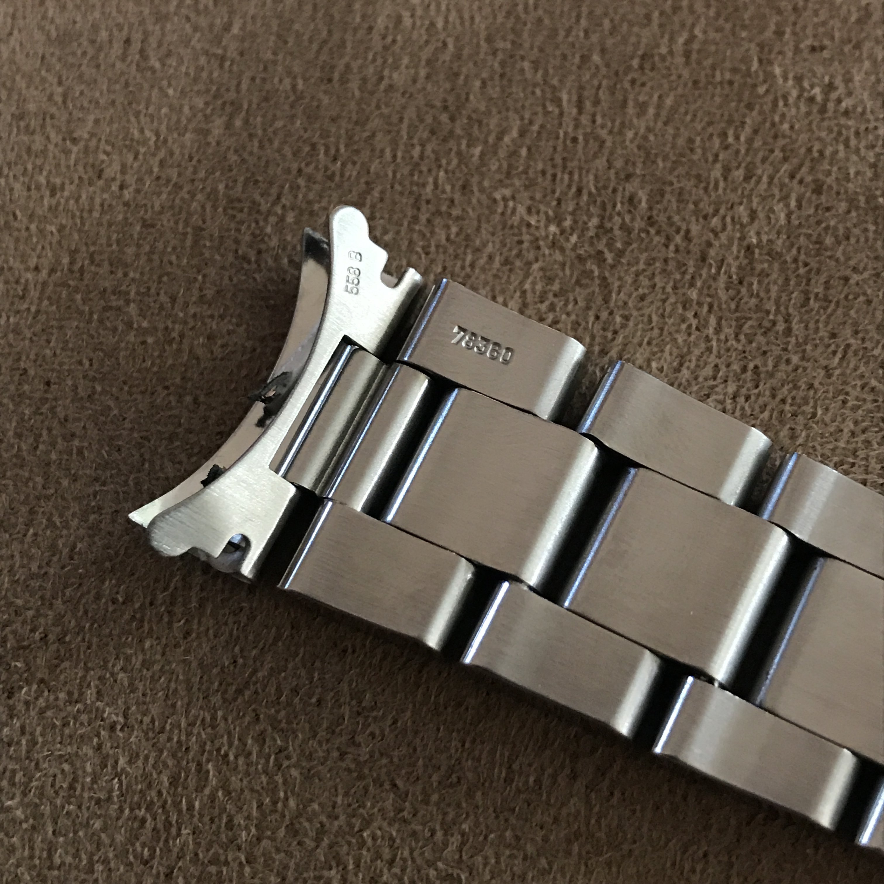 The bracelet is 20mm wide and comes with two genuine Rolex 558B endlinks (which I believe were designed to work with Explorers with or without drilled lug holes). If you have - or can source - a different pair of end-links (580, etc.), this 78360 can also work perfectly with a vintage GMT Master I or II ( 1675, 16750 , etc.), Explorer I or II ( 1016 ) , Daytona, DateJust, etc.